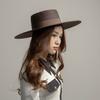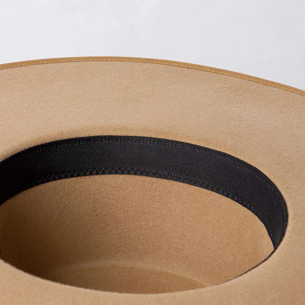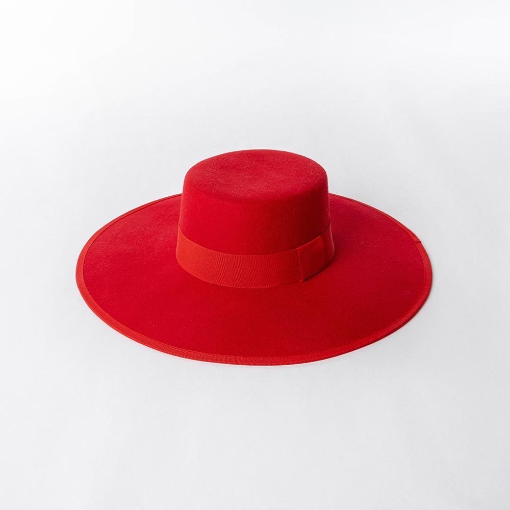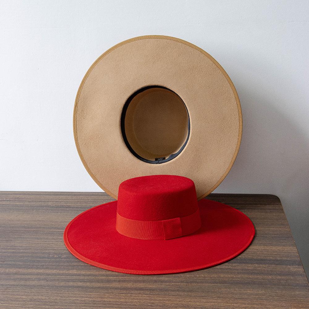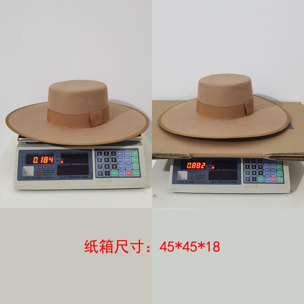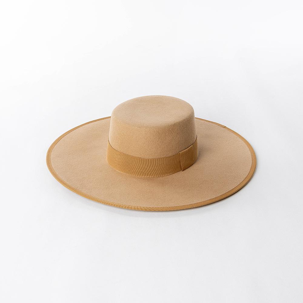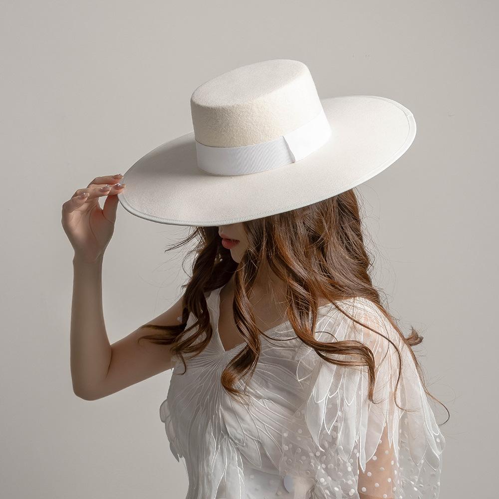 Otoño e Invierno Nuevo Sombrero de Lana de Ala Ancha para Adulto con Cinta de Borde y Copa Plana Elegante y a la Moda Estilo Sombrero de Copa de Fieltro de Lana