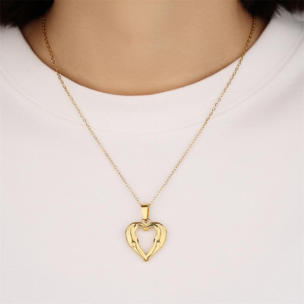Collar con colgante de amor en forma de agua, chapado en oro y acero inoxidable, joyería transfronteriza, collar de corazón de alta gama a juego, de moda para Europa y Estados Unidos.