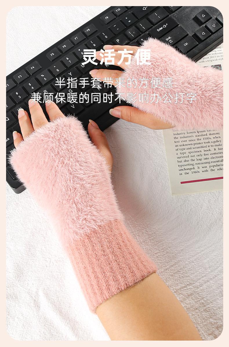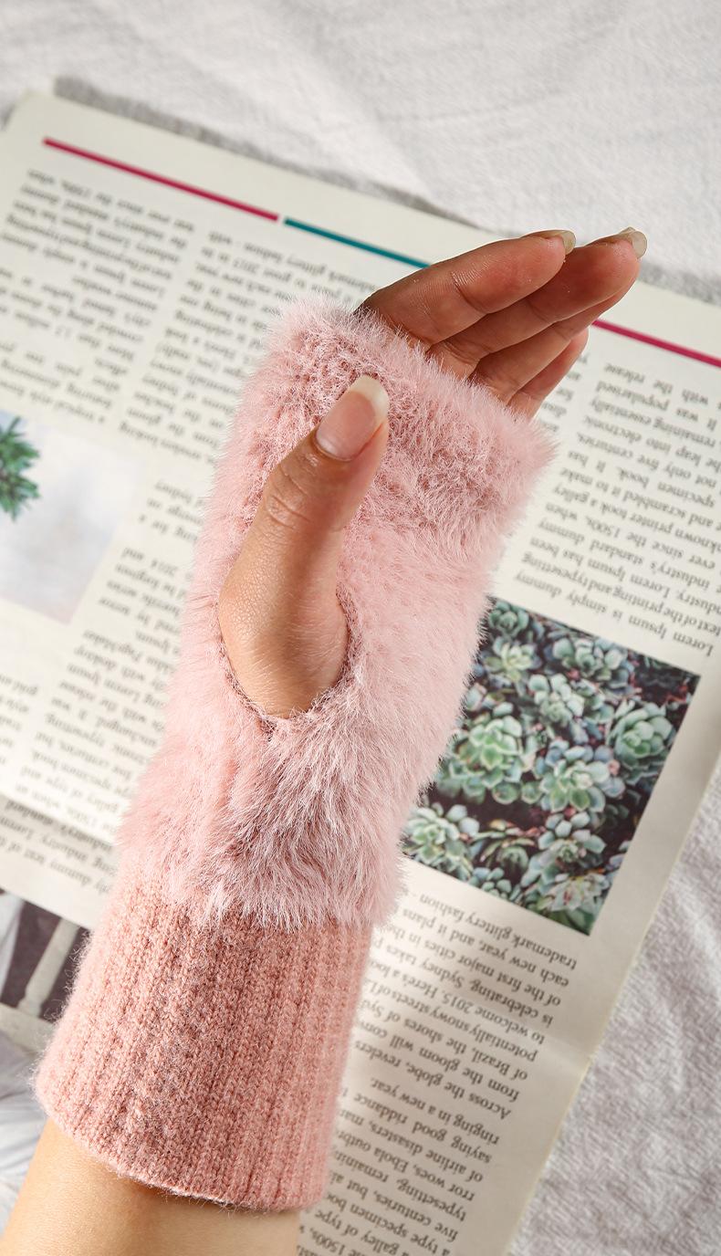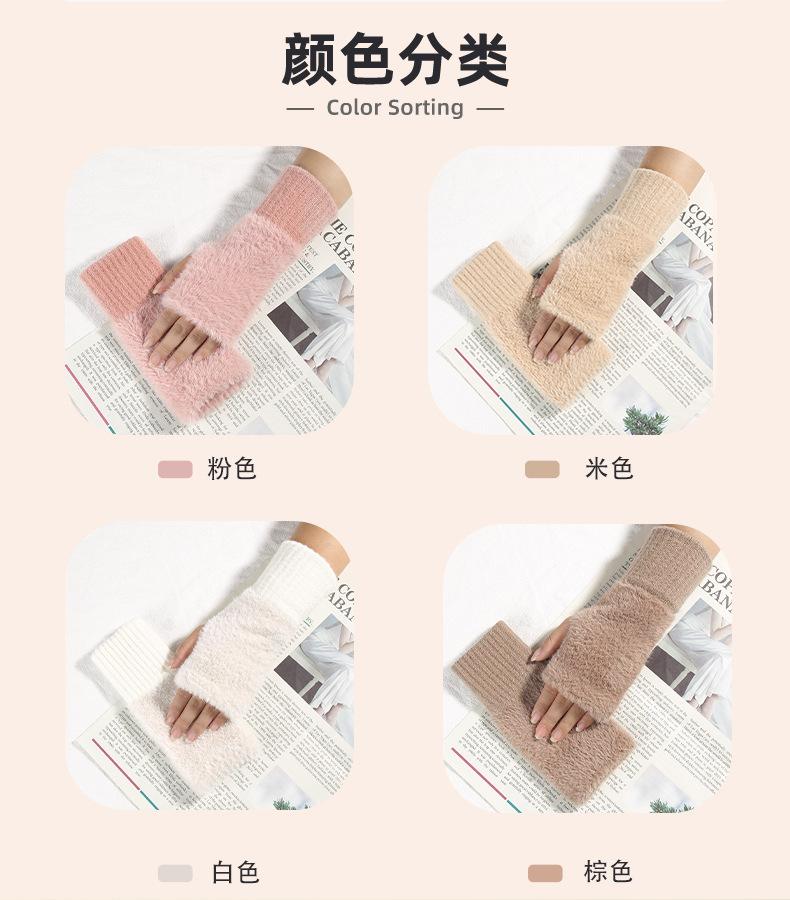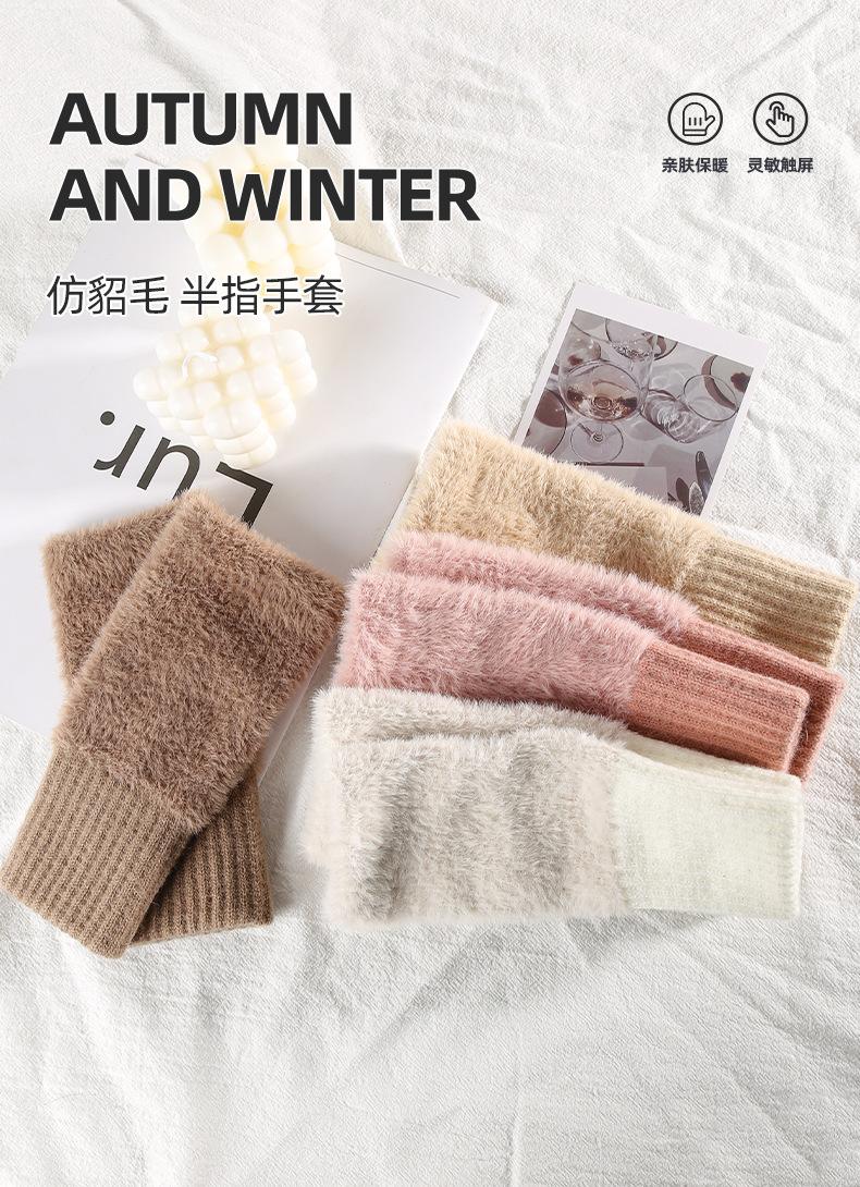 Guantes de Punto sin Dedos de Invierno para Mujer, Guantes de Invierno Cálidos para Exteriores con Forro Polar, Gruesos para Escribir con Medio Dedo, Piel Sintética de Visón Táctil