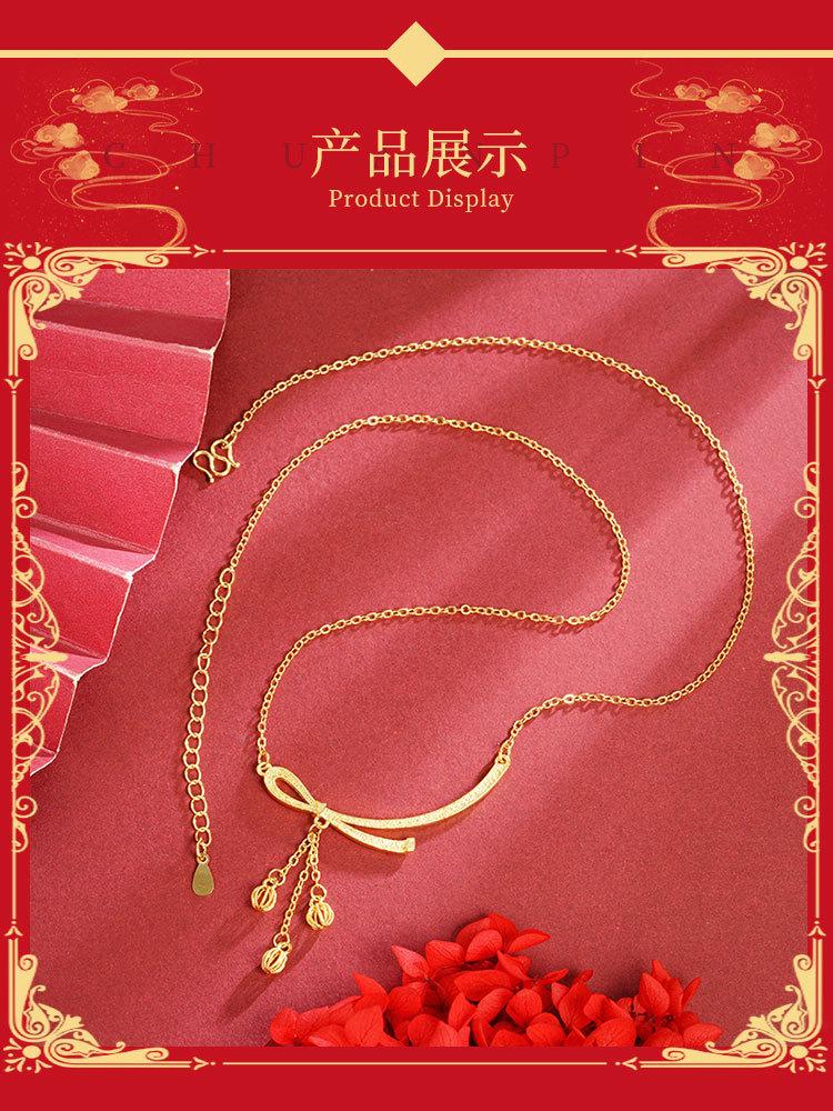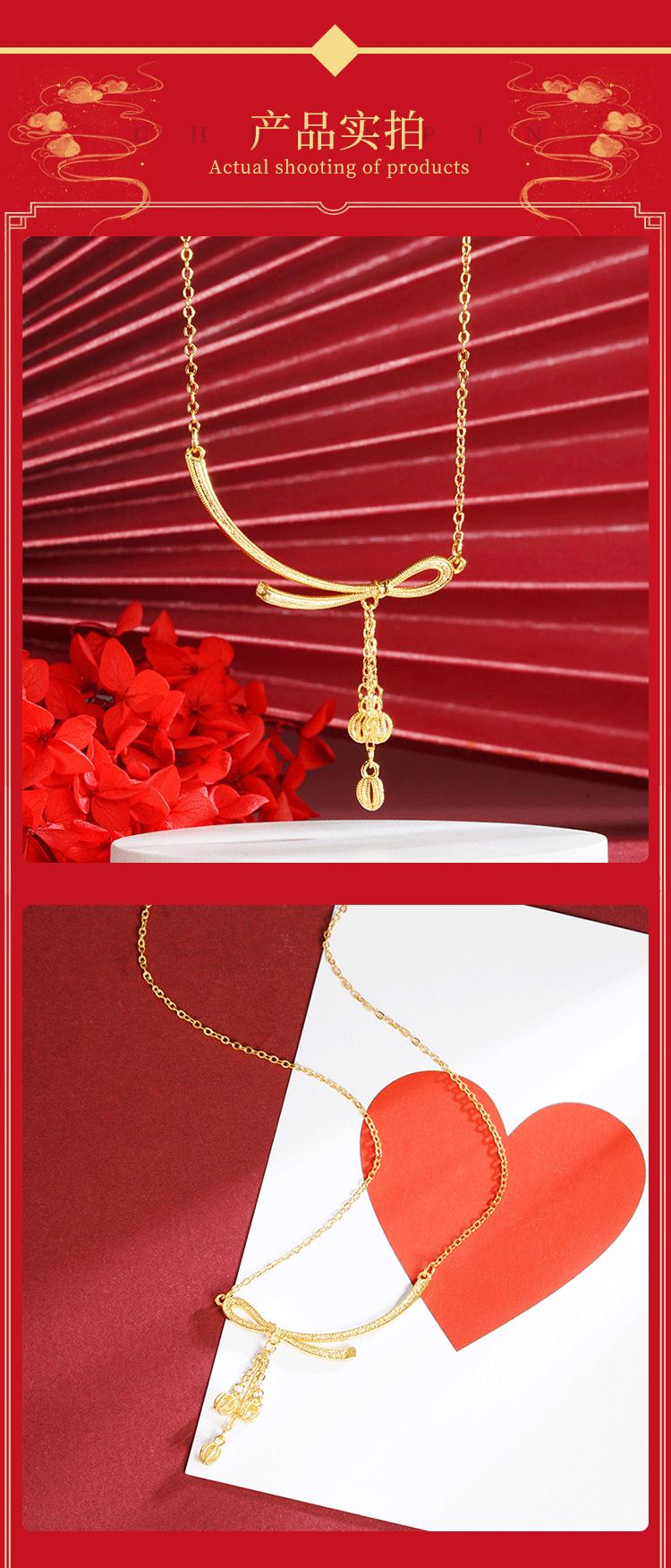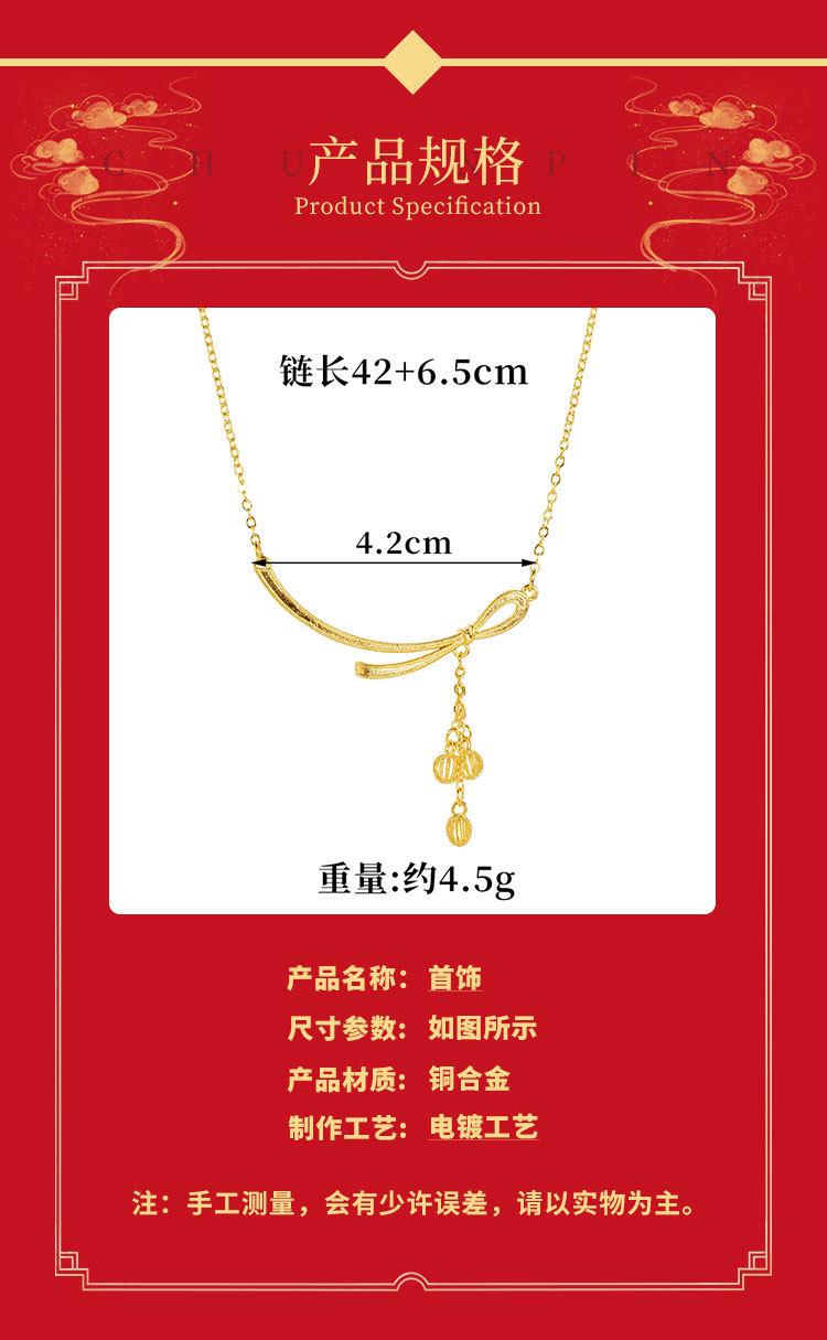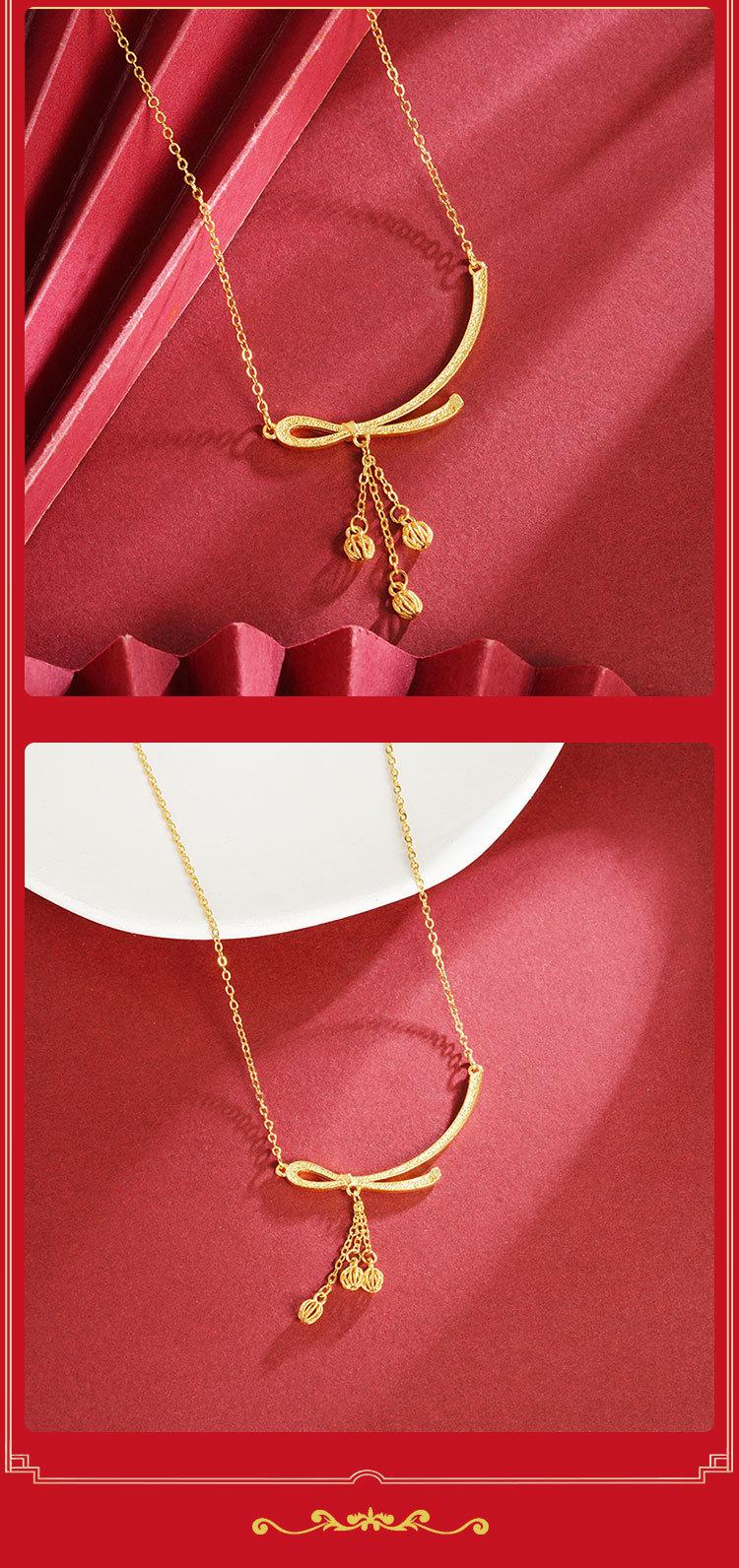 Nuevo Collar de Borla con Lazo Calado Dorado Arenoso de Estilo Chino para Mujer Nicho Elegante Simple Joker Joyería Outlet de Fábrica