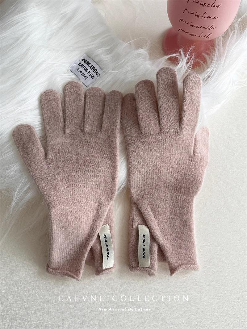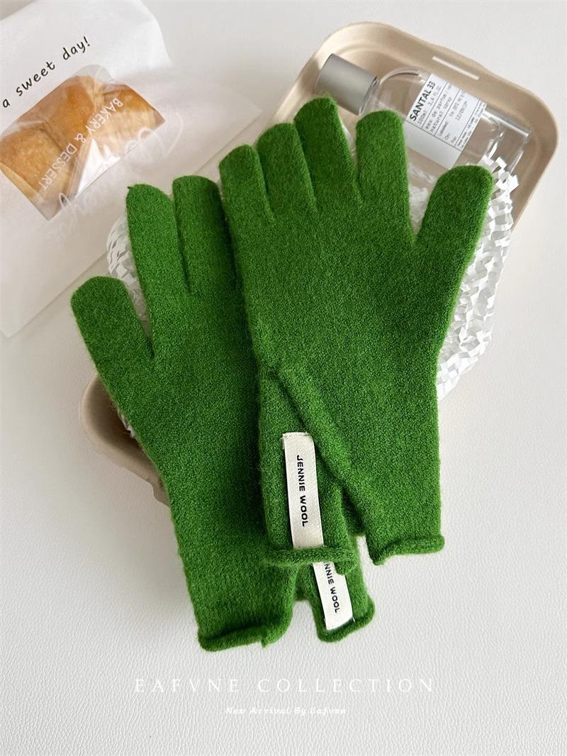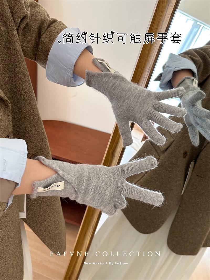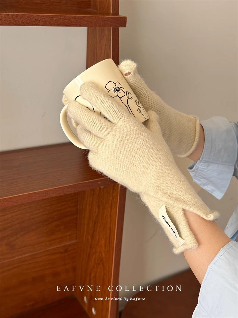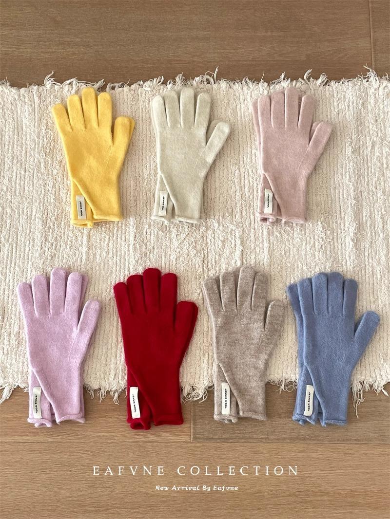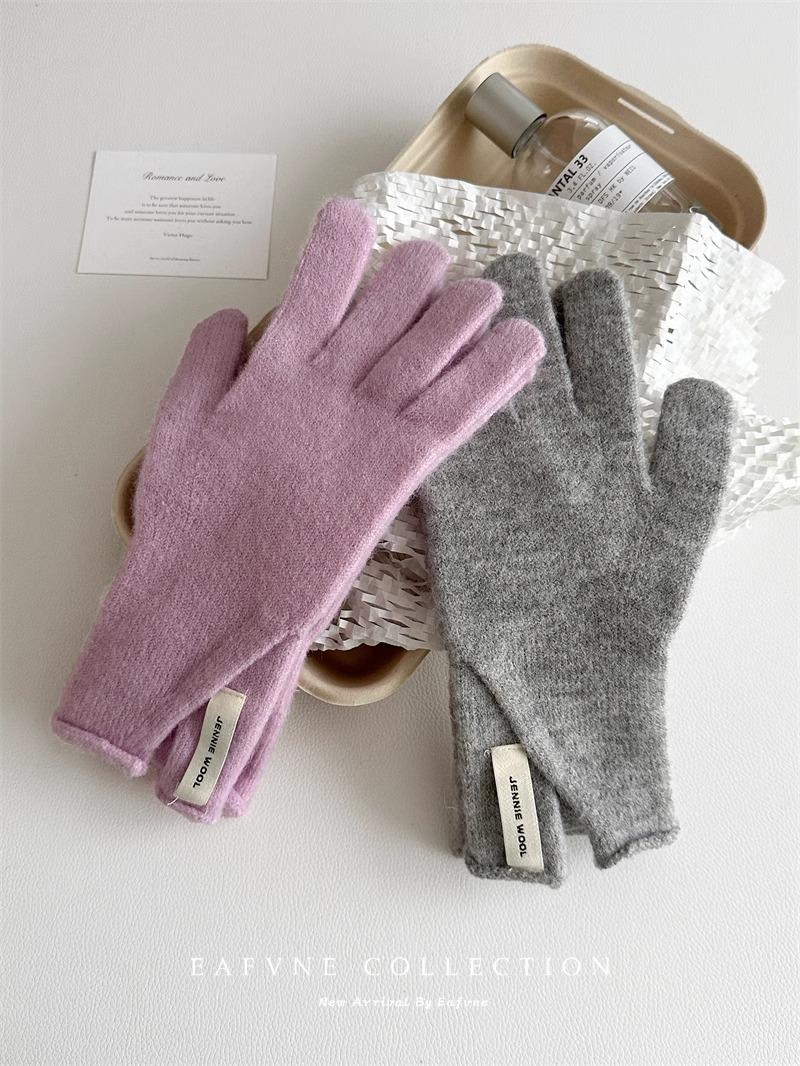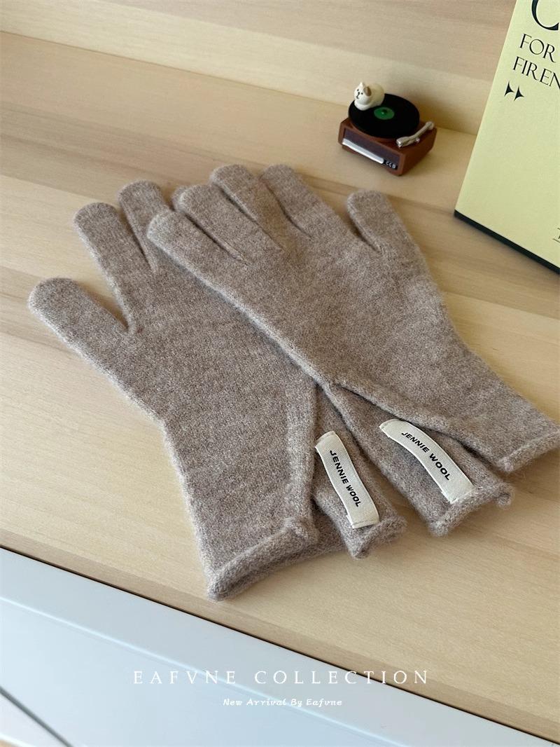 Guantes de Invierno Estilo Coreano Color Sólido Sin Dedos con Etiqueta para Mujer Sensación de Alta Gama Ins Combinables Tejidos de Lana Cálidos Guantes de Cinco Dedos