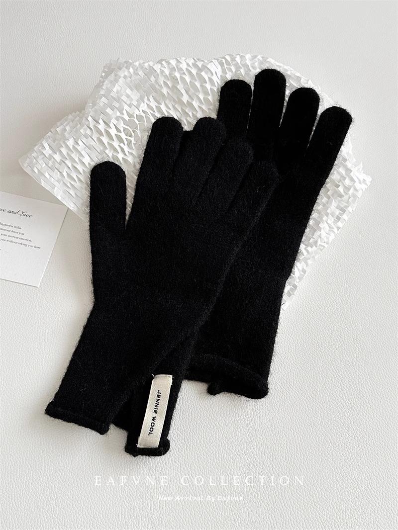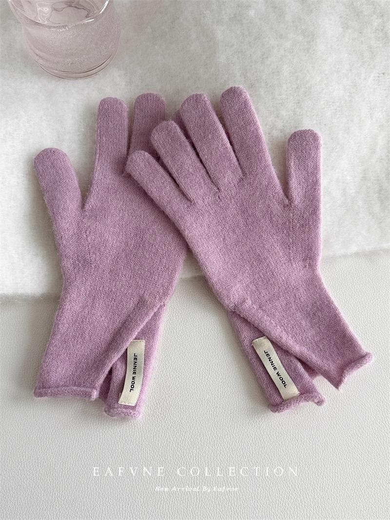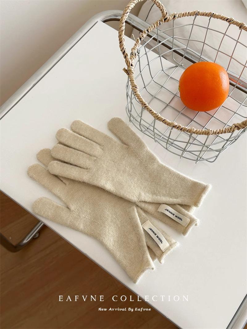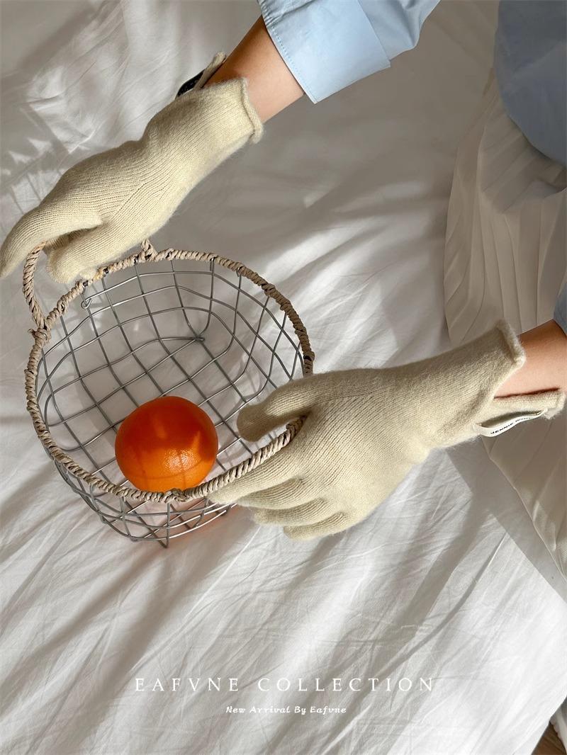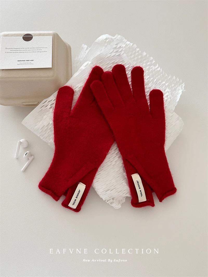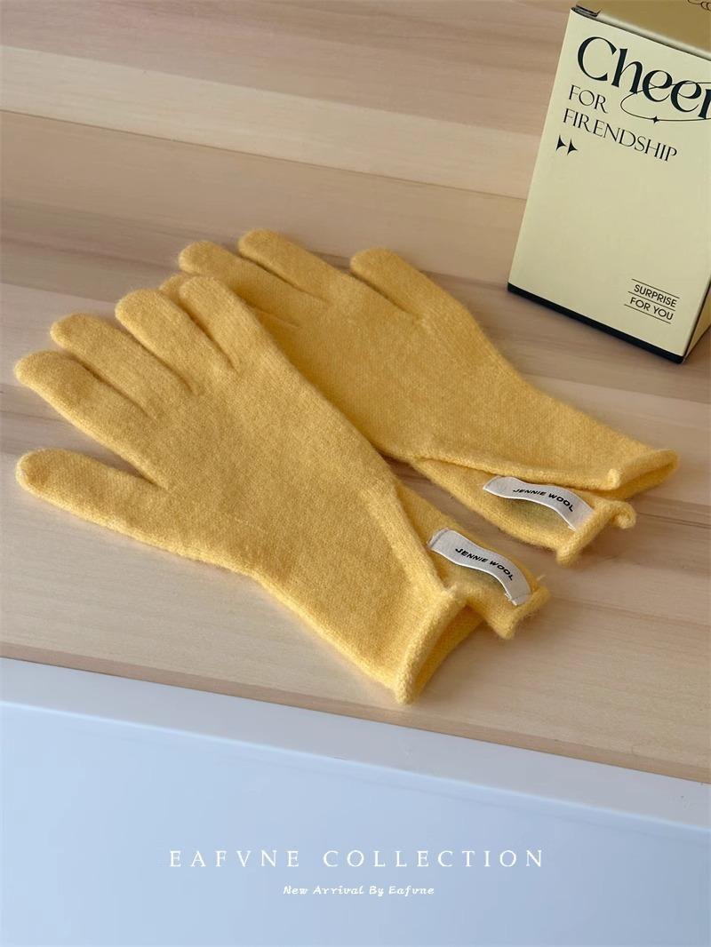 Guantes de Invierno Estilo Coreano Color Sólido Sin Dedos con Etiqueta para Mujer Sensación de Alta Gama Ins Combinables Tejidos de Lana Cálidos Guantes de Cinco Dedos