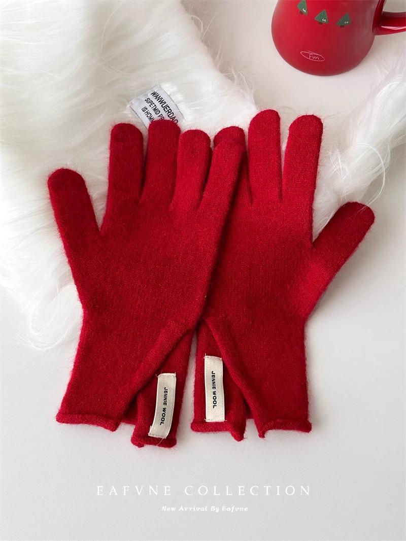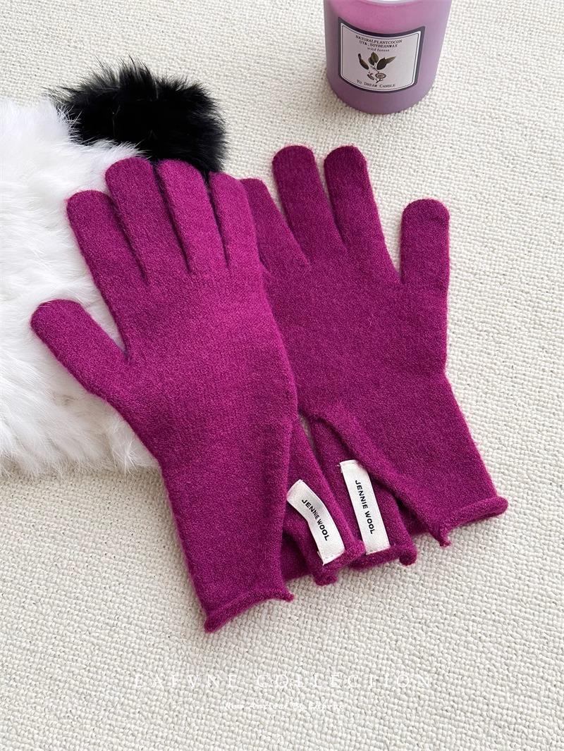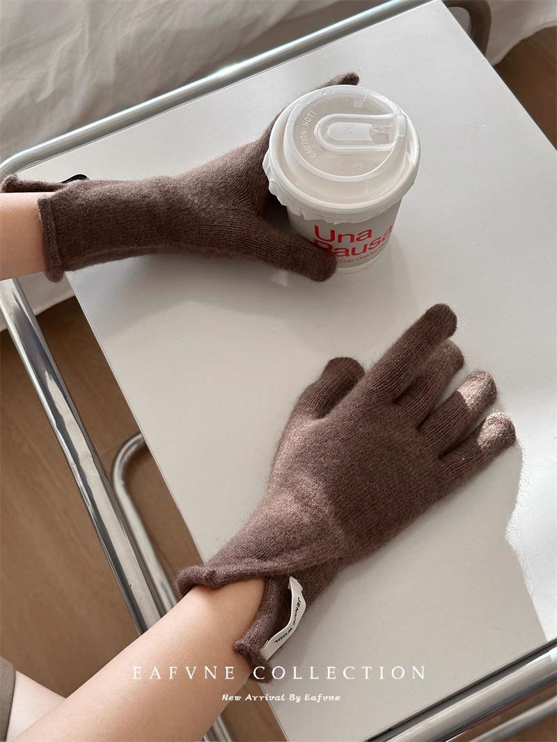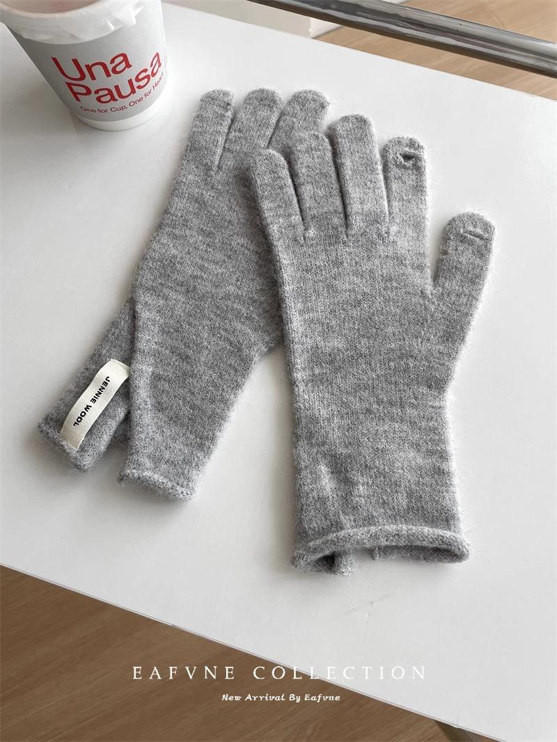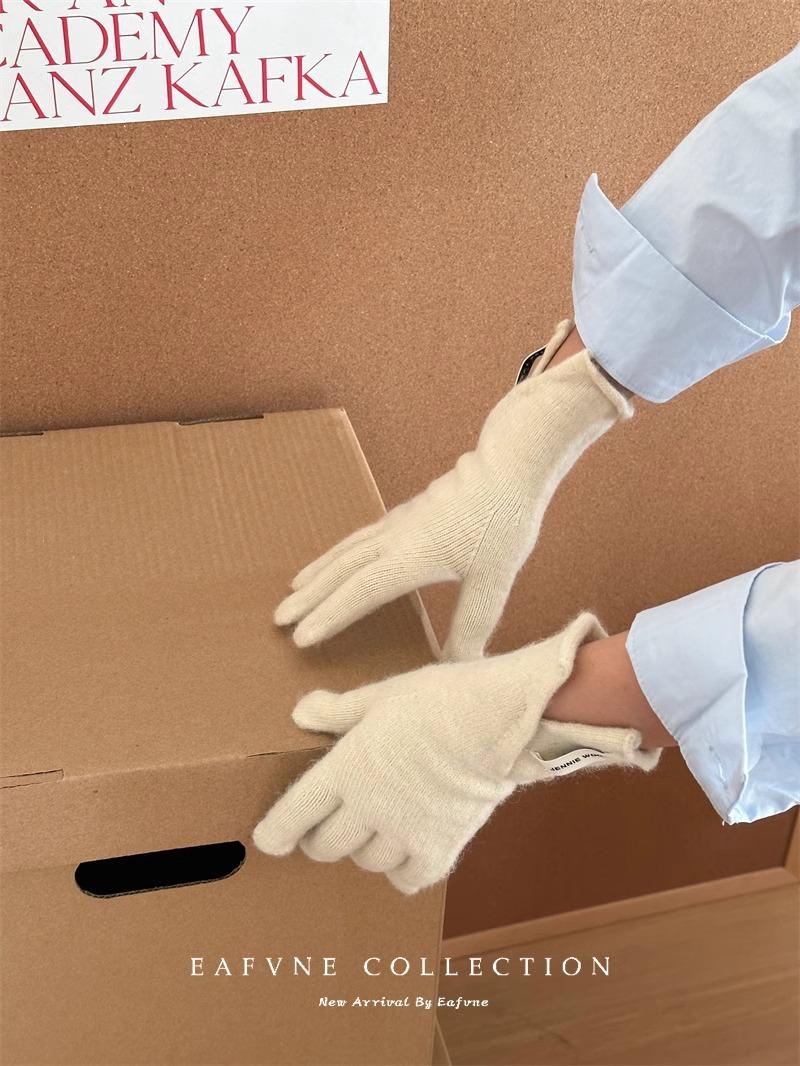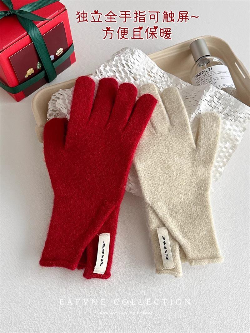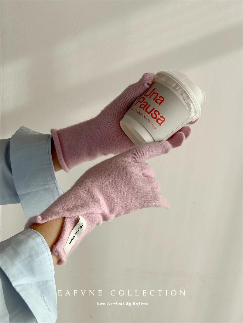 Guantes de Invierno Estilo Coreano Color Sólido Sin Dedos con Etiqueta para Mujer Sensación de Alta Gama Ins Combinables Tejidos de Lana Cálidos Guantes de Cinco Dedos