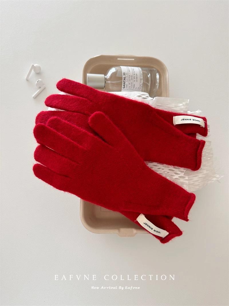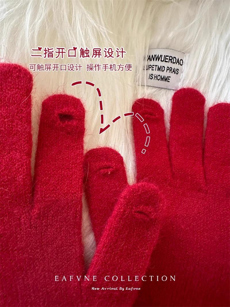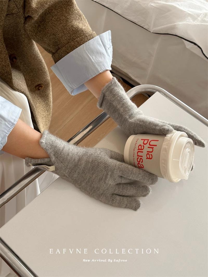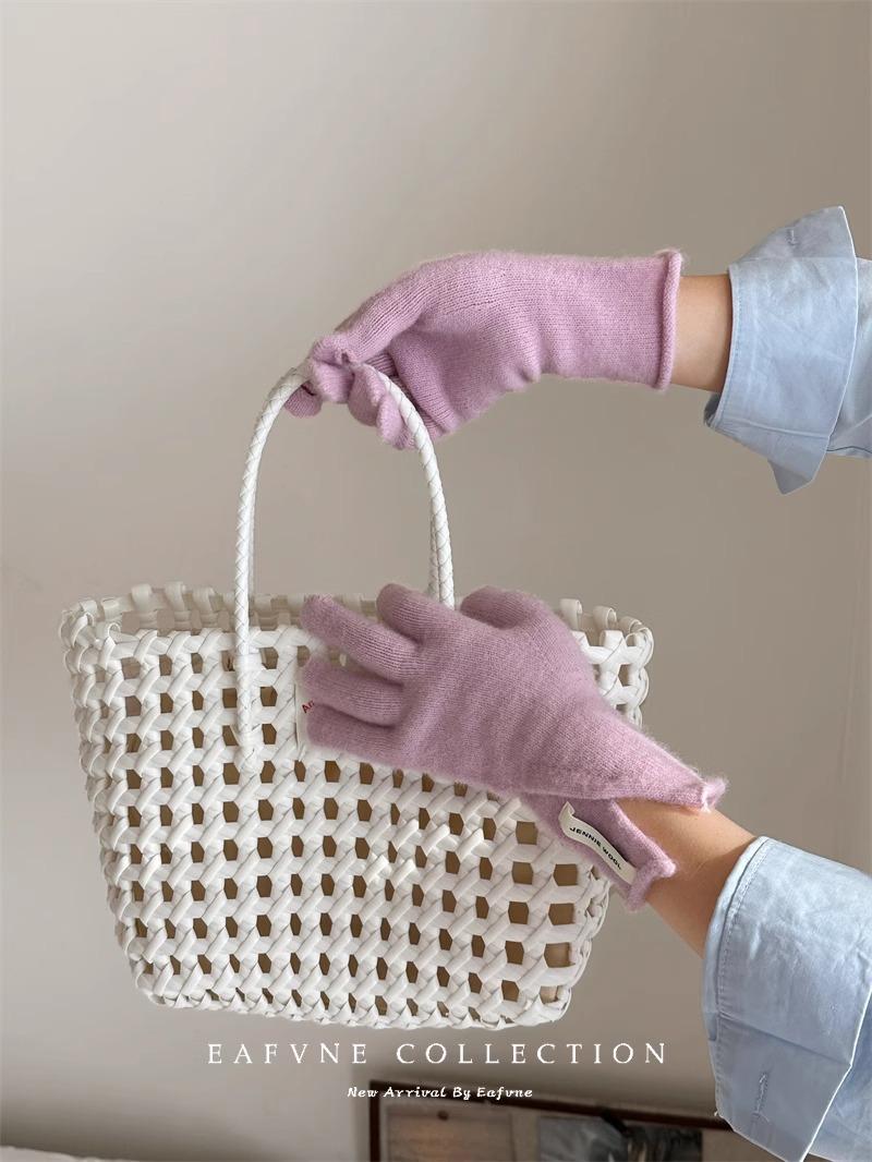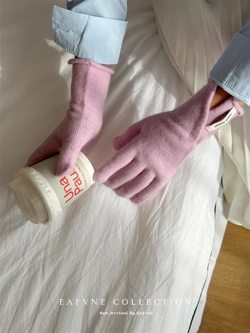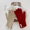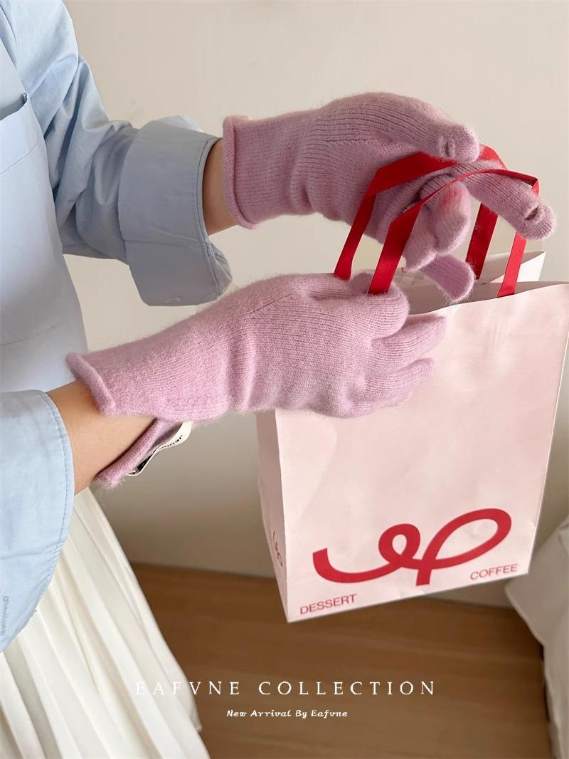 Guantes de Invierno Estilo Coreano Color Sólido Sin Dedos con Etiqueta para Mujer Sensación de Alta Gama Ins Combinables Tejidos de Lana Cálidos Guantes de Cinco Dedos