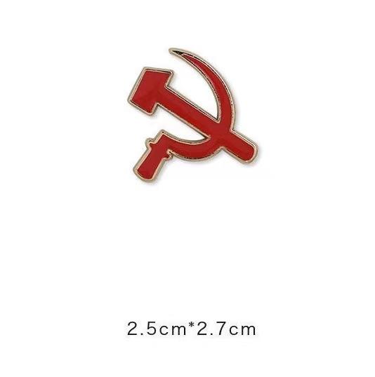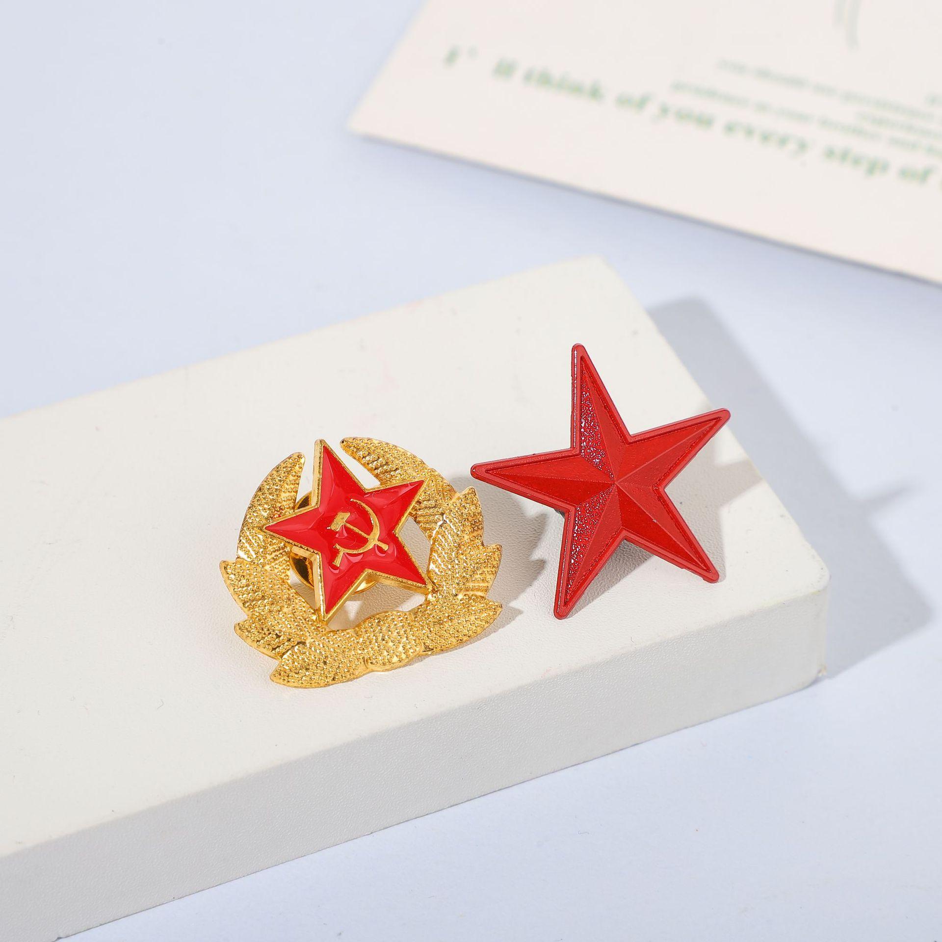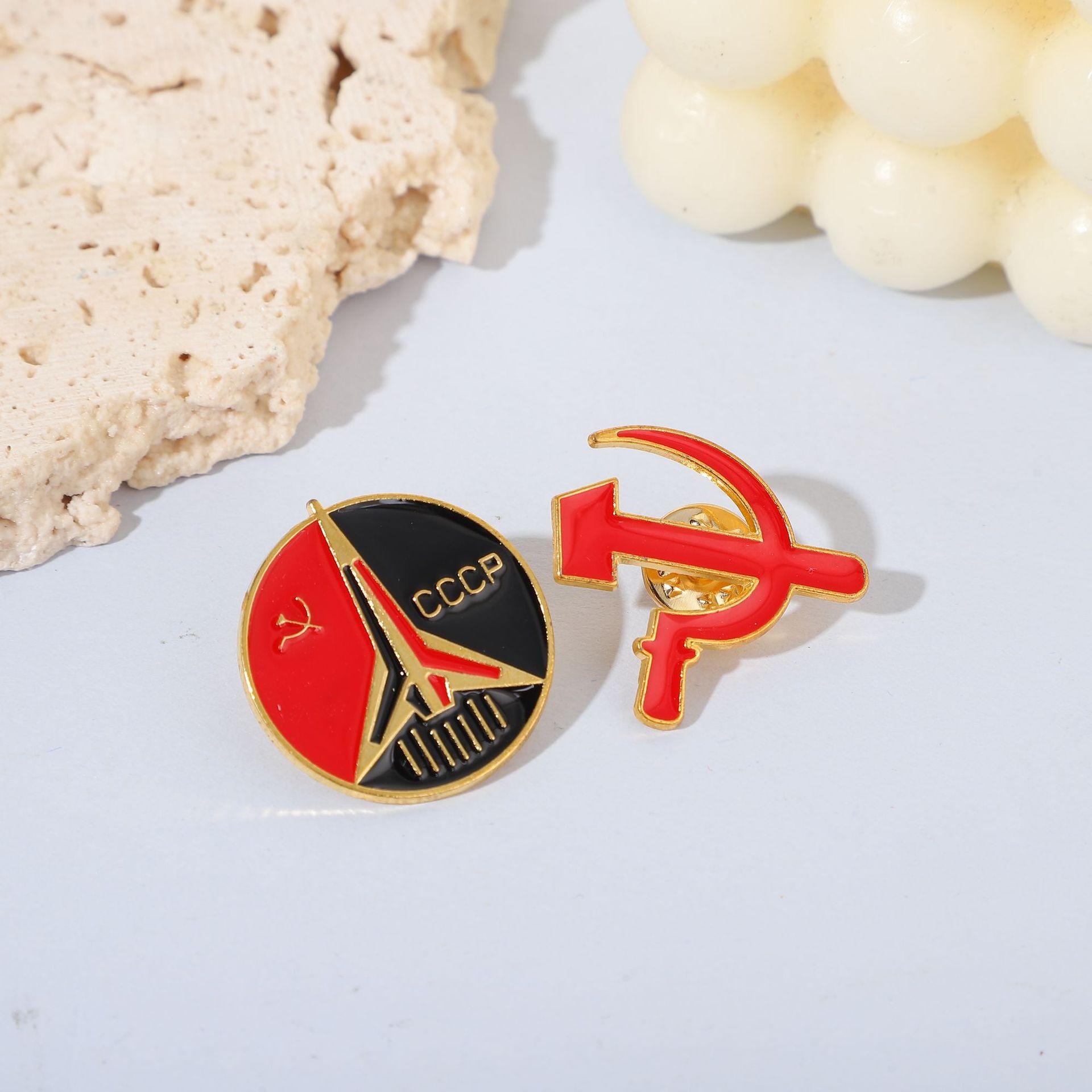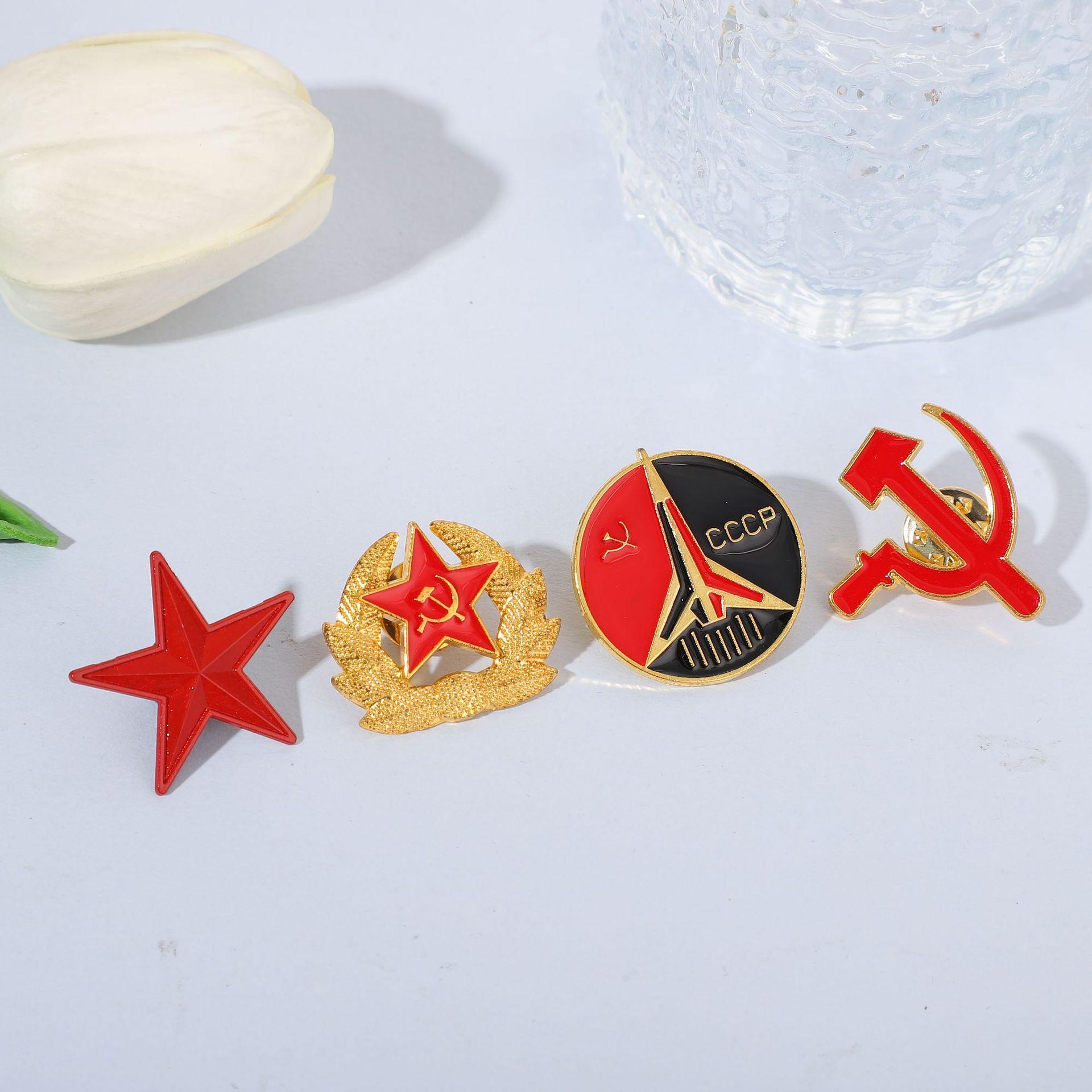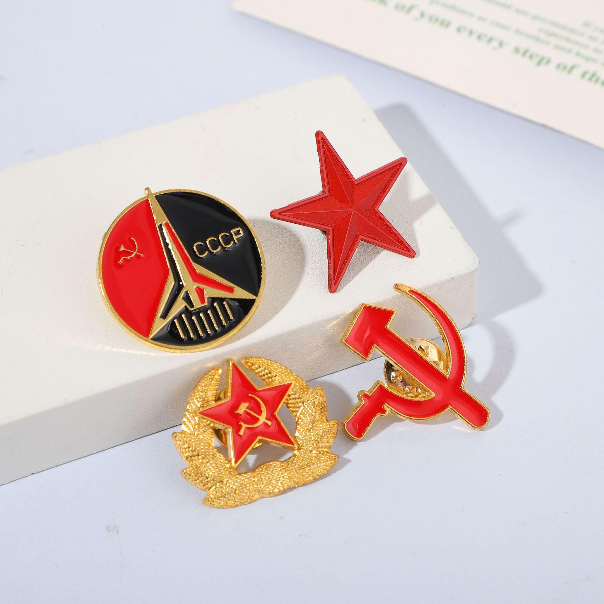 Broche de cinco estrellas rojo creativo con forma de martillo y hoz retro para hombre, con personalidad comunista soviética del CCCP.