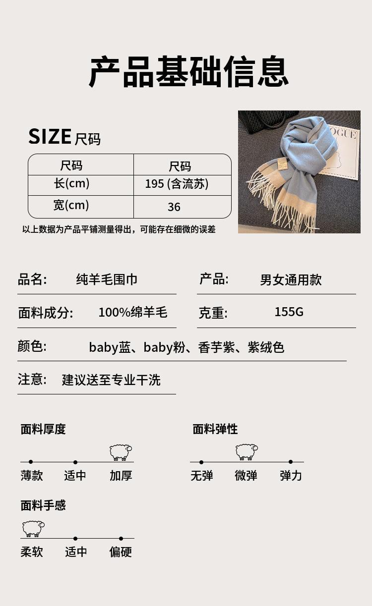 Bufanda de lana pura de moda de estilo coreano para mujer, otoño e invierno, bufanda de lana 100% cálida y a juego, chal grueso y cómodo a prueba de frío