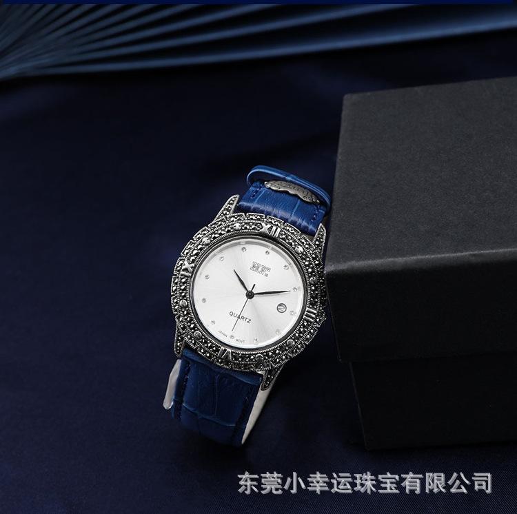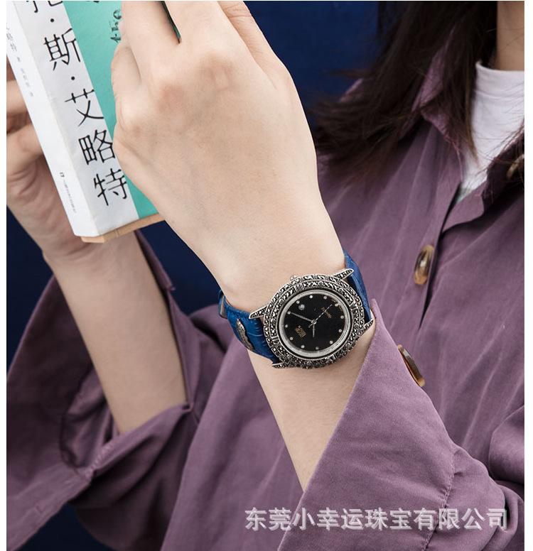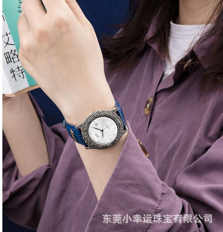 Reloj de moda para hombre y mujer, personalidad versátil, movimiento de alta calidad, correa de piel de vaca, importado de Tailandia, reloj exquisito de plata S925