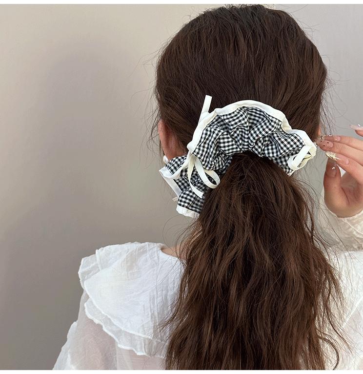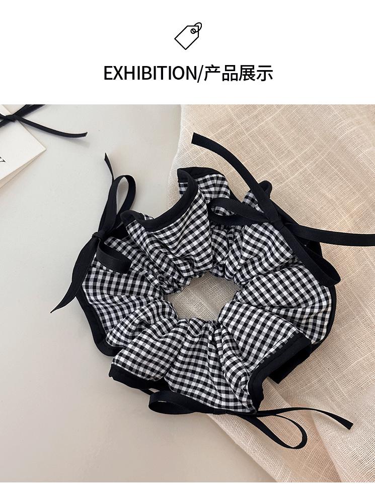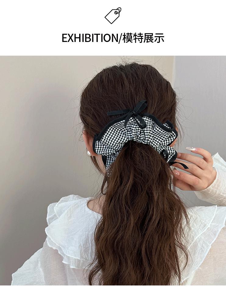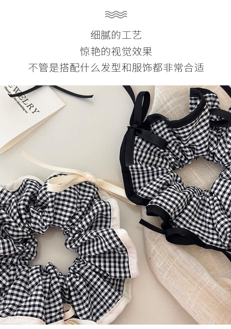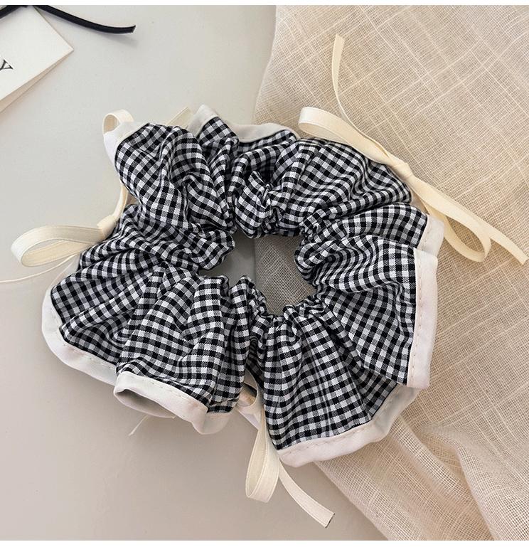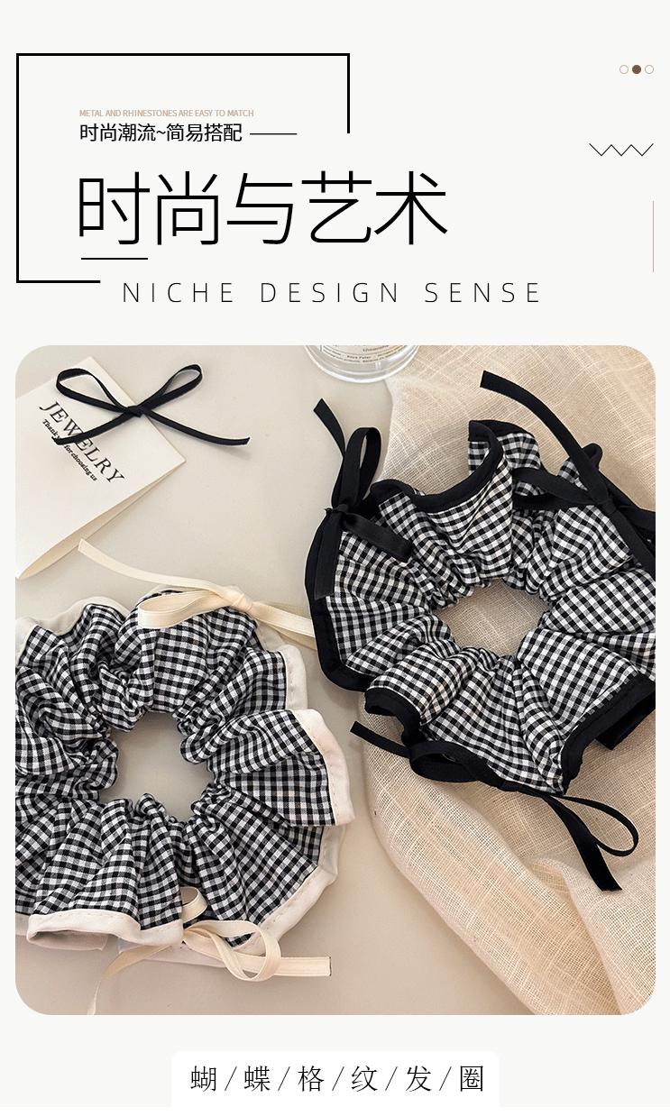 Anillo para el cabello de tela a cuadros con lazo de alta gama, ideal para celebridades de Internet (2024), estilo retro francés.
