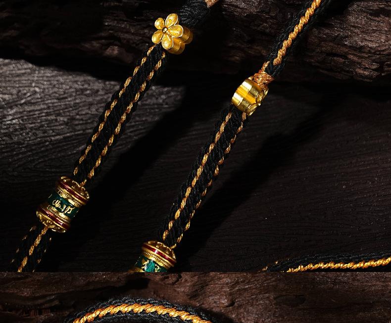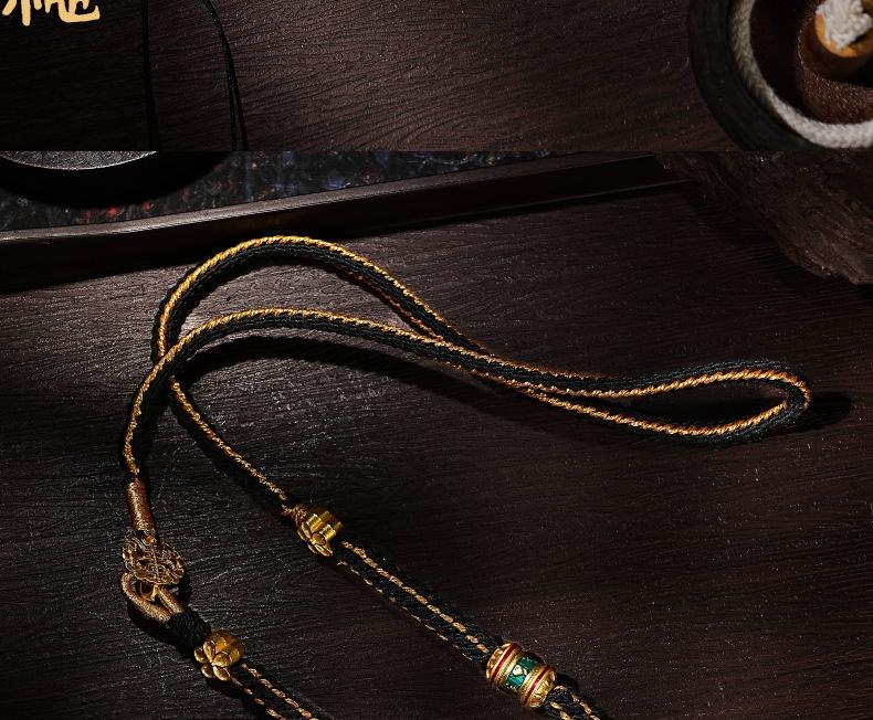 Collar de Cuerda Colgante Estilo Xizang Estilo Étnico Frotado a Mano Cuerda de Lana de Algodón Collar Marca Buda Cuerda Colgante Thangka Cadena de Lana para Hombre y Mujer