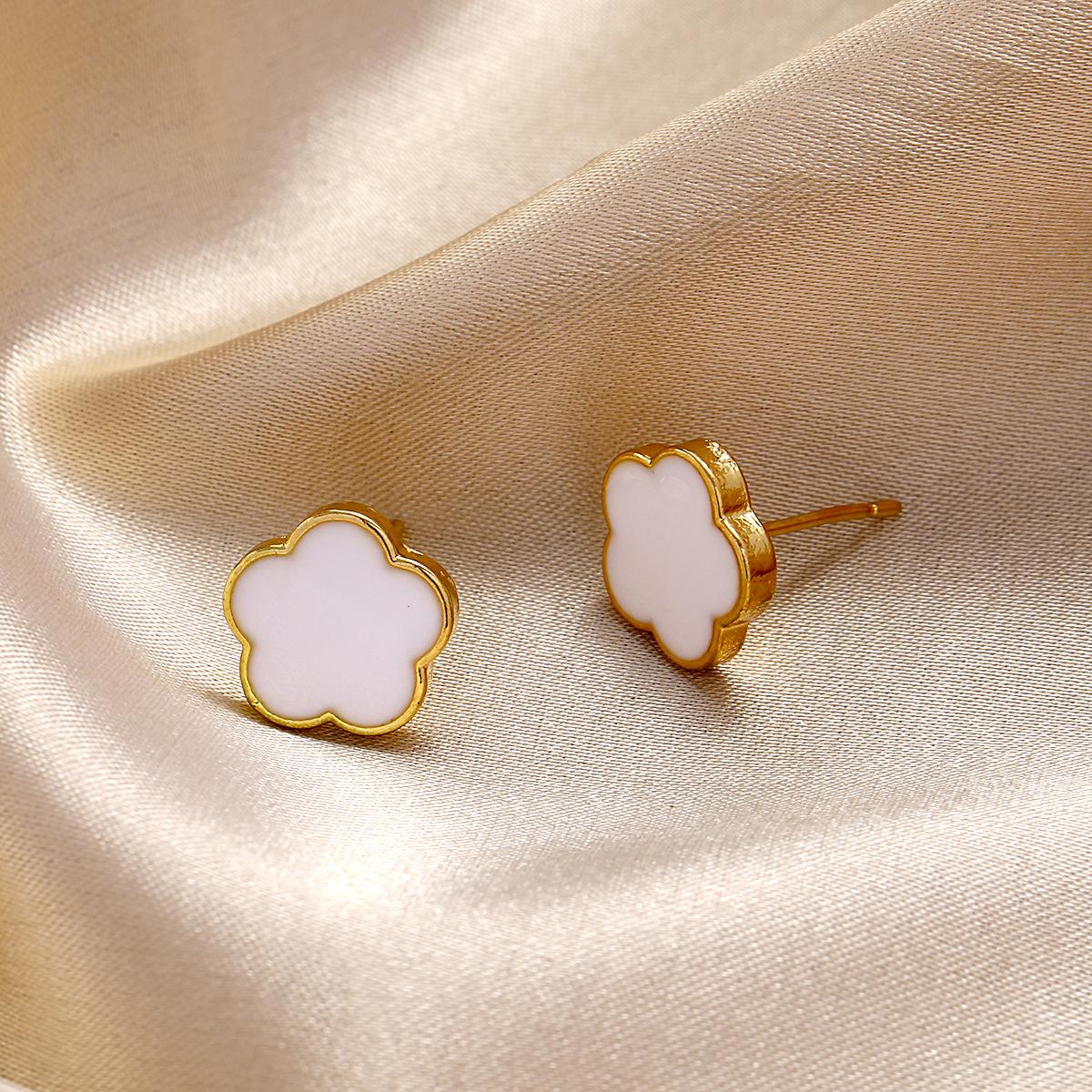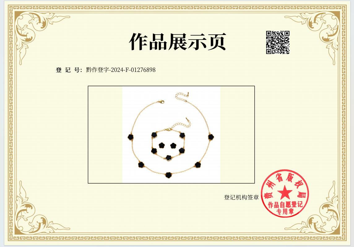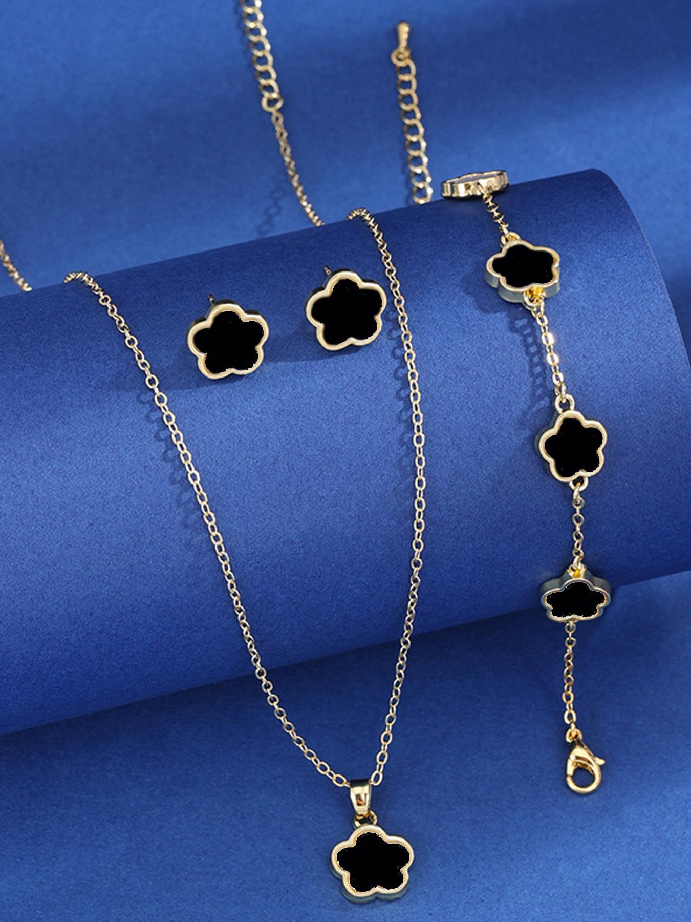 Ventas Calientes Transfronterizas Nuevo Set de Aretes Pulsera Collar Flor de Cinco Pétalos Moda Versátil Europea y Americana Pulsera Flor de Cinco Hojas de la Suerte