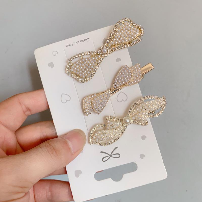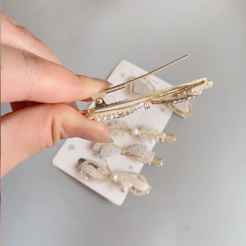 Horquilla de Lazo Estilo Coreano Celebridad de Internet Clip de un Carácter Clip Lateral de Perlas Horquilla de Flequillo de Alta Gama Clip Lateral Accesorios para el Cabello para Mujeres