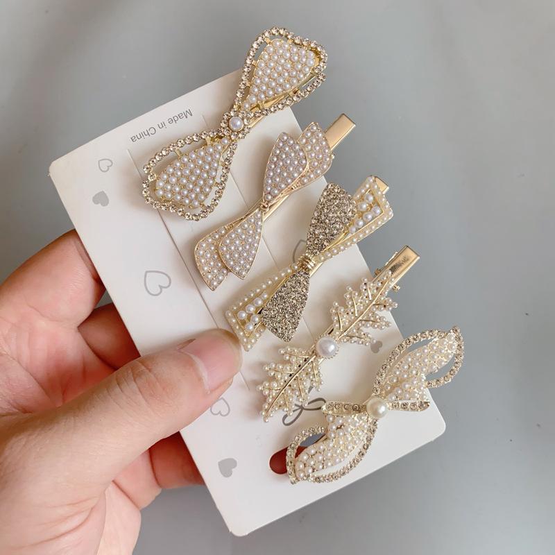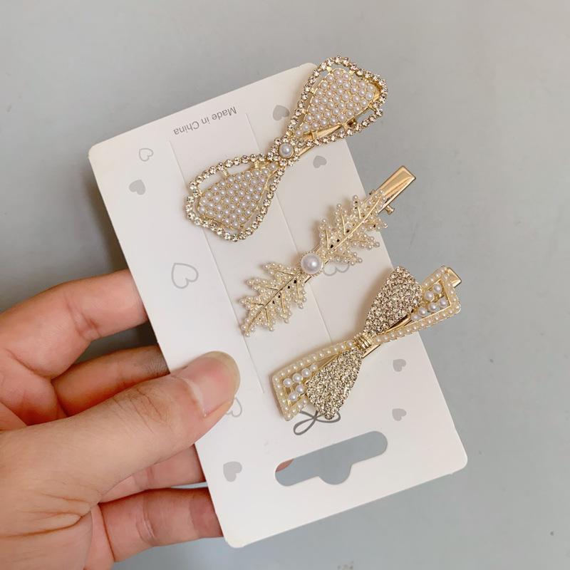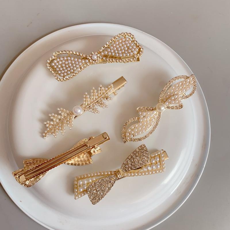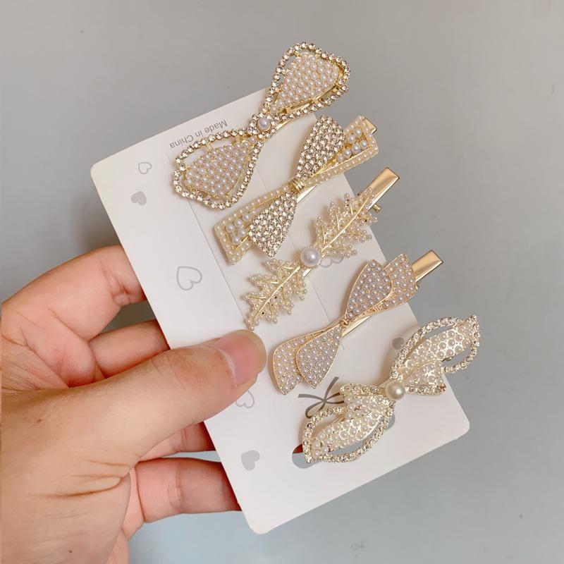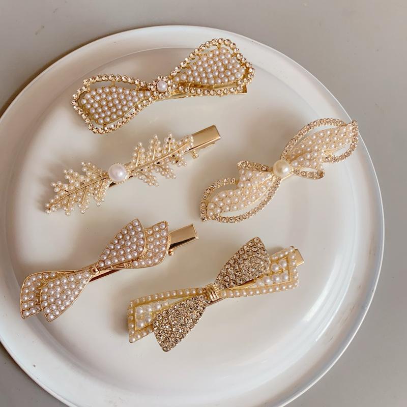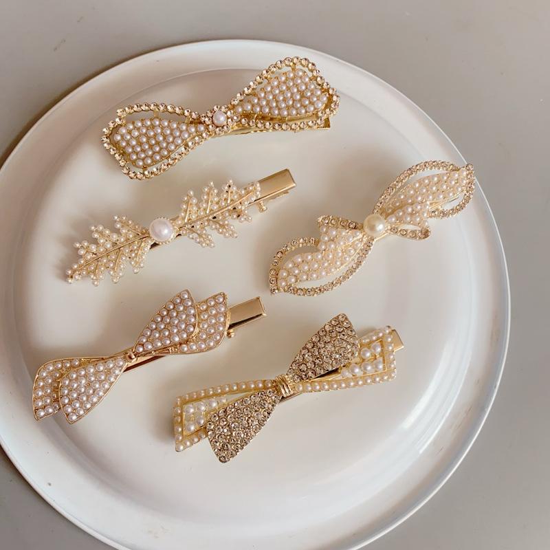 Pearl leaves, Beaded diamond bow, Flying flower duck clip, Full bead style