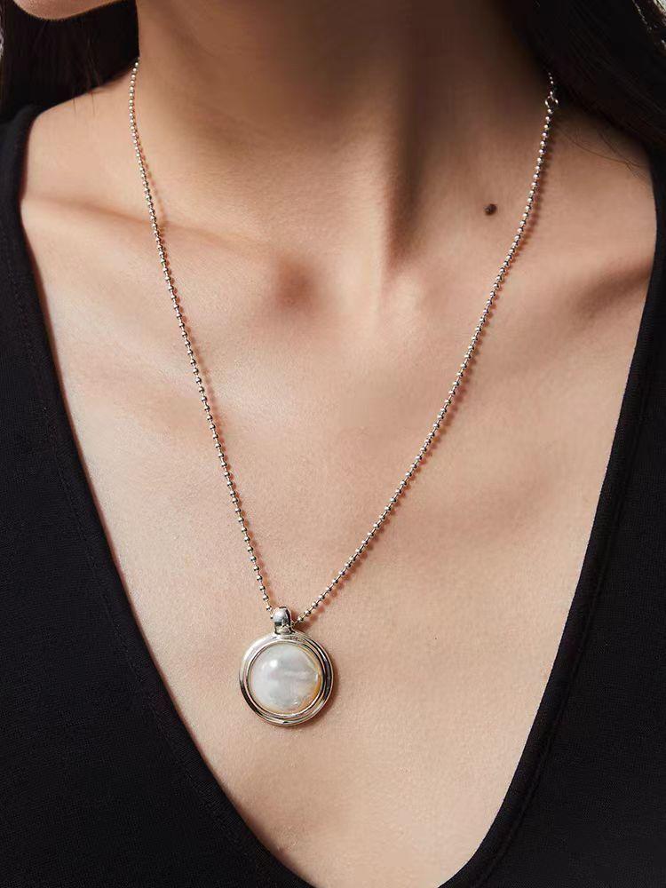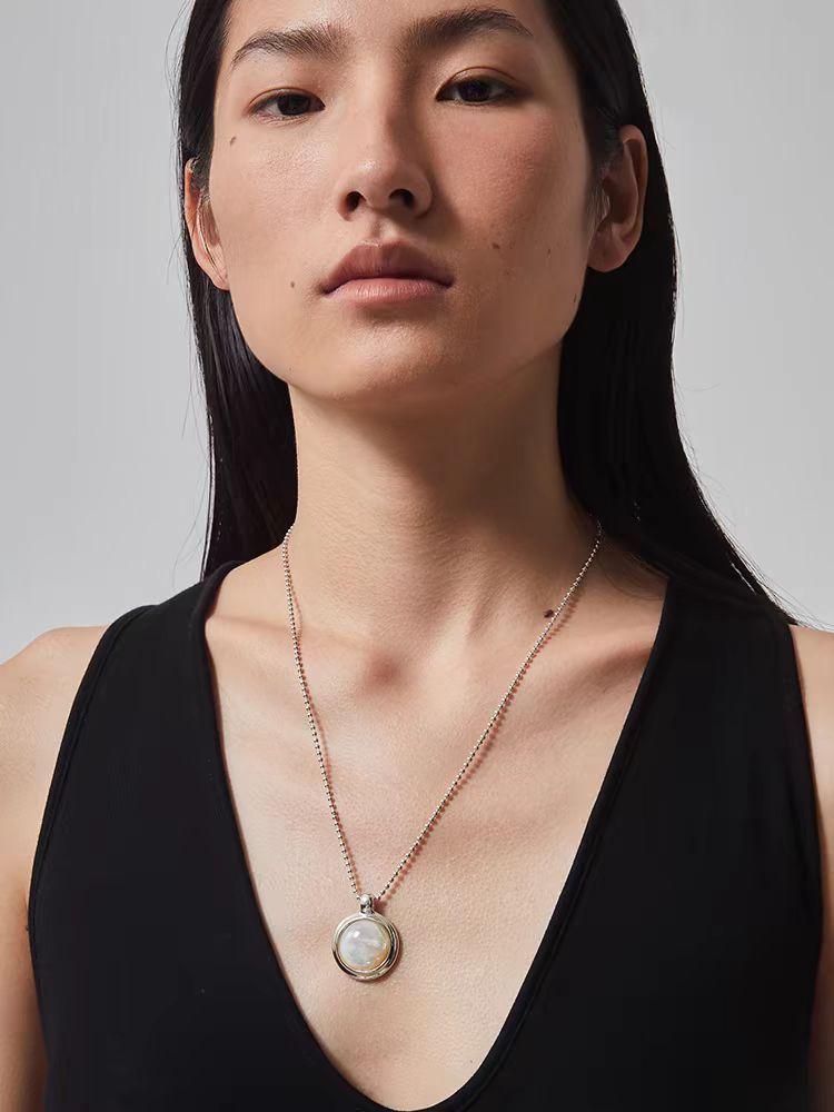 Regalo de San Valentín Bai Bei colgante redondo collar largo diseño nicho moda temperamento alto sentido clavícula