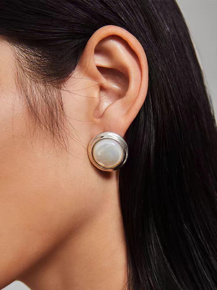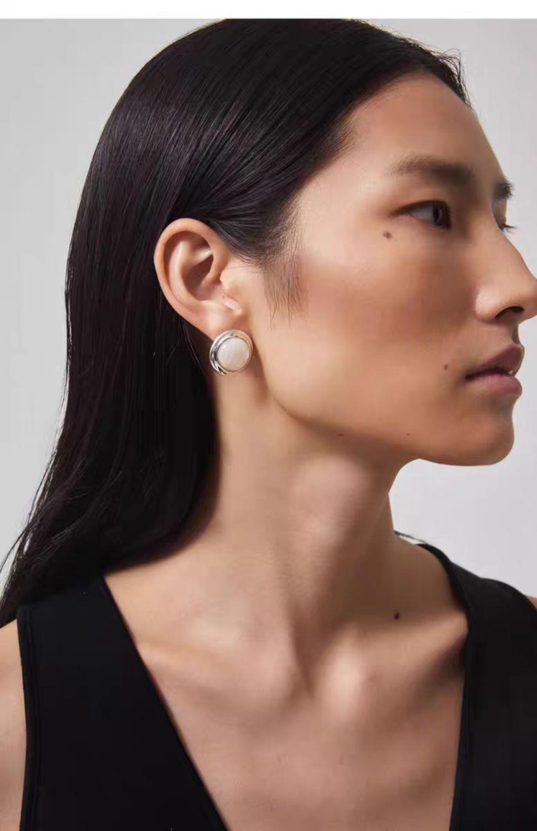 Streamer white shell stud earrings