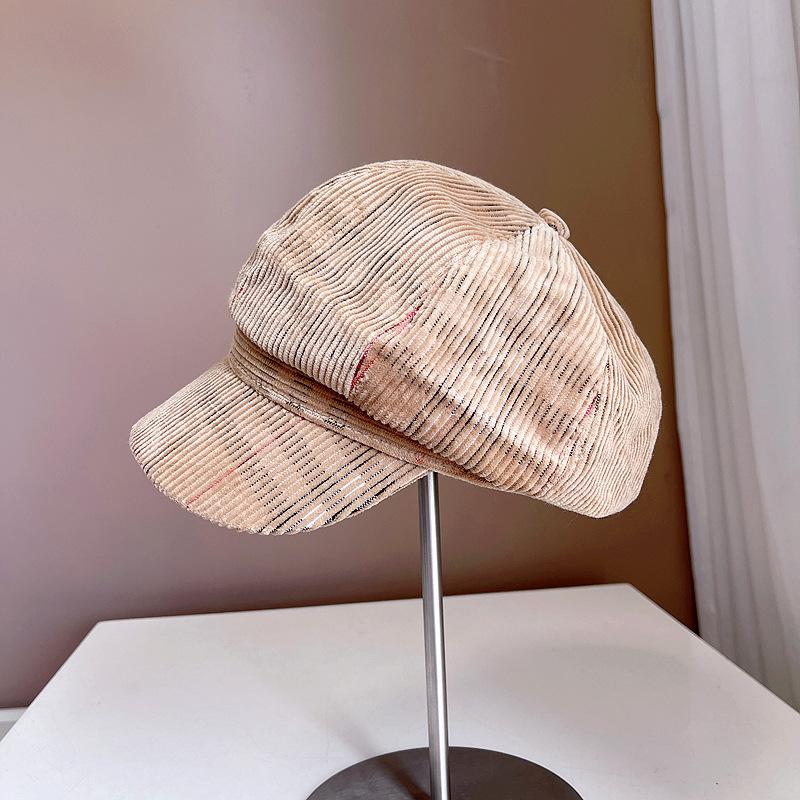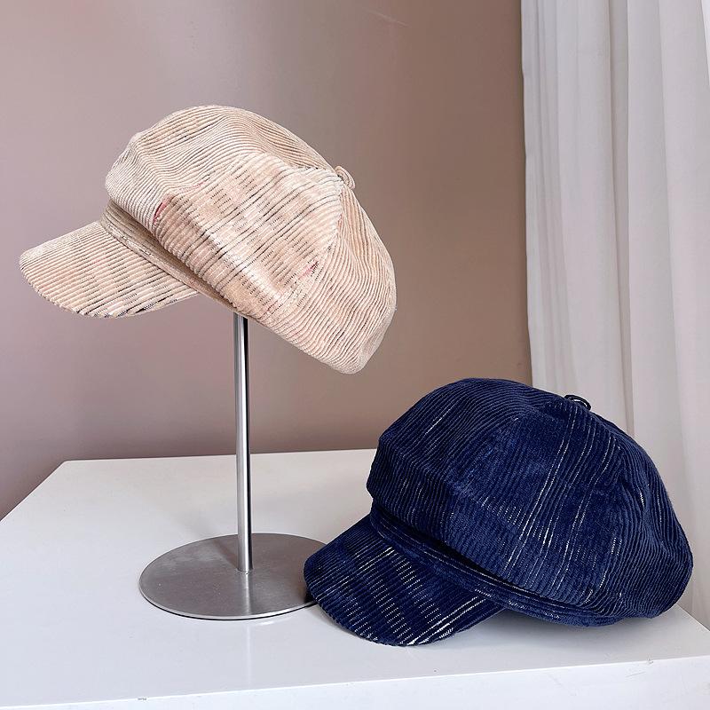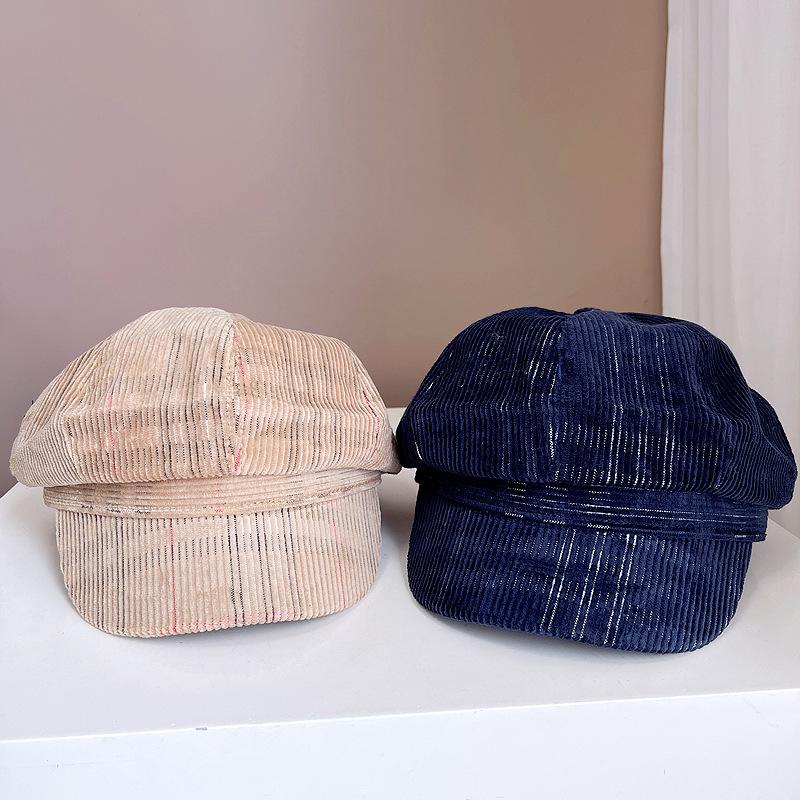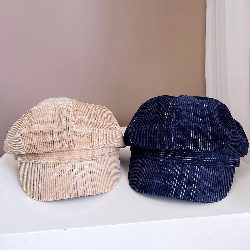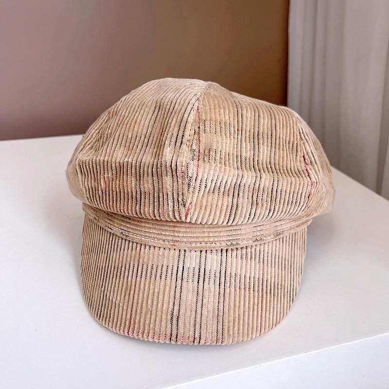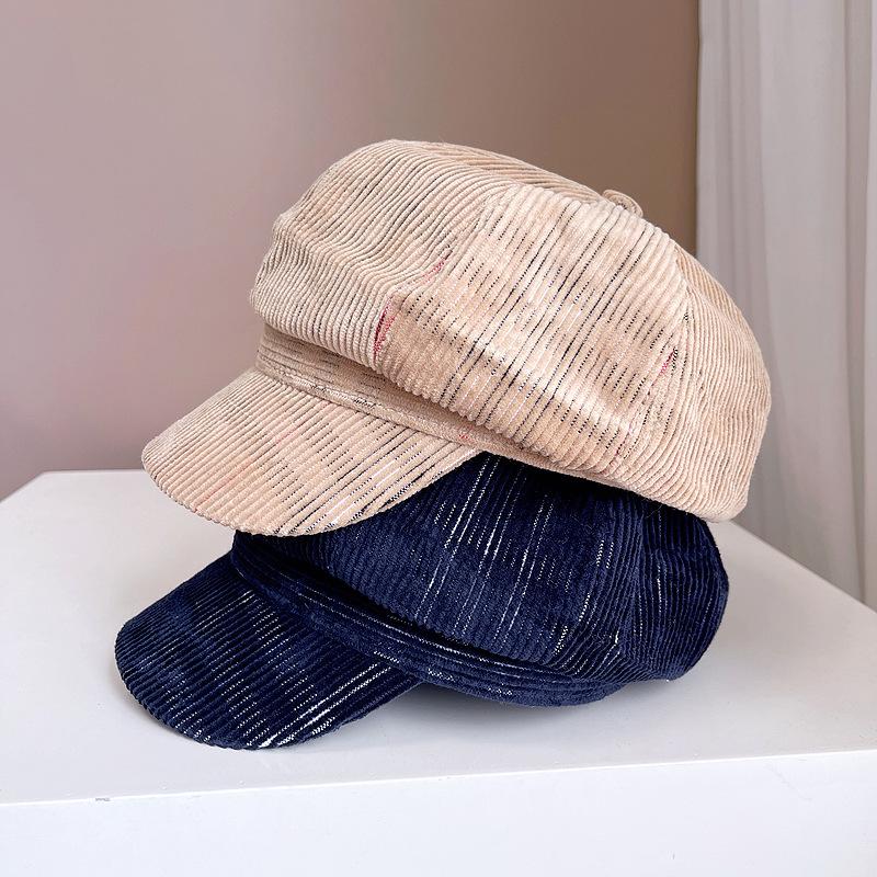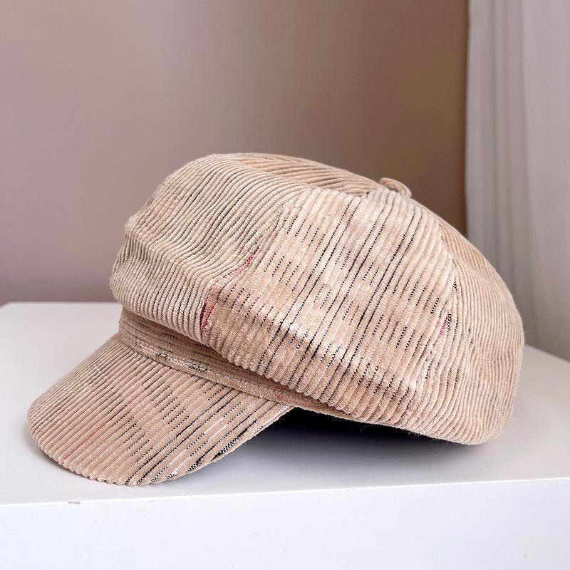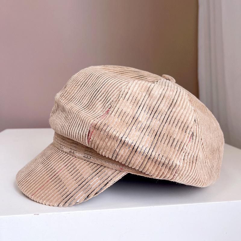 Gorra de pana retro para mujer, estilo británico, combinable, octogonal, informal, elegante y a la moda, para otoño e invierno.