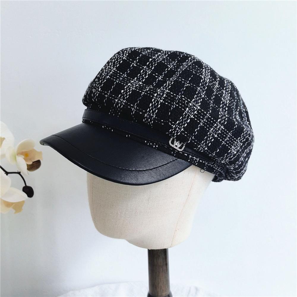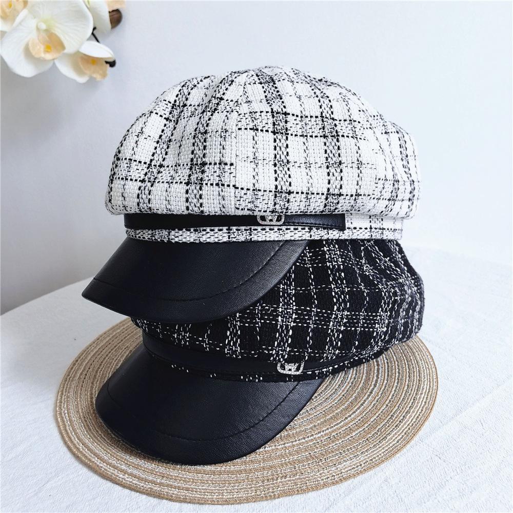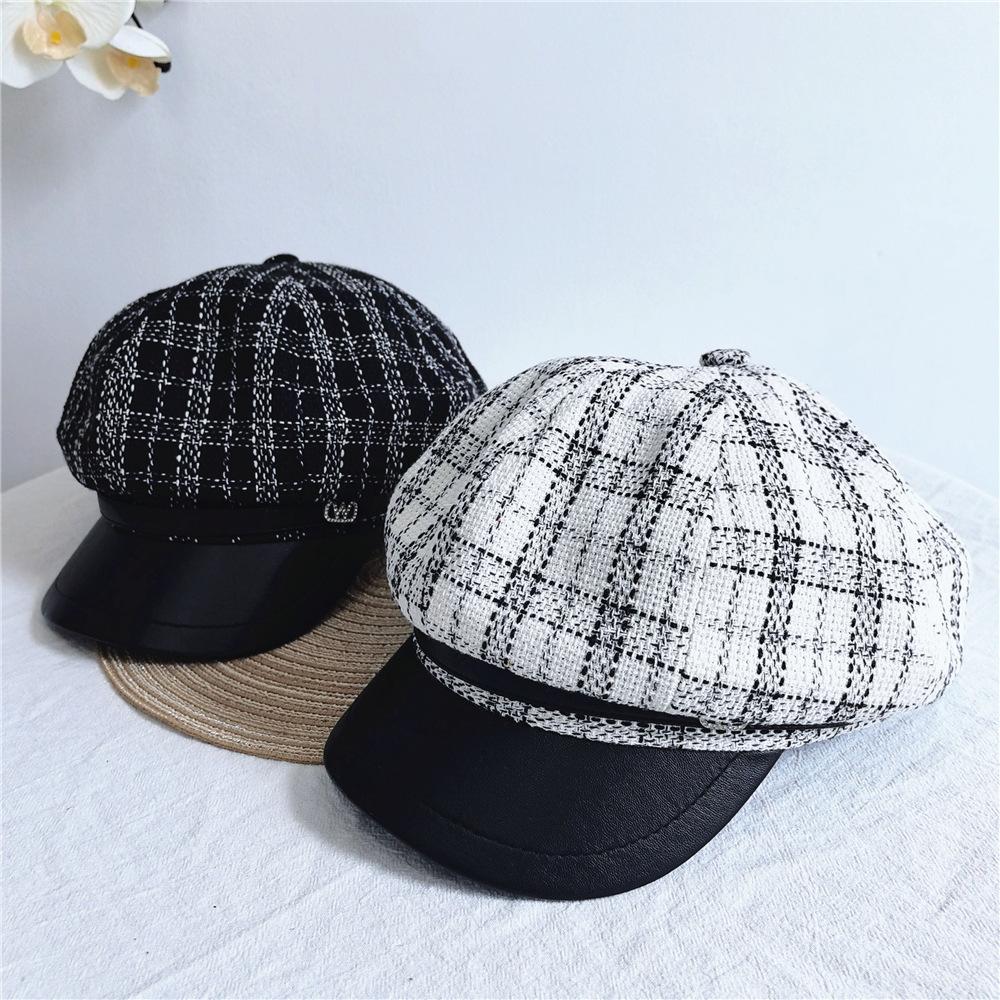 Boina elegante estilo Chanel para mujer, primavera y otoño, estilo japonés, retro, a cuadros, con lengüeta de pato, gorra octogonal, gorra británica de vendedor de periódicos para todo tipo de partidos.