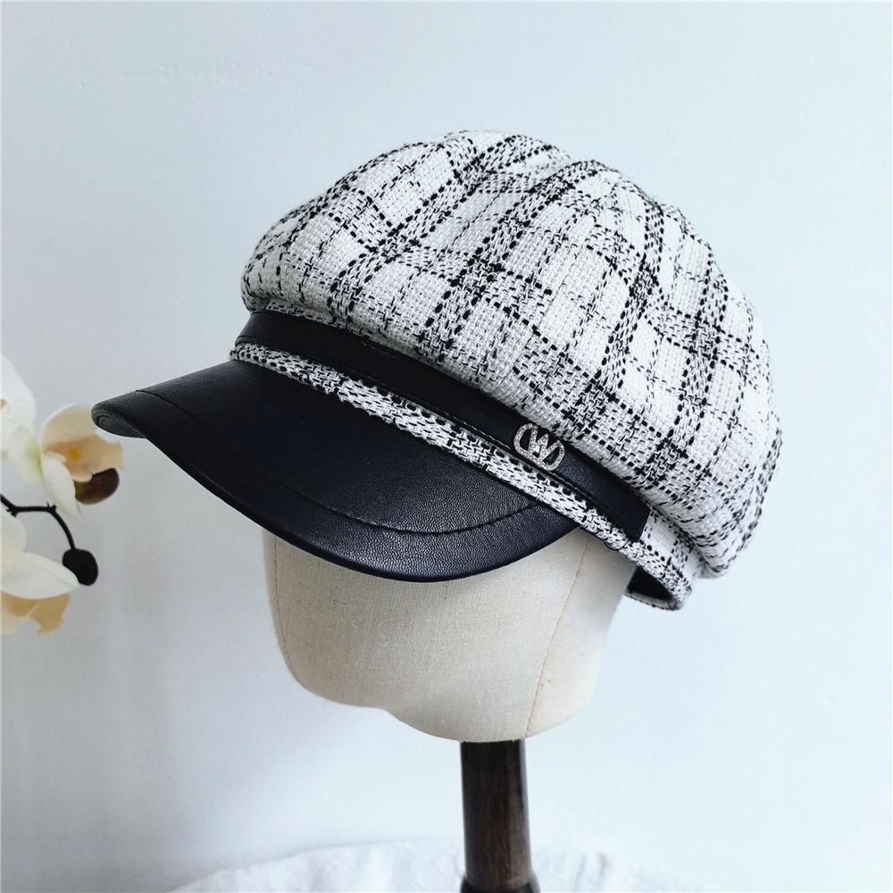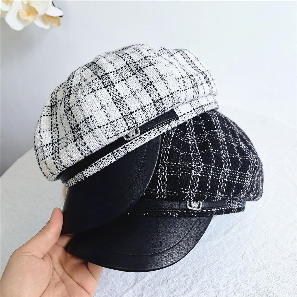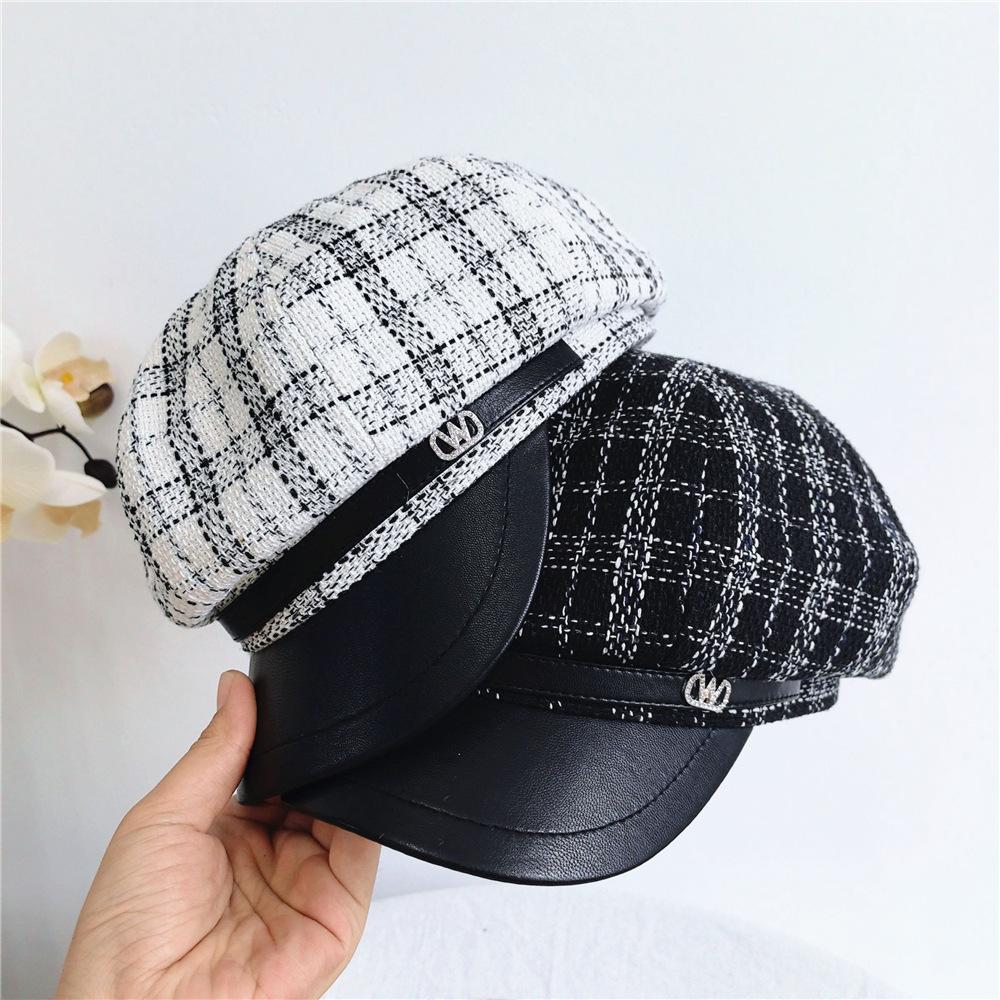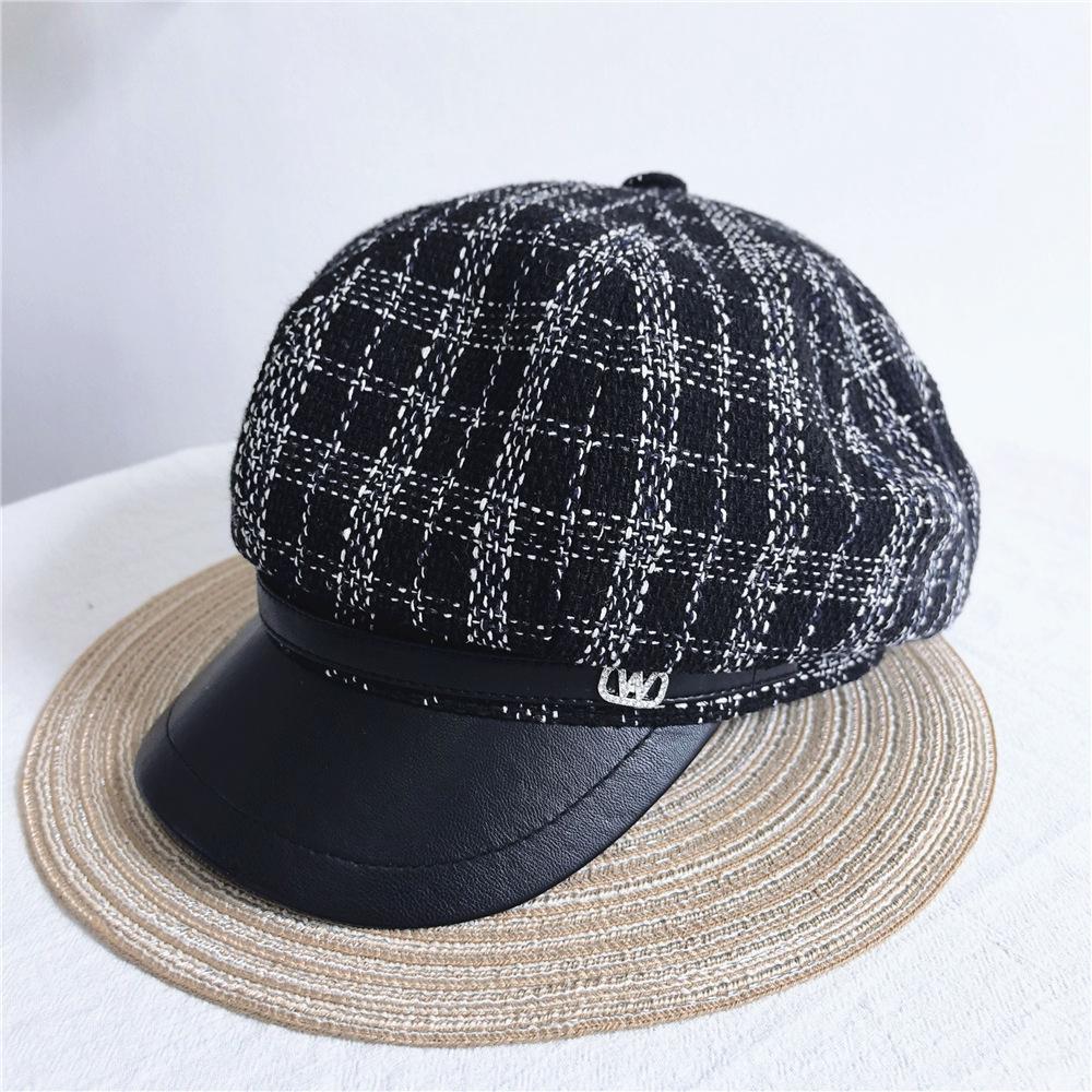 Boina elegante estilo Chanel para mujer, primavera y otoño, estilo japonés, retro, a cuadros, con lengüeta de pato, gorra octogonal, gorra británica de vendedor de periódicos para todo tipo de partidos.