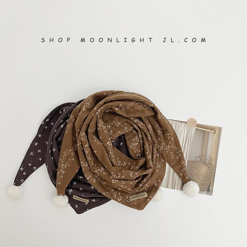 Brown pastoral small floral triangle scarf, Dark brown pastoral small floral triangle scarf, Purple pastoral s...