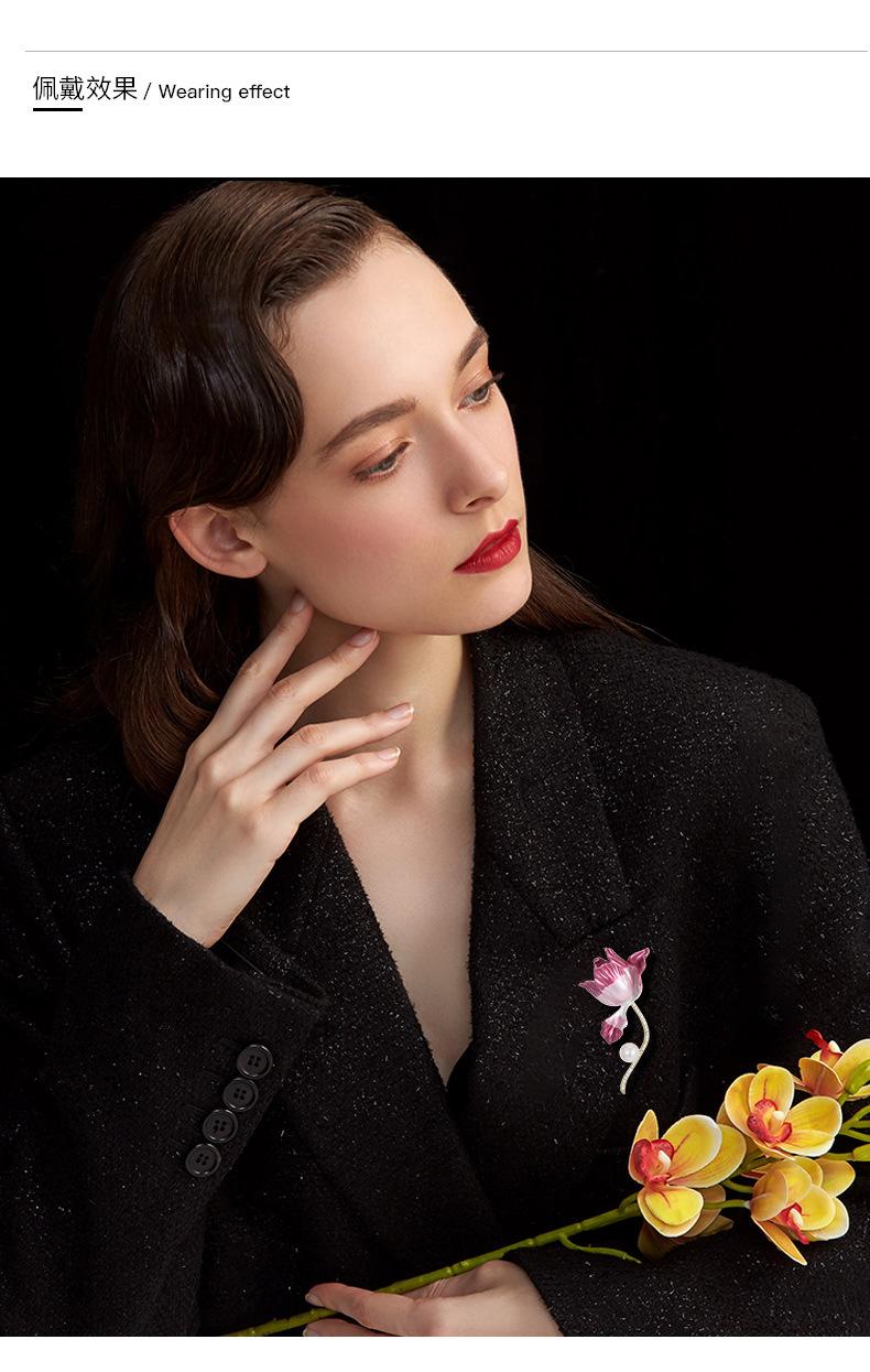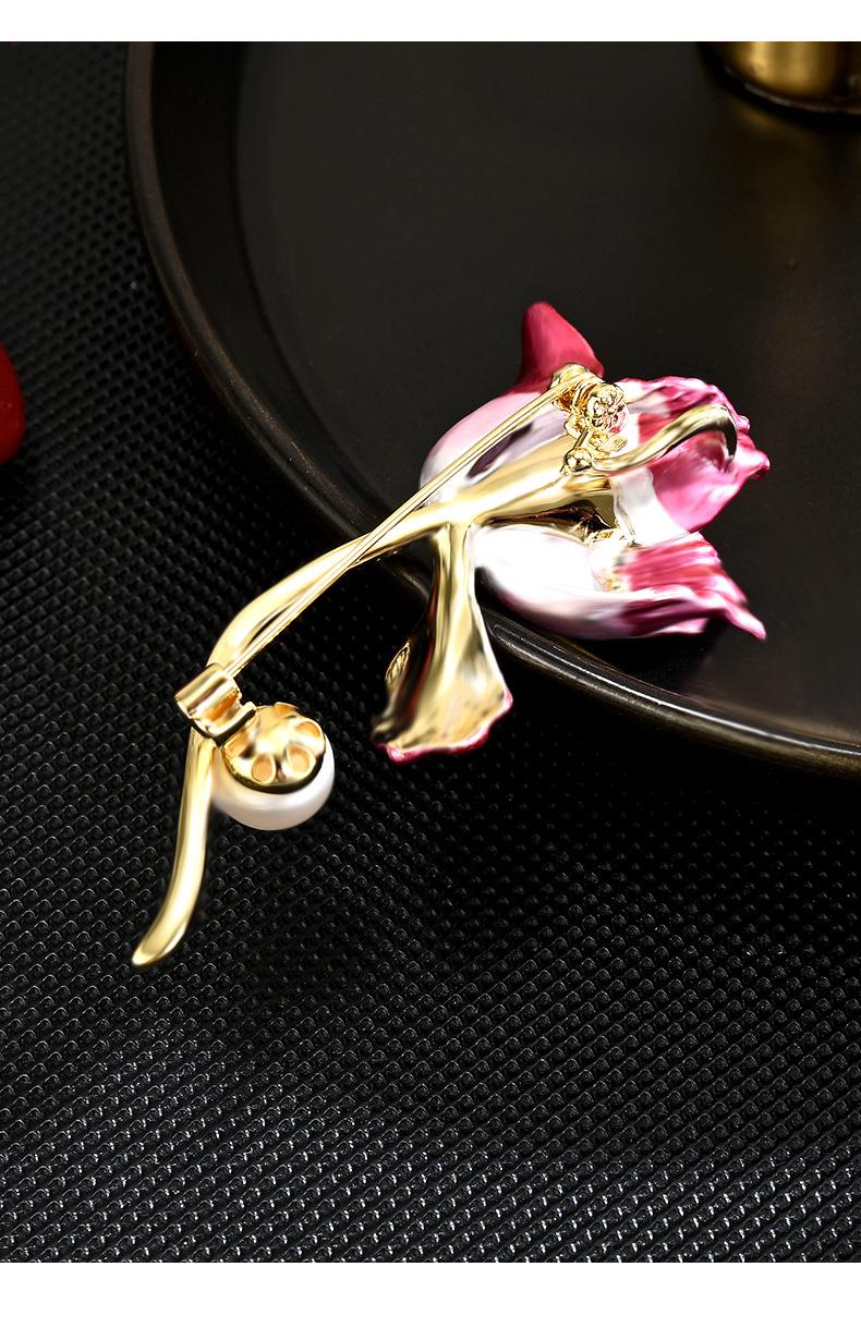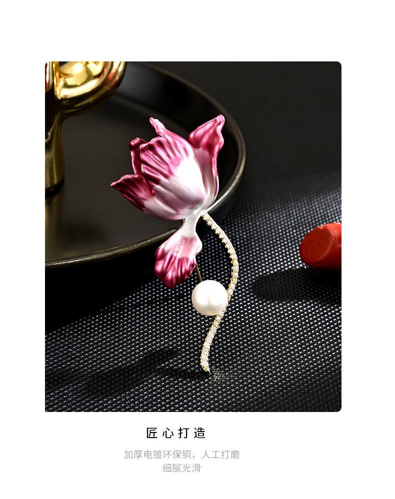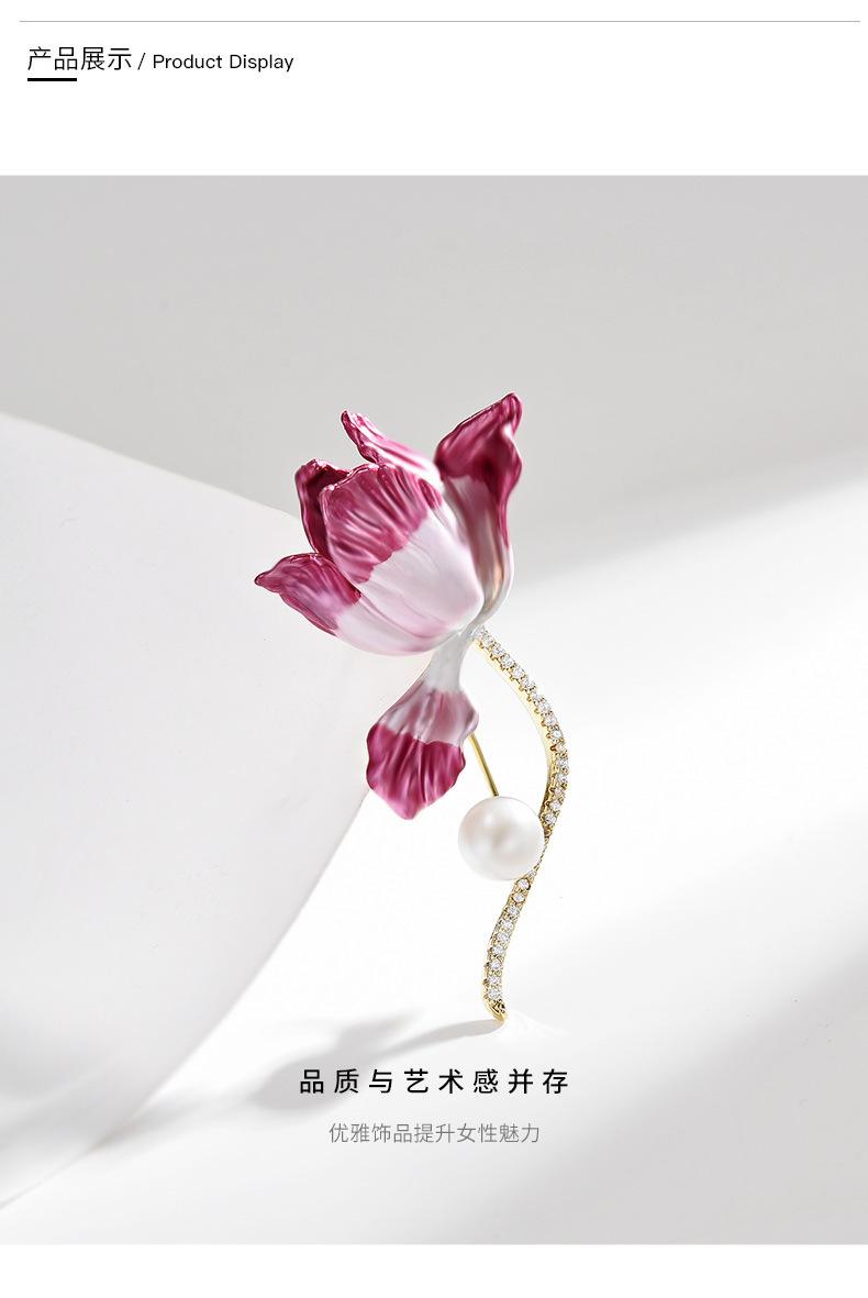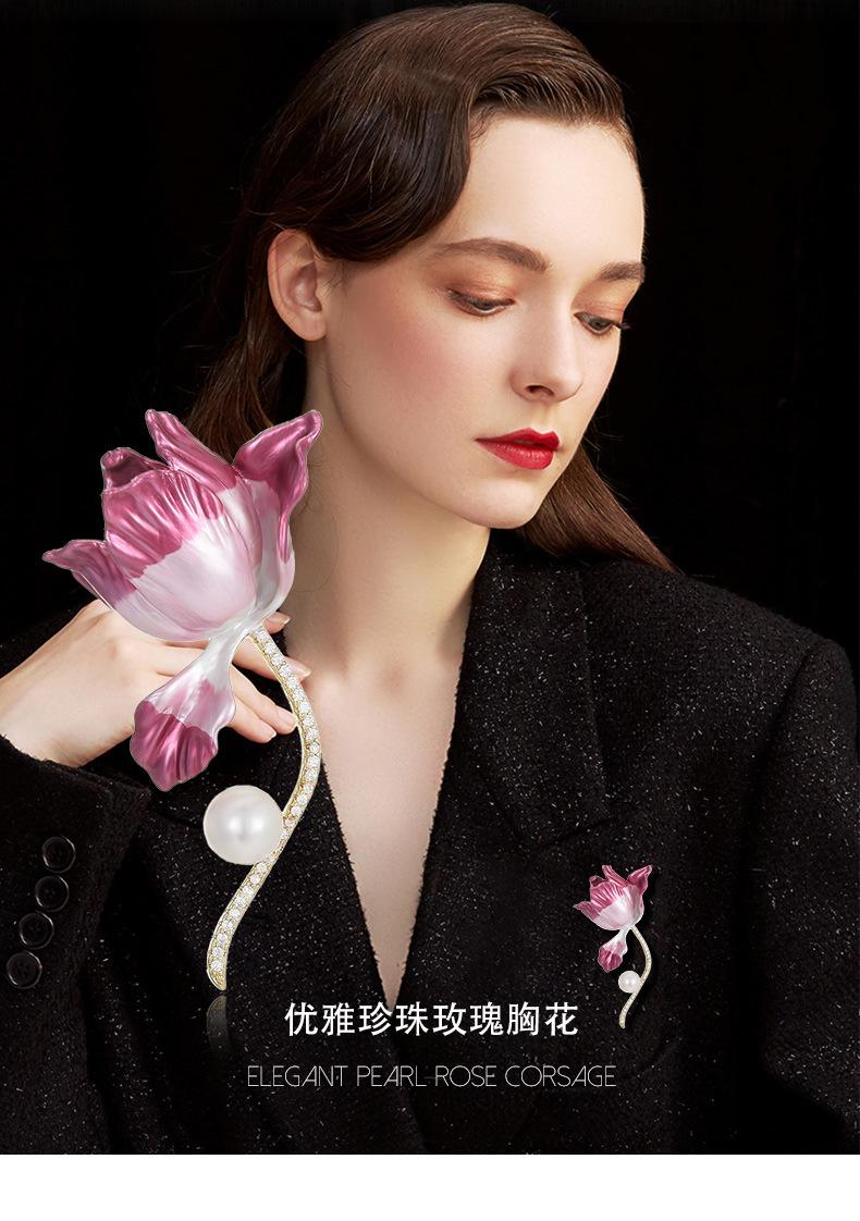 Broche de tulipán con perlas elegante de alta gama de estilo coreano para mujer, con flor en degradado rosa, accesorio tipo prendedor.