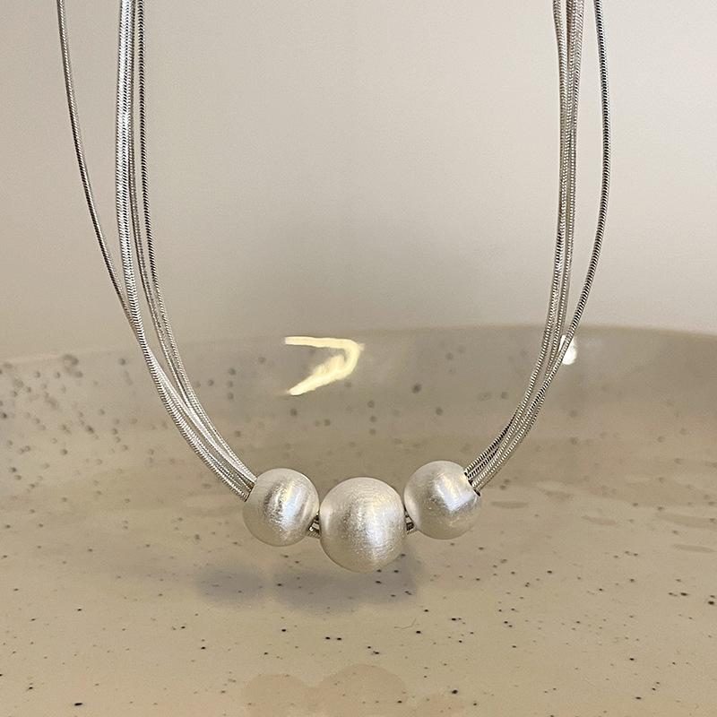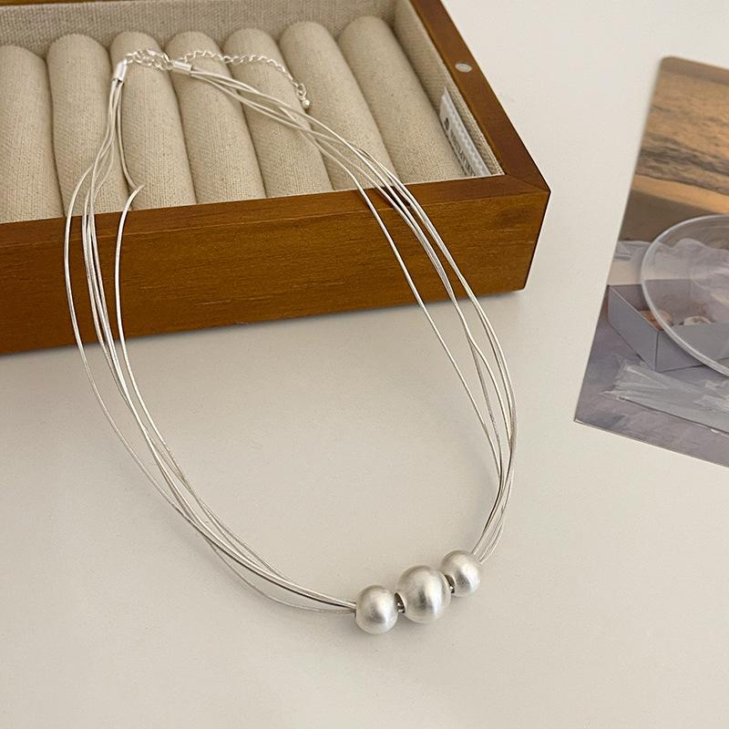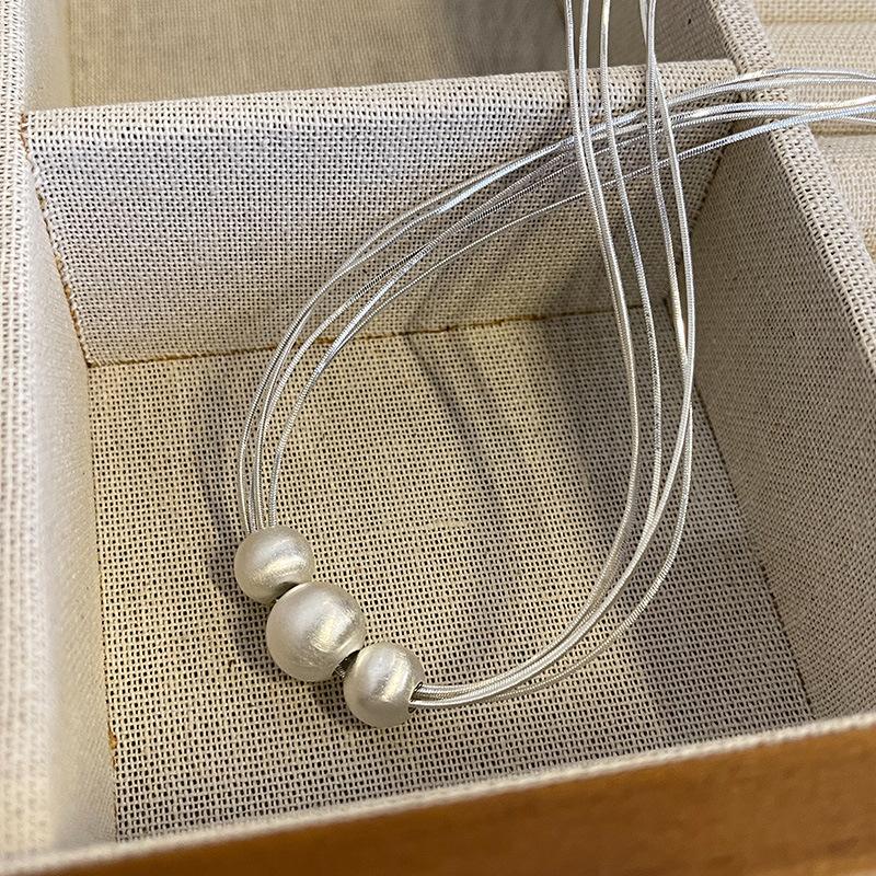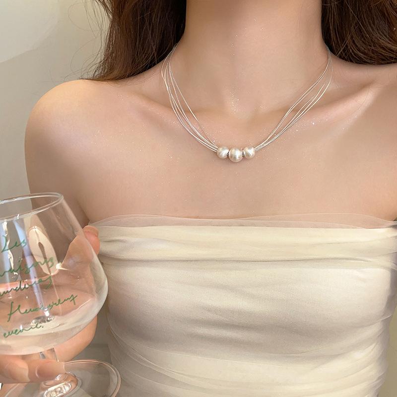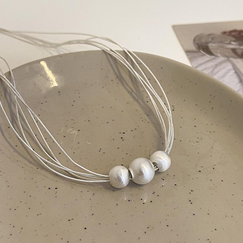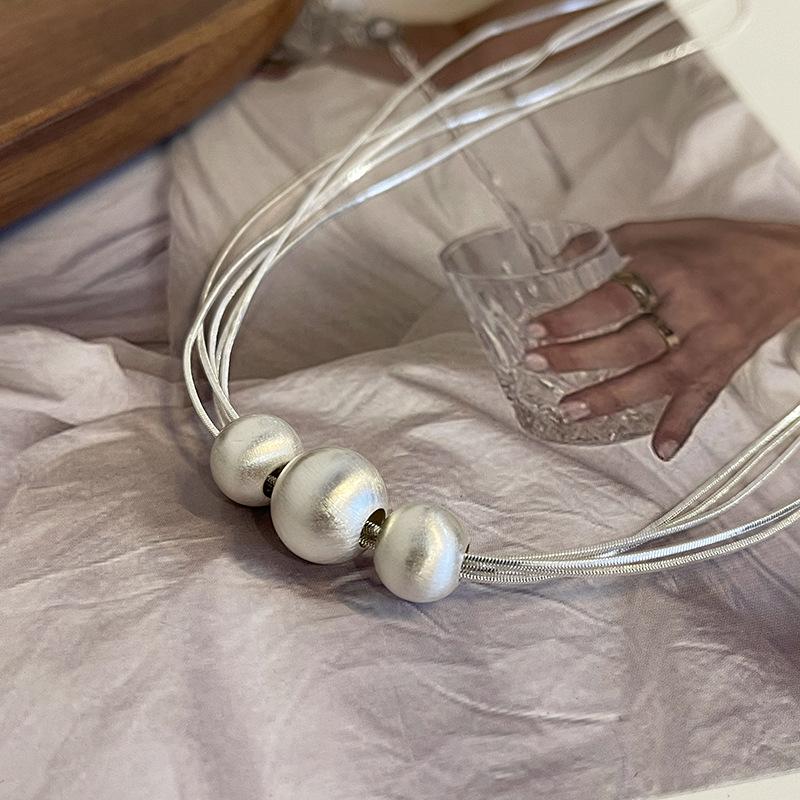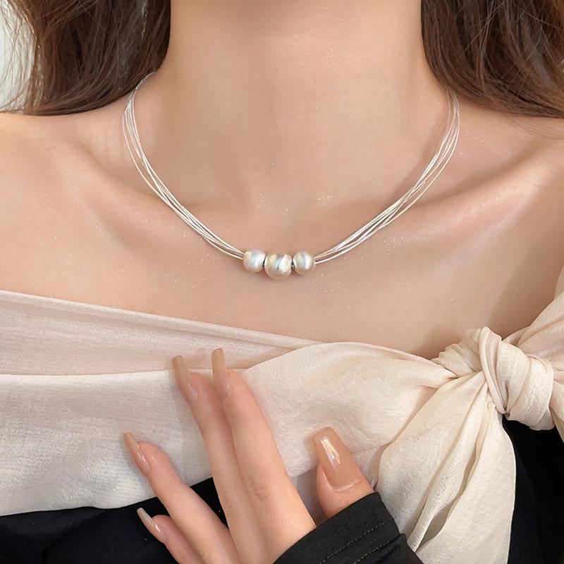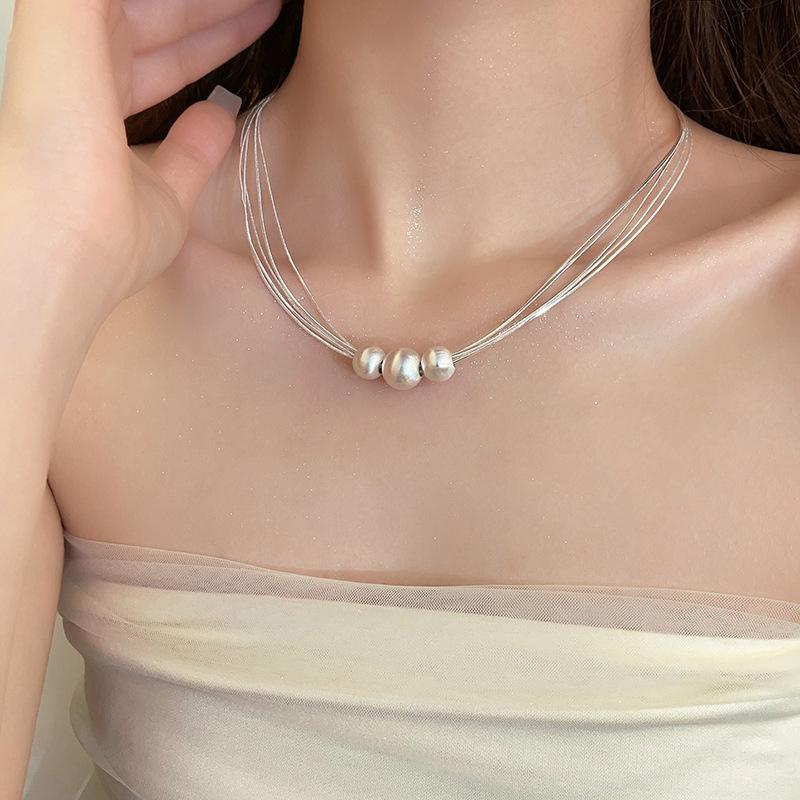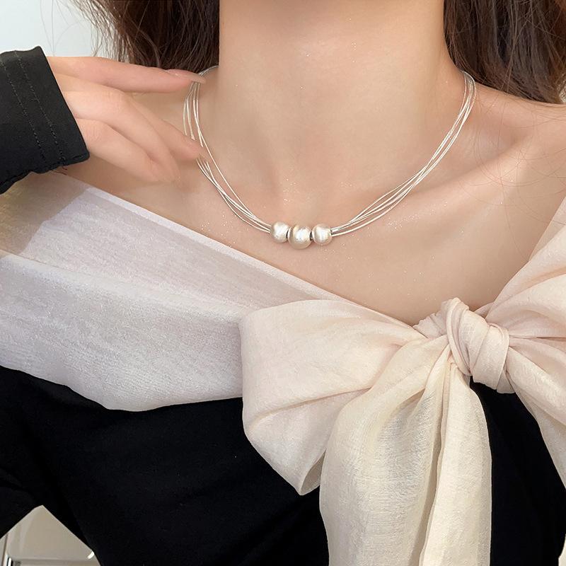 Collar de Perlas Multicapa Cepillado Diseño Nicho Lujo Ligero Cadena Clavicular Sencillo Elegante Moda Collar Versátil