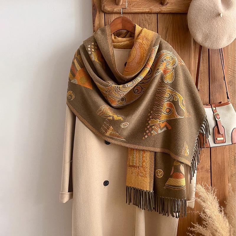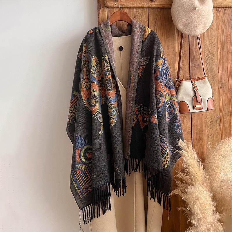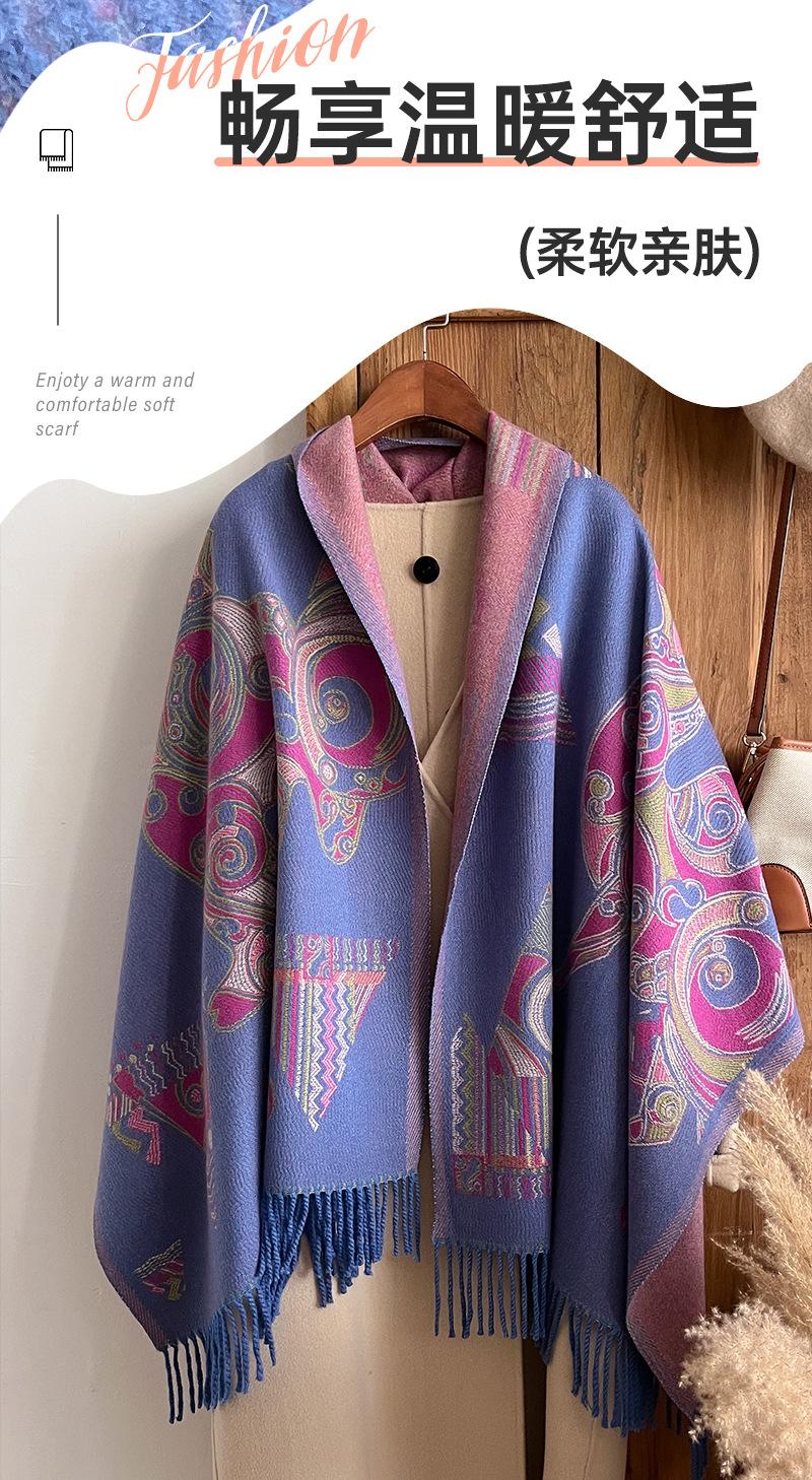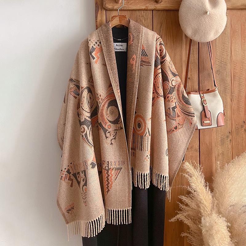 Bufanda de Cachemira Explosiones de Otoño e Invierno Chal Capa Estilo Étnico para Mujer Engrosada Xinjiang Cálida Borla Bufanda para Mujer