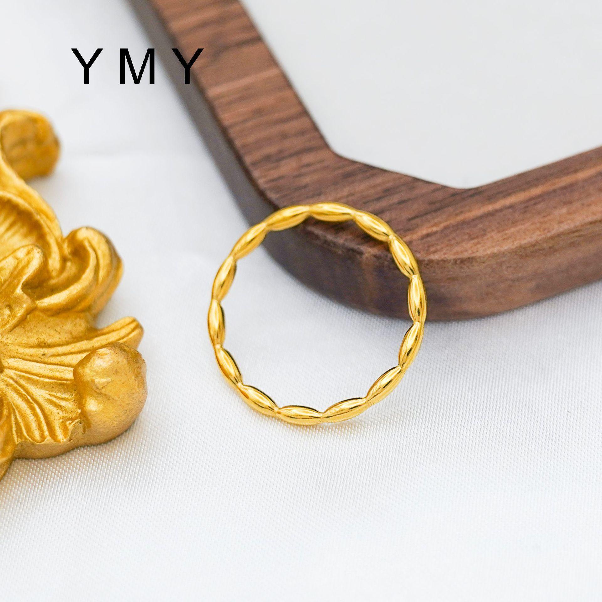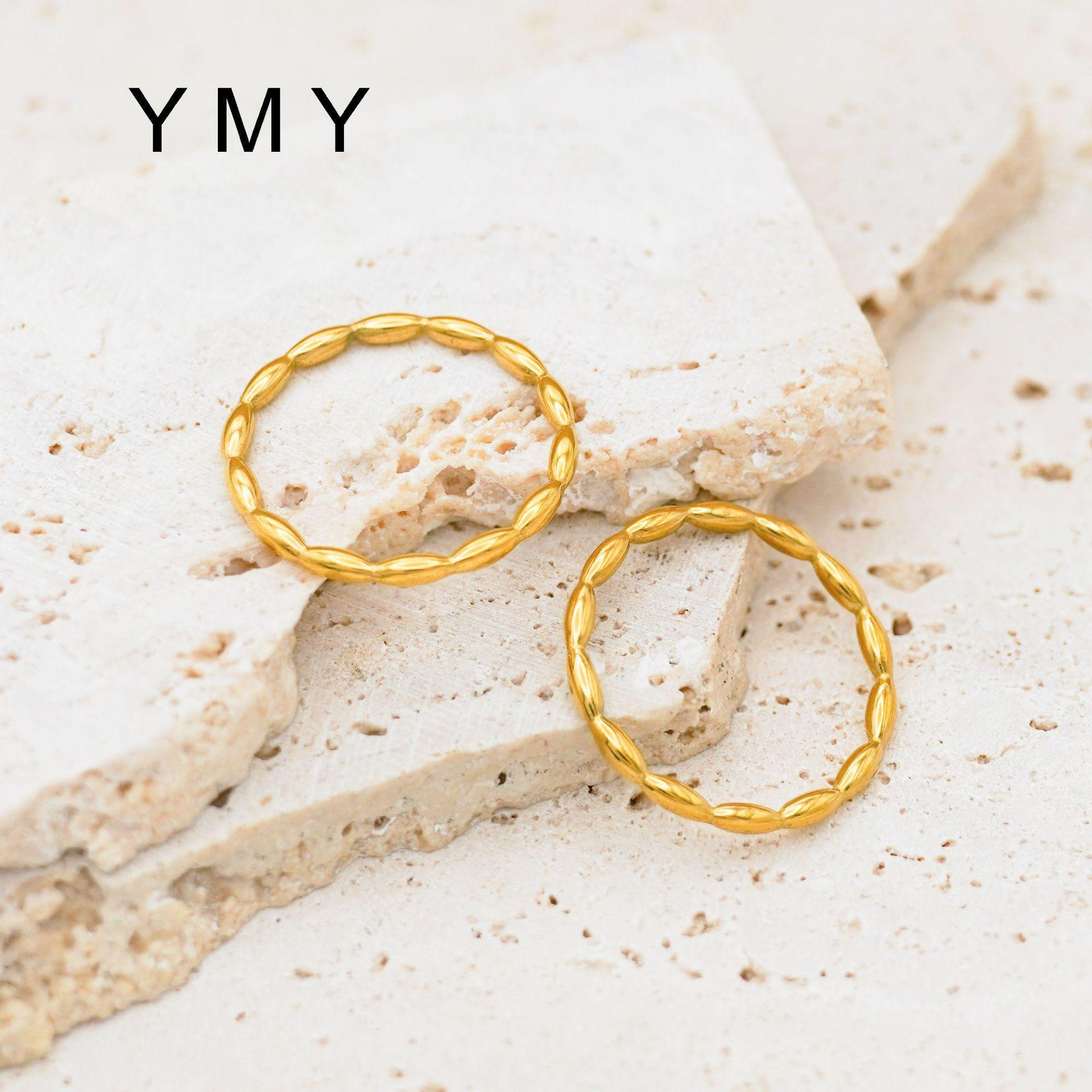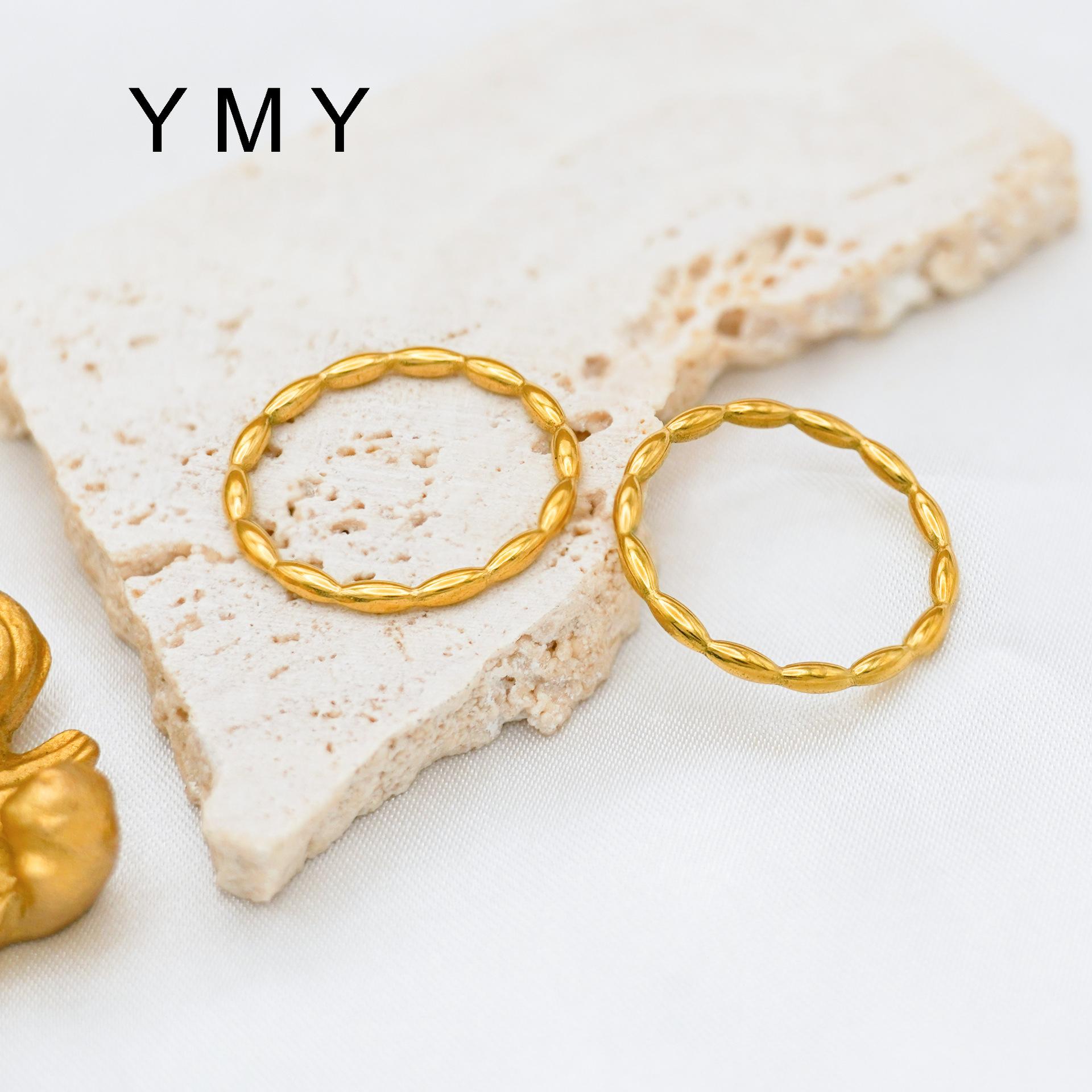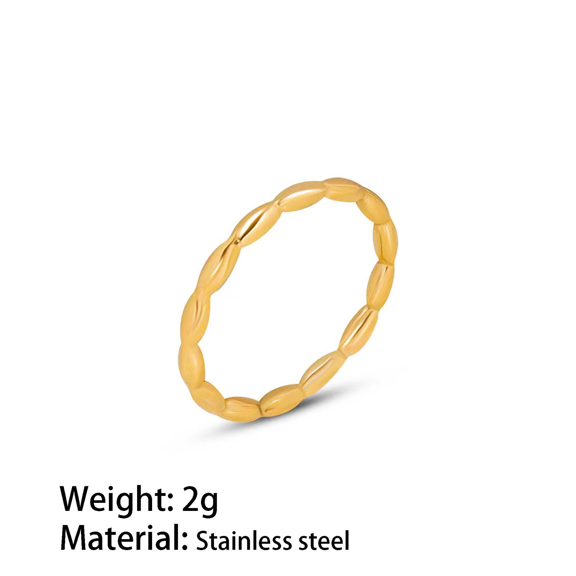 Anillo de Moda Simple con Cuentas de Arroz Estilo Ins Europeo y Americano Acero Titanio Chapado en Oro 18K Geométrico Elegante Diseño Nicho
