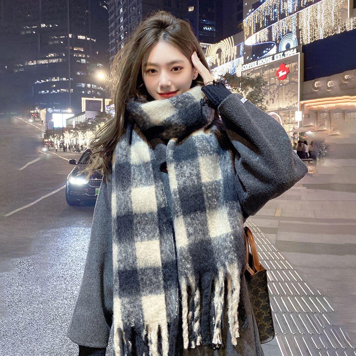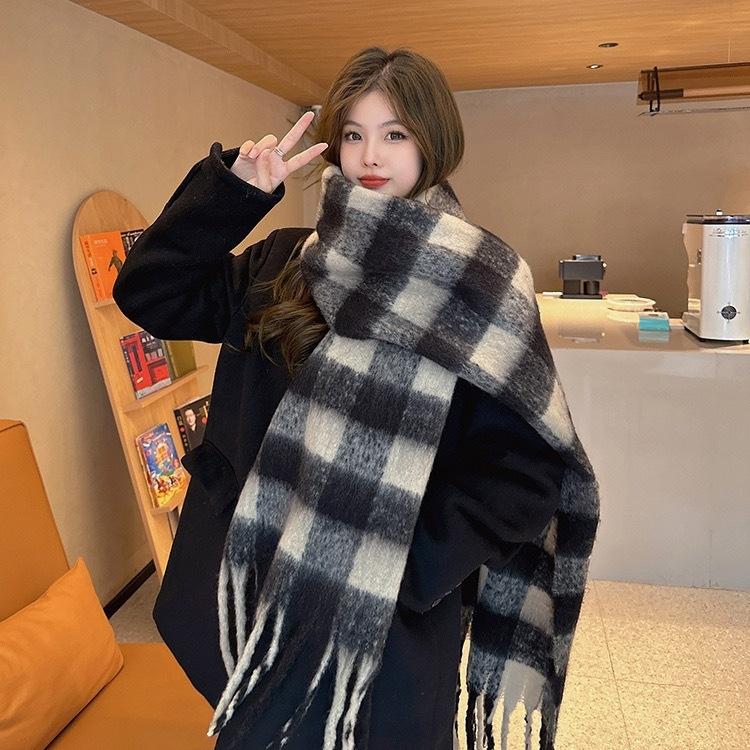 Bufanda de invierno de alta gama para mujer, estilo 2024, nuevo estilo, Mauhair, cuadros blancos y negros, estilo coreano, cálida y gruesa, para hombre.