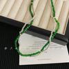 Collar de doble capa con cuentas verdes retro de estilo lujoso y ligero, diseño de nicho para mujer, estilo exquisito, cadena de clavícula de moda, joyería al por mayor