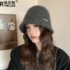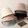 Sombrero de pescador de lana de otoño e invierno, sombrero de pescador de punto vintage, color sólido, sencillo, para mujer, estilo coreano, de moda japonesa.