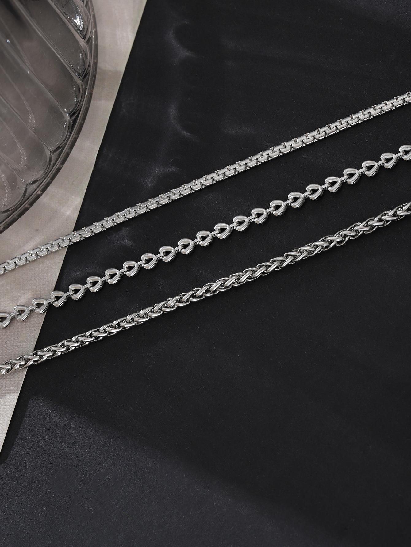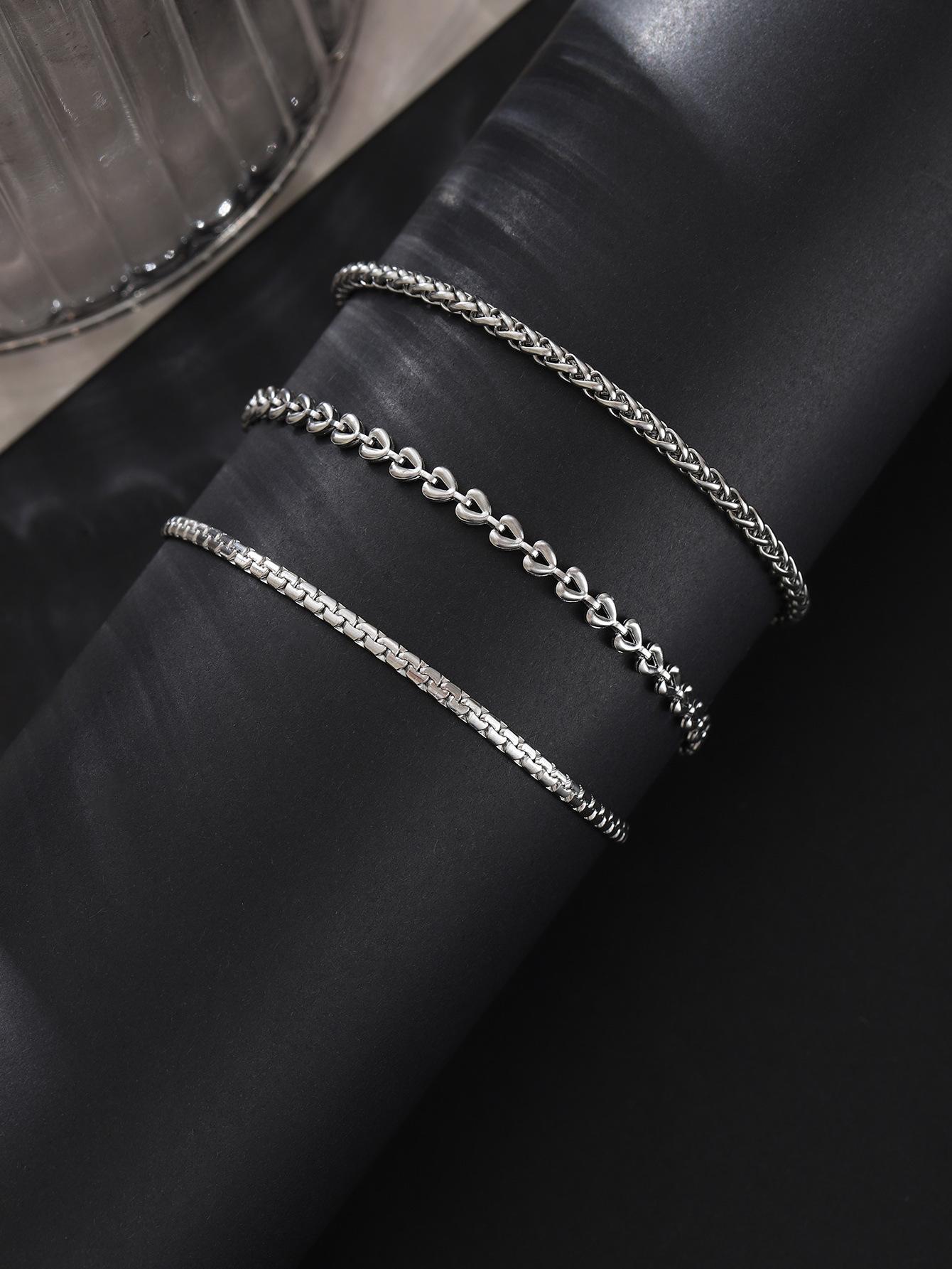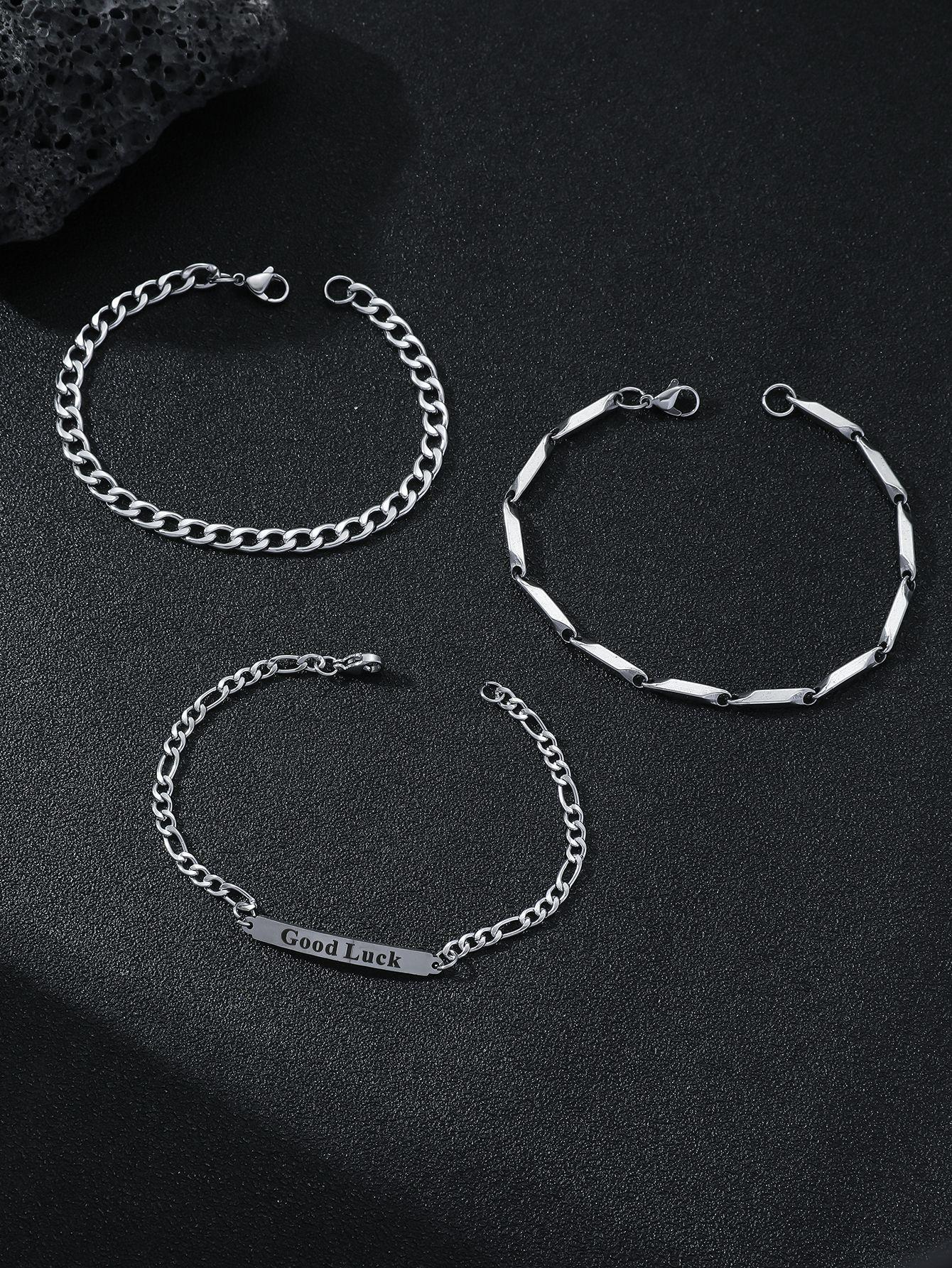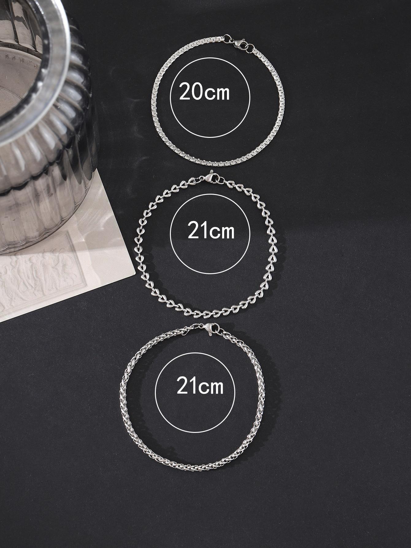 nombre del producto:Pulsera de cuentas planas cuadradas de color acero con corazón conectado quilla, juego de tres piezas
