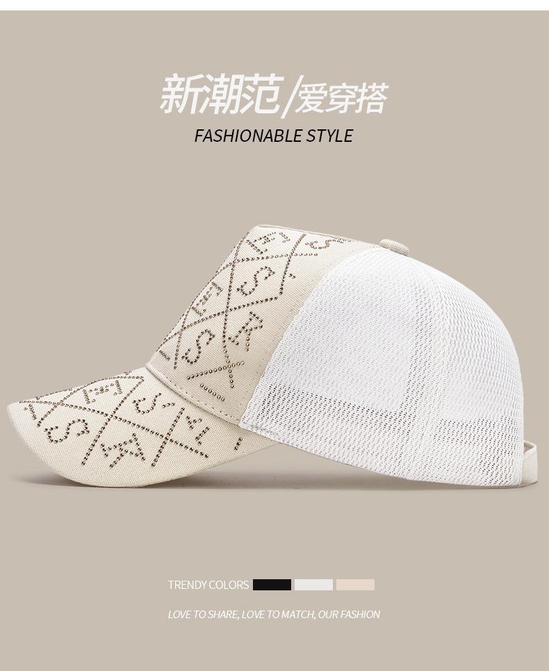 Gorra de Béisbol de Pedrería de Moda 2023 para Mujer Ins Todo Combinable Gorra de Protección Solar Primavera y Verano Sombrero de Sol Urbano para Mujer