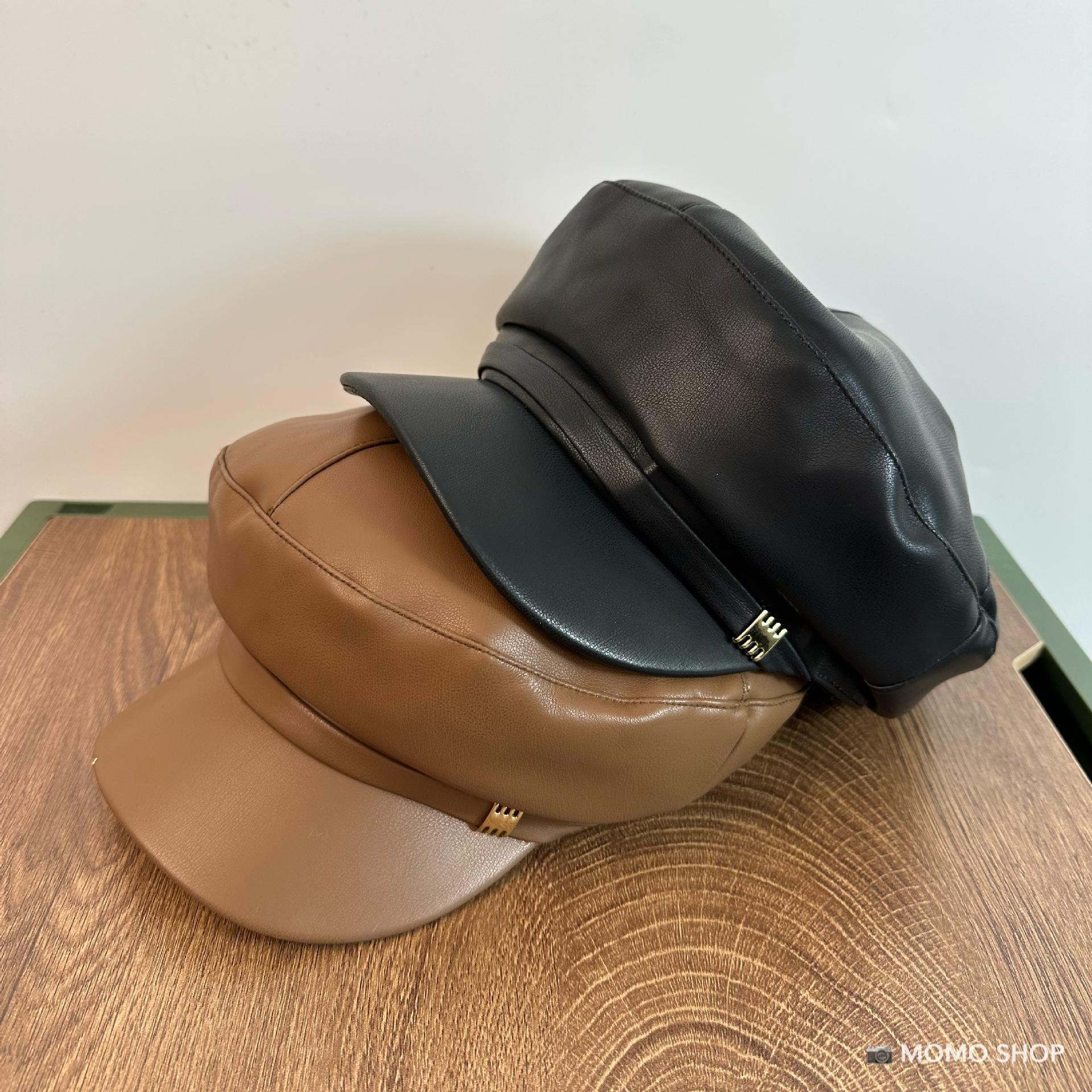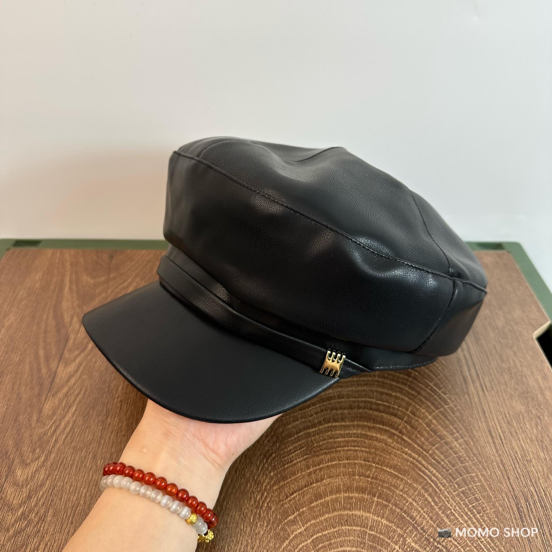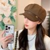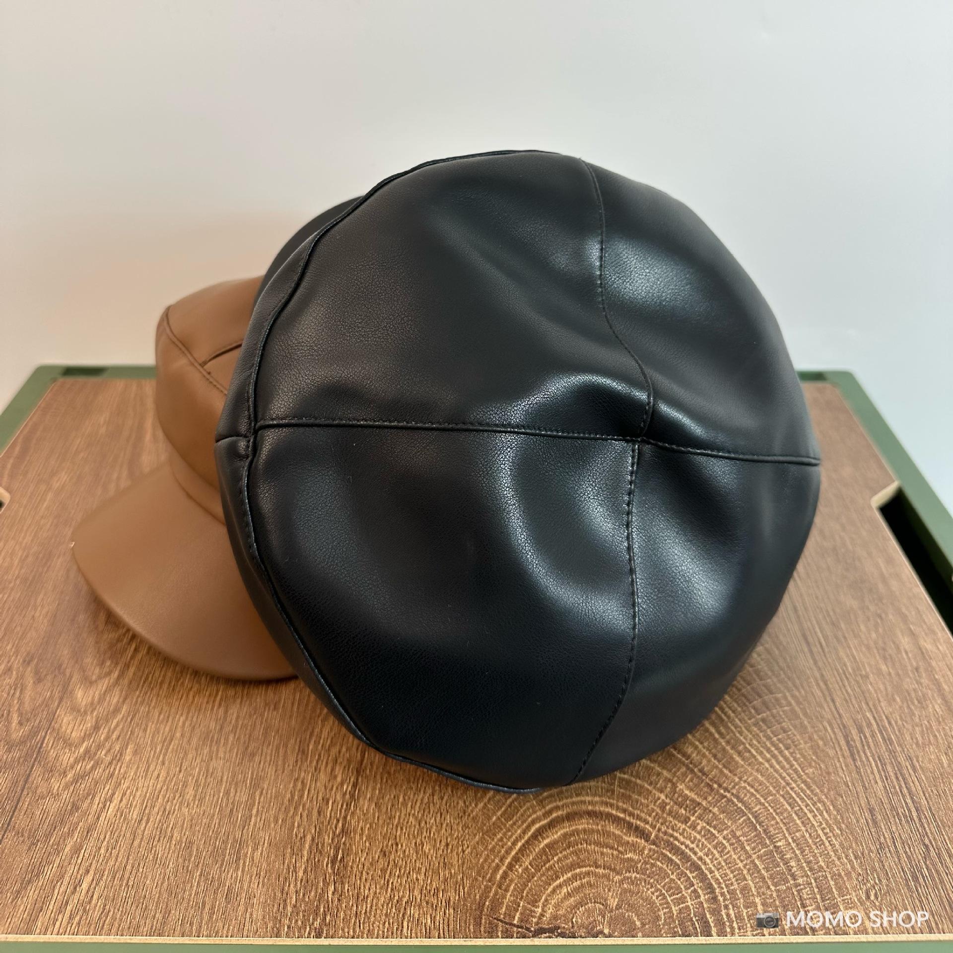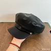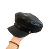 Gorra octogonal negra de cuero sintético retro británico para niños, de alta calidad, con lengüeta de pato y pintura Bailey, con cara mostrada, gorra de vendedor de periódicos.