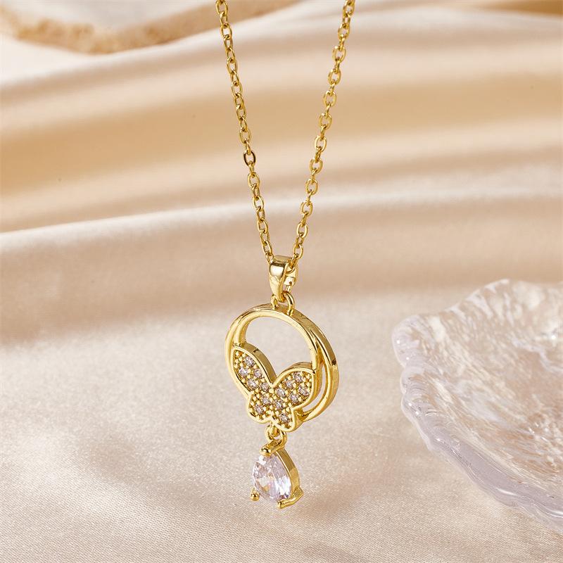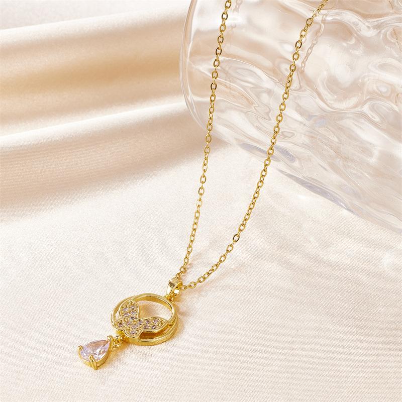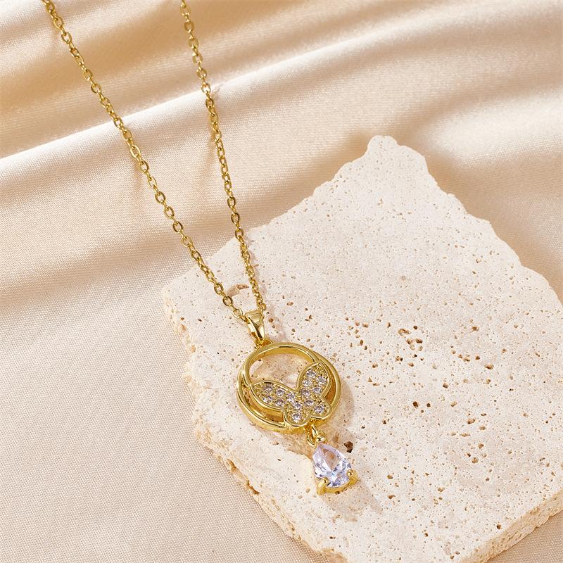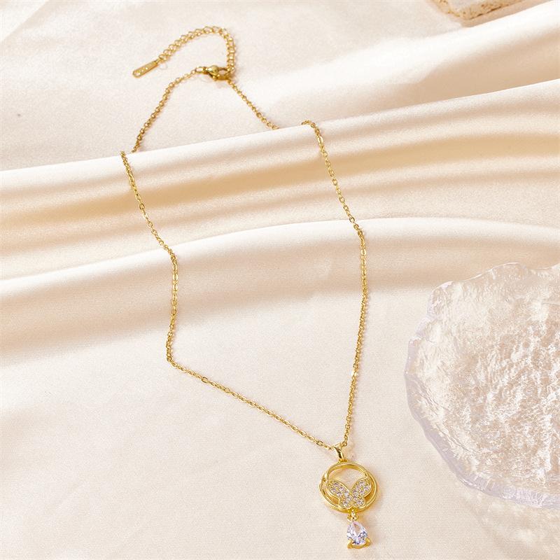 Nuevo collar con colgante de mariposa, borla y diamantes, de acero inoxidable y oro de 18 quilates, con circonitas. Venta al por mayor transfronteriza.