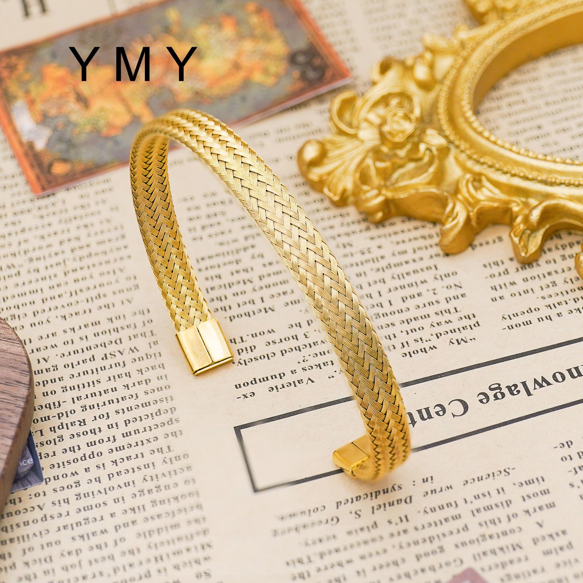 Compra Pulsera abierta tejida de acero de titanio en forma de C transfronteriza, joyería de moda Joker con personalidad de oro de 18 quilates chapada en viento europeo y americano al por mayor al por mayor en Joom.pro
