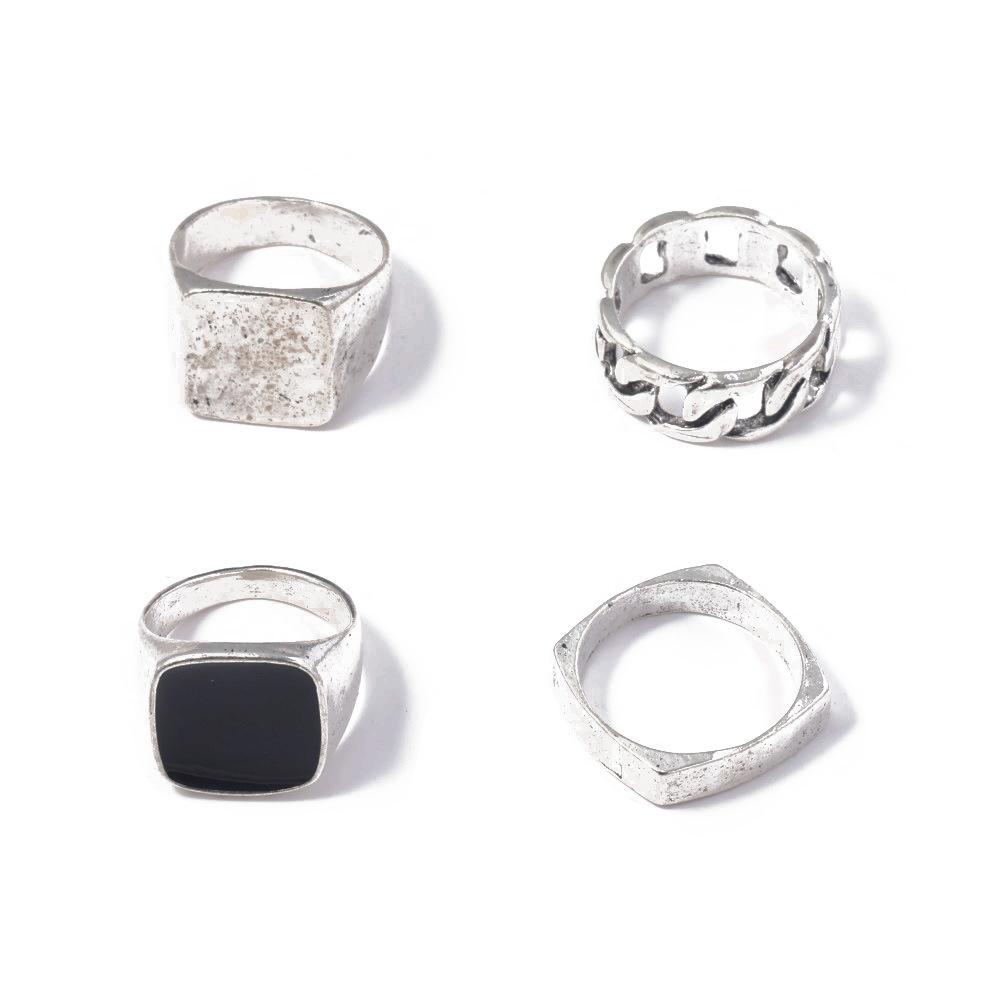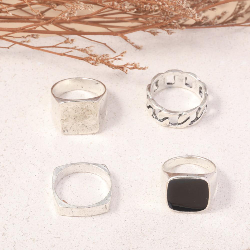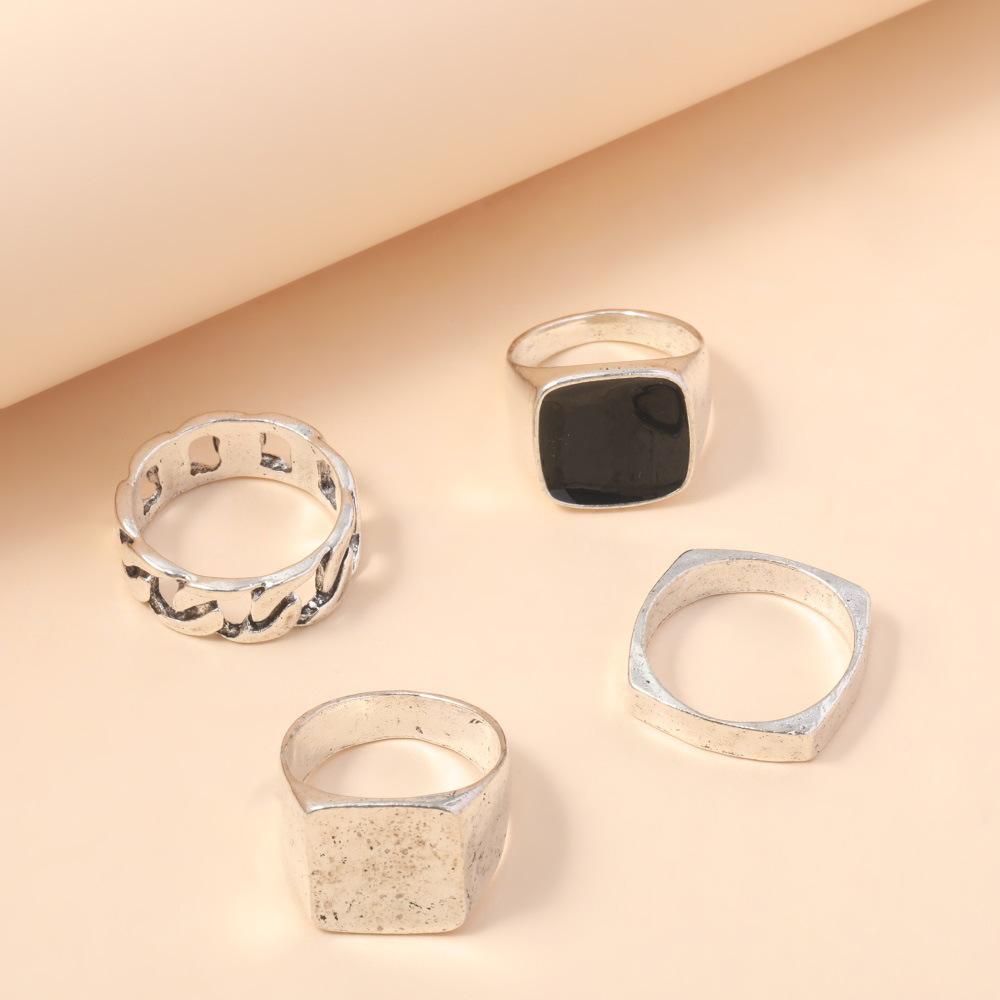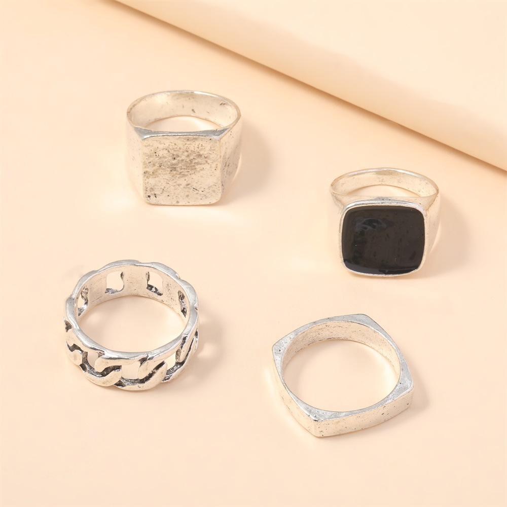 Anillo de personalidad nuevo europeo y americano moda simple cadena de aceite juego de 4 piezas de anillo grande joyería venta directa de fábrica