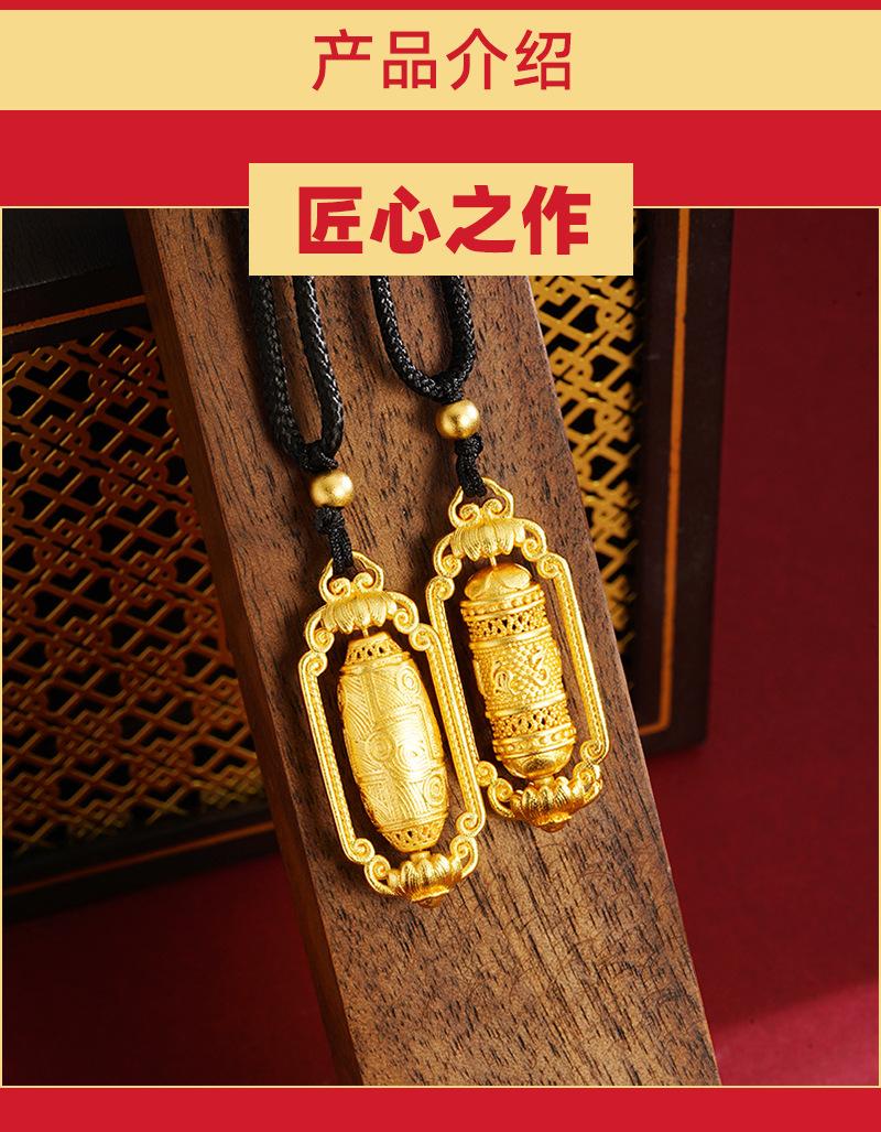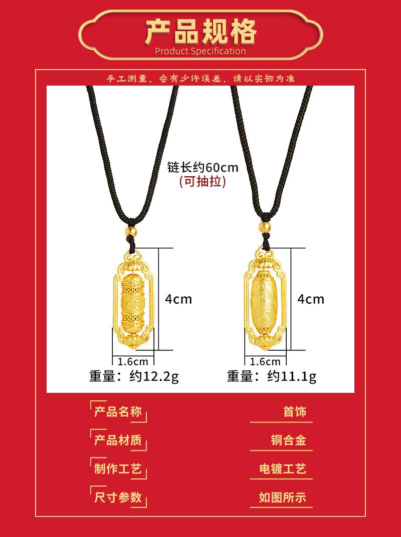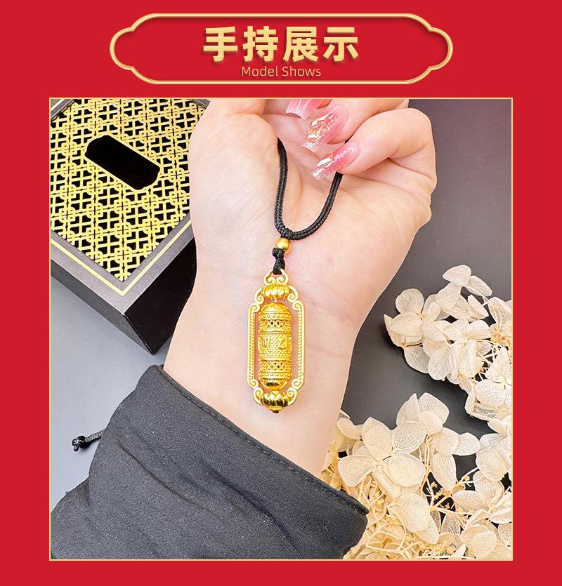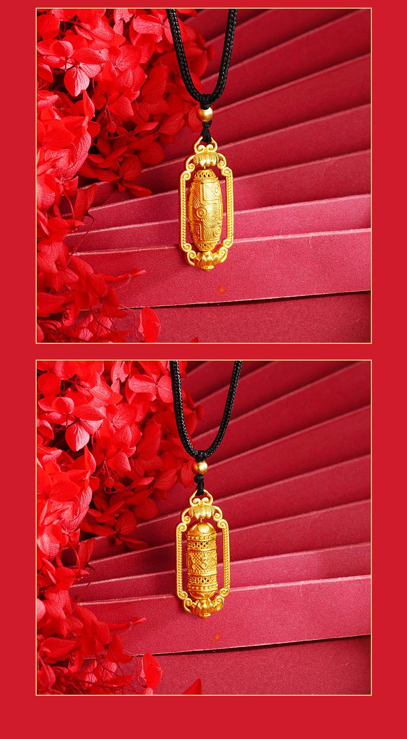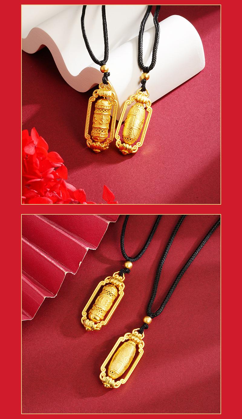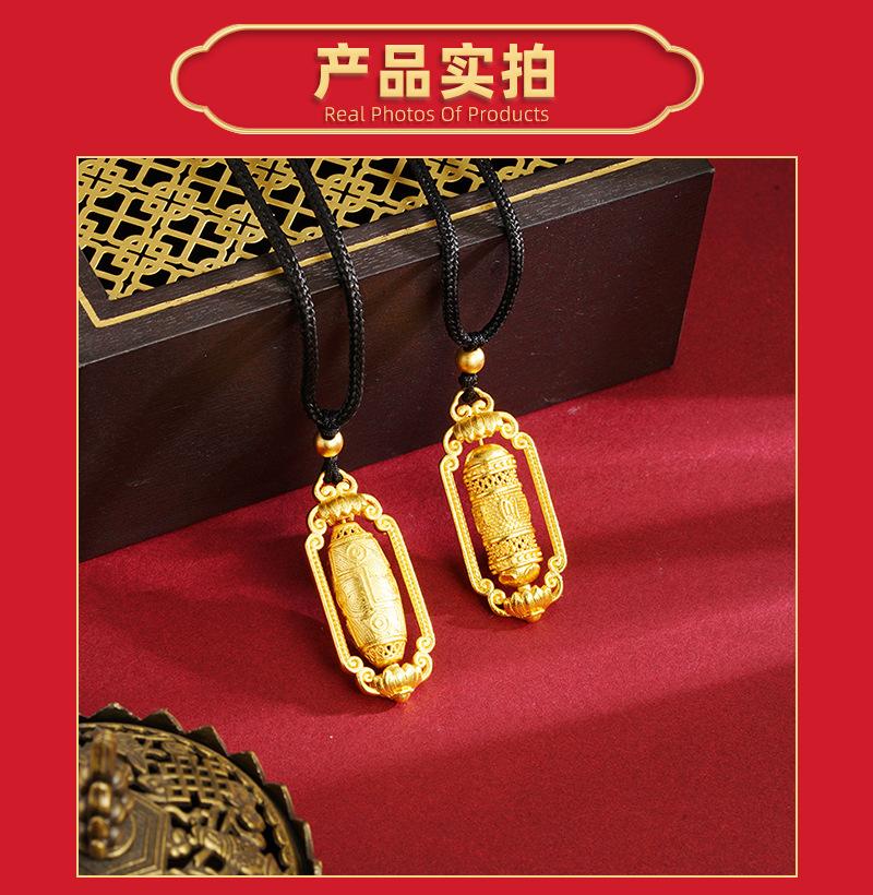 Collar de oro de herencia antigua con seis palabras, mantra, tubo de oración, collar de cuerda negra, colgante, todo a juego, estilo chino, suministro directo de fábrica
