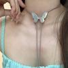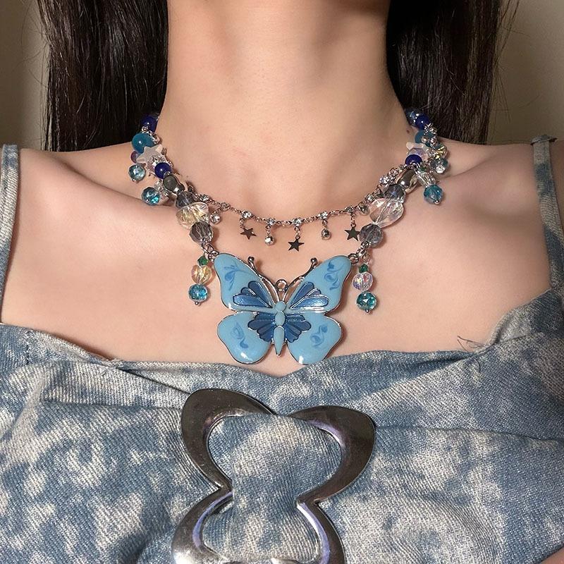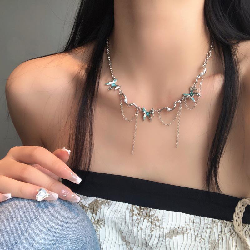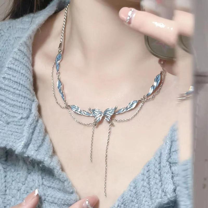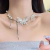 Pearl crystal bow necklace, Maillard Butterfly Heavy Industry Necklace, Glacier Butterfly Tassel Necklace, blu...