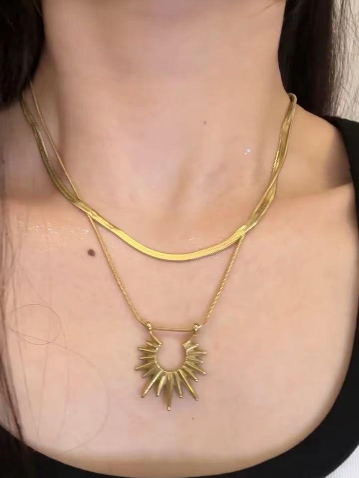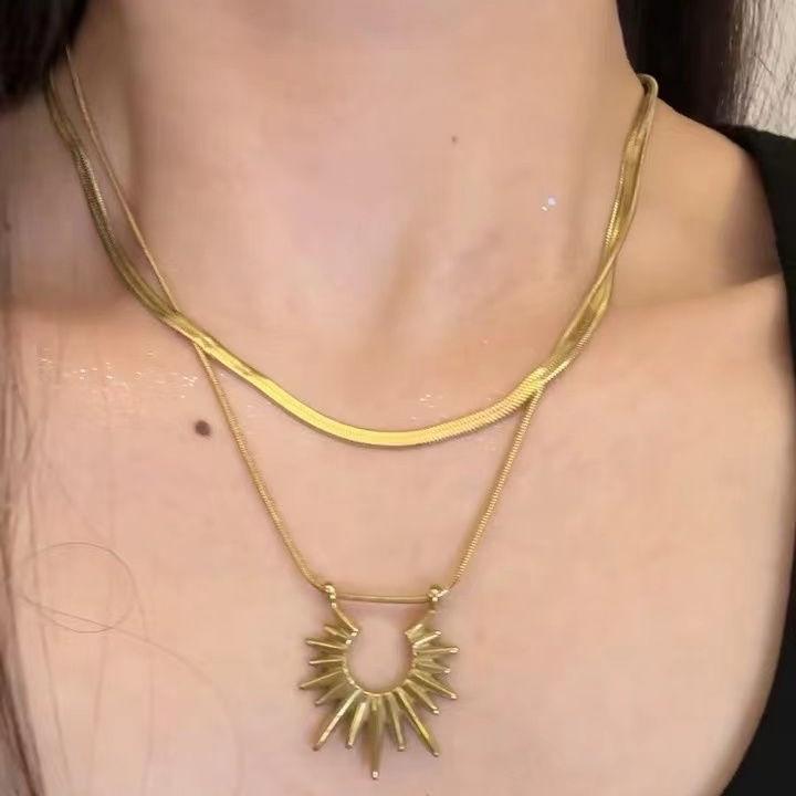 Collar Helios de Acero de Titanio de Doble Capa para Mujer de Alta Gama de Lujo Ligero Estilo Frío Combinable Apilable Cadena Clavicular Joyería para Pareja Novia