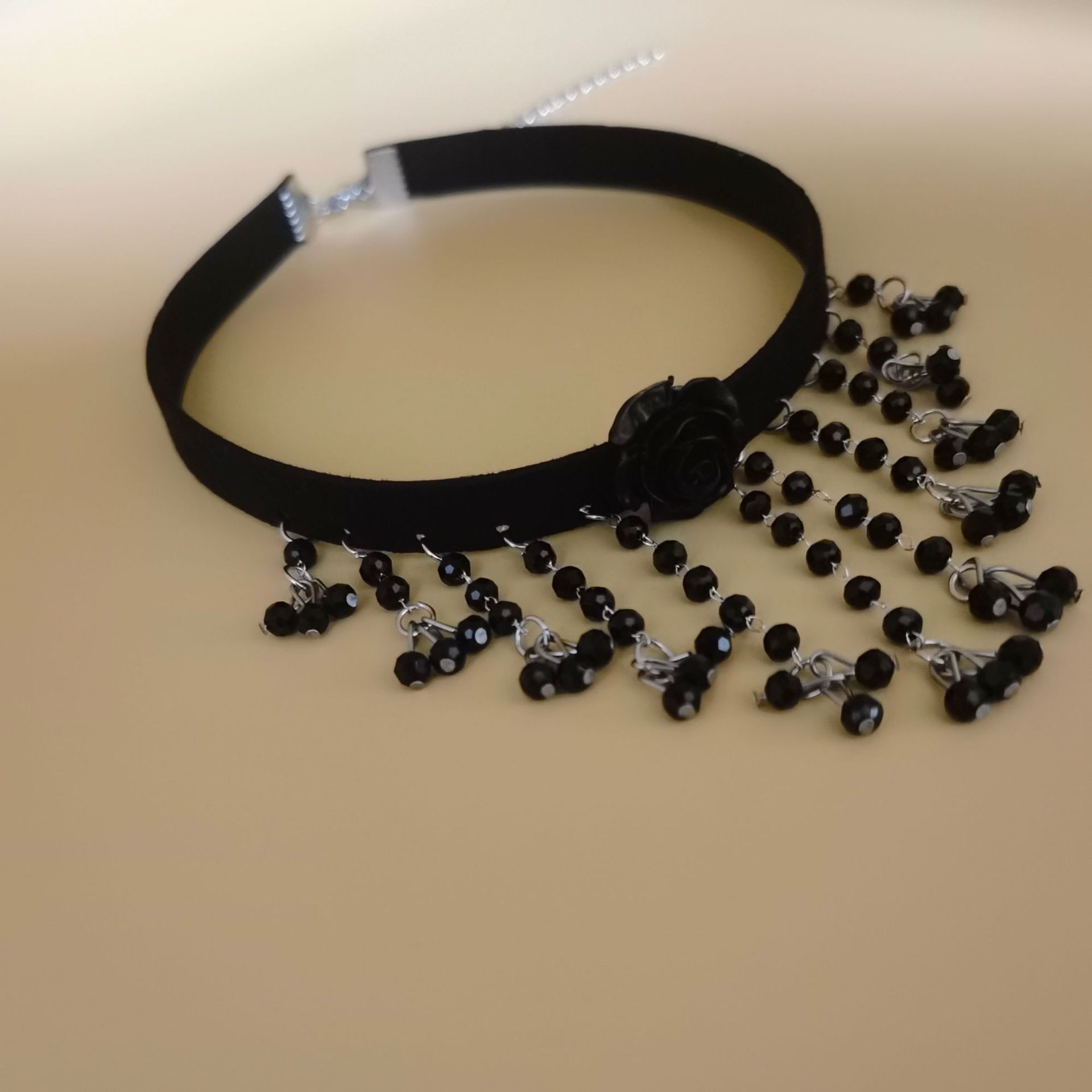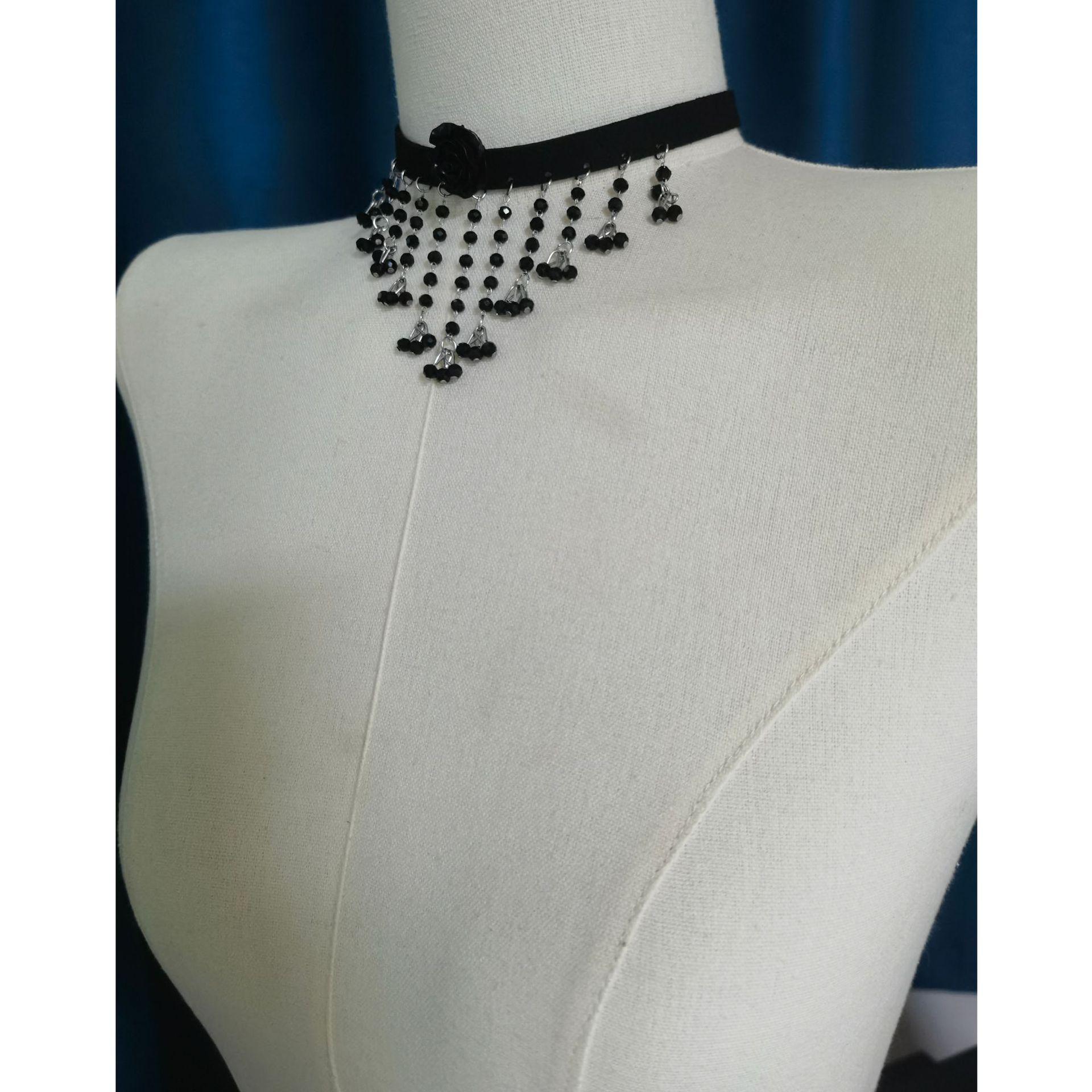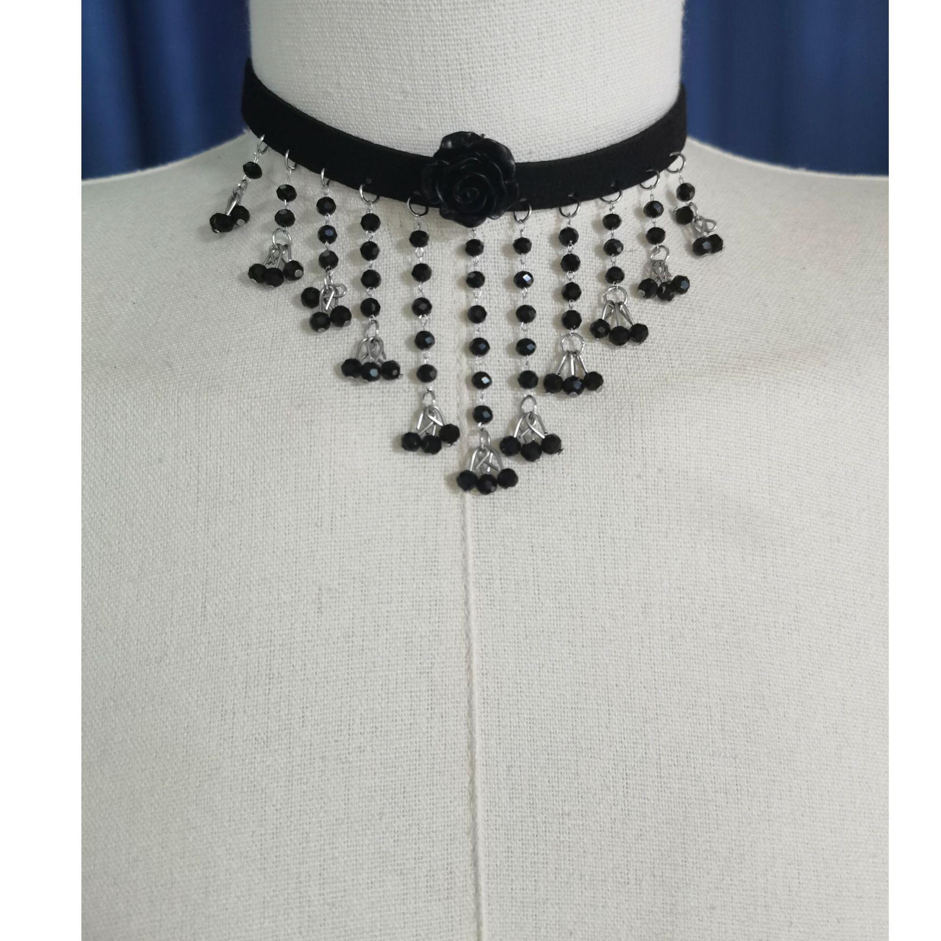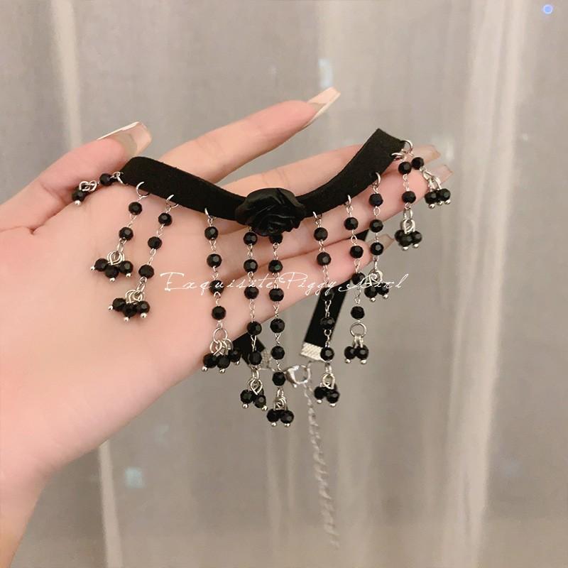 Collar con borlas de rosas, elegante collar vintage de cadena de clavícula negra para mujer, ligero, de lujo, de alta gama, tipo gargantilla.