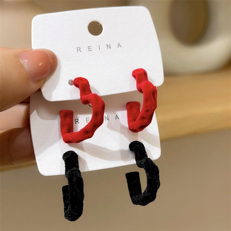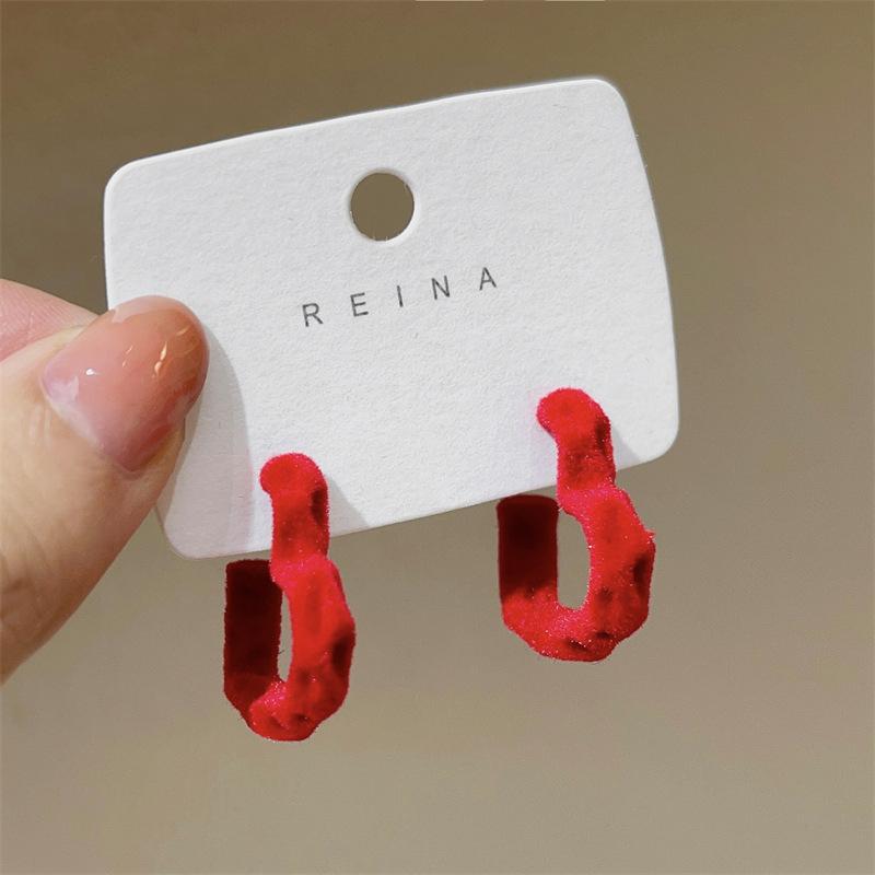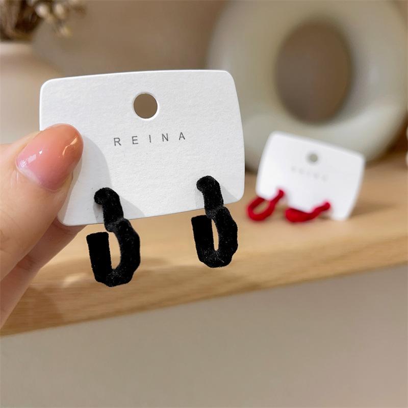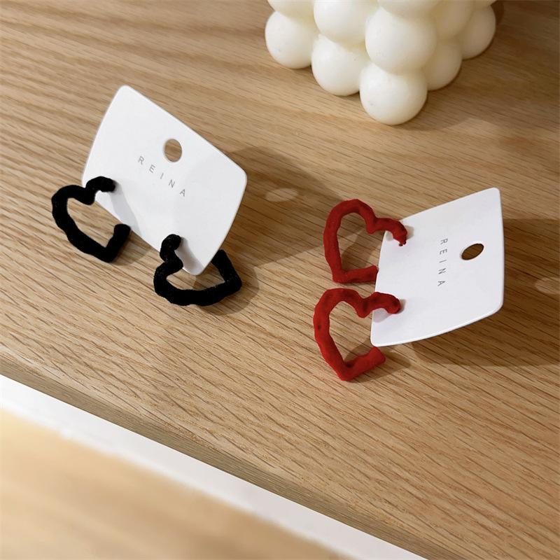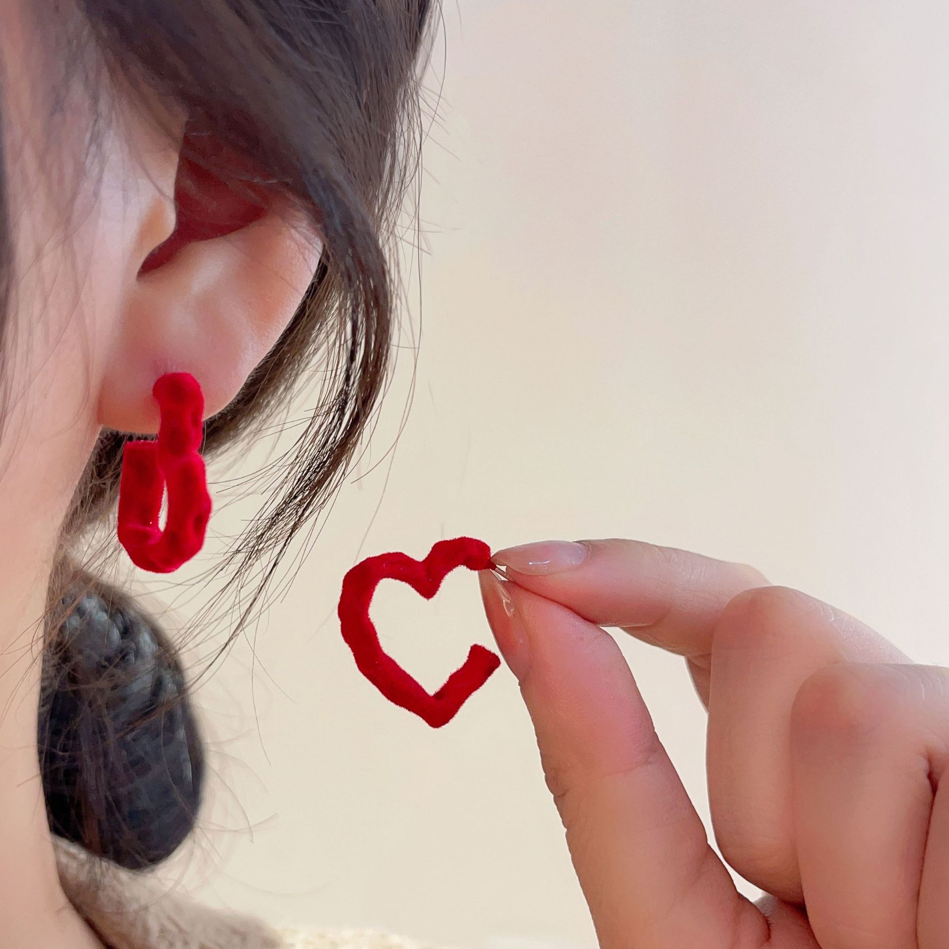 Pendientes de plata S925 con diseño de nicho coreano, con forma de corazón rojo y flocado, sencillos y combinables para mujer.