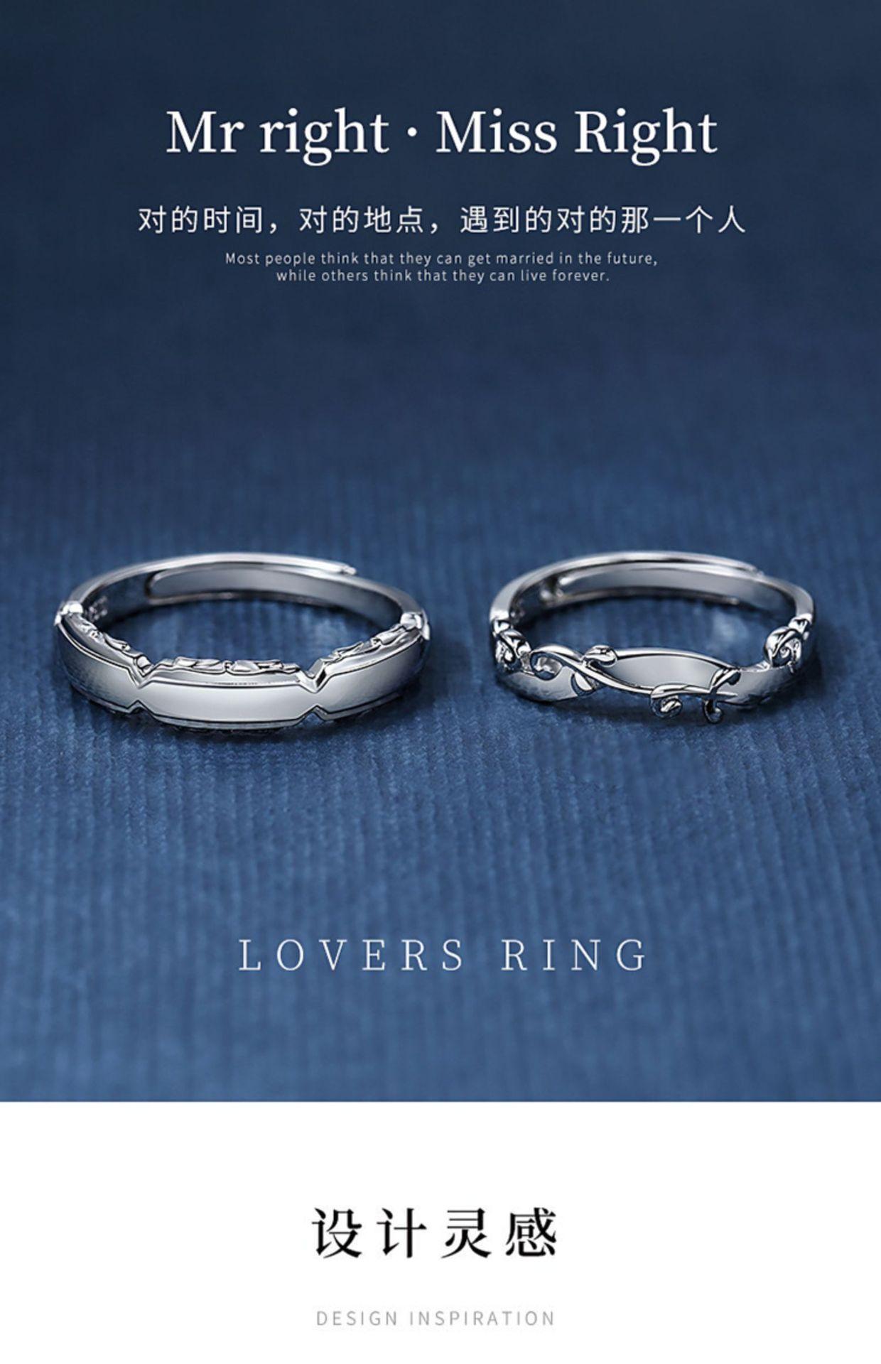 Anillo de Pareja Creativo y Personalizado de Plata de Ley S925 para Hombres y Mujeres, Anillo de Lujo Accesible de Nicho, Regalo Romántico para el Día de San Valentín