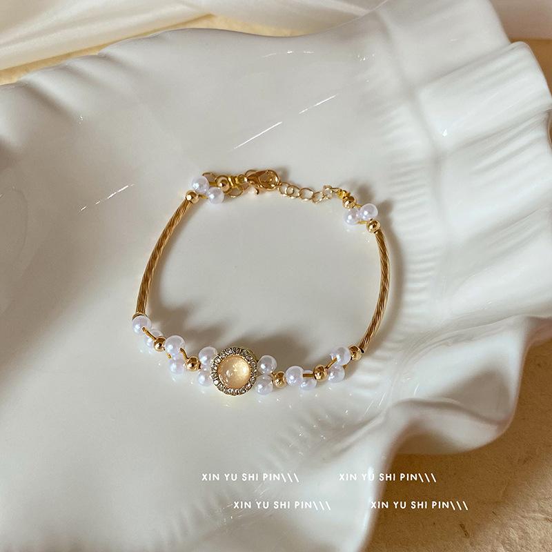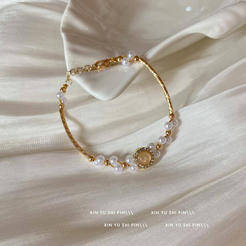 Pulsera de Perlas Dulces para Mujer 2024 Nueva Cristal Rosa Lujo Ligero Elegante Nicho de Alta Gama Pulsera para Novia