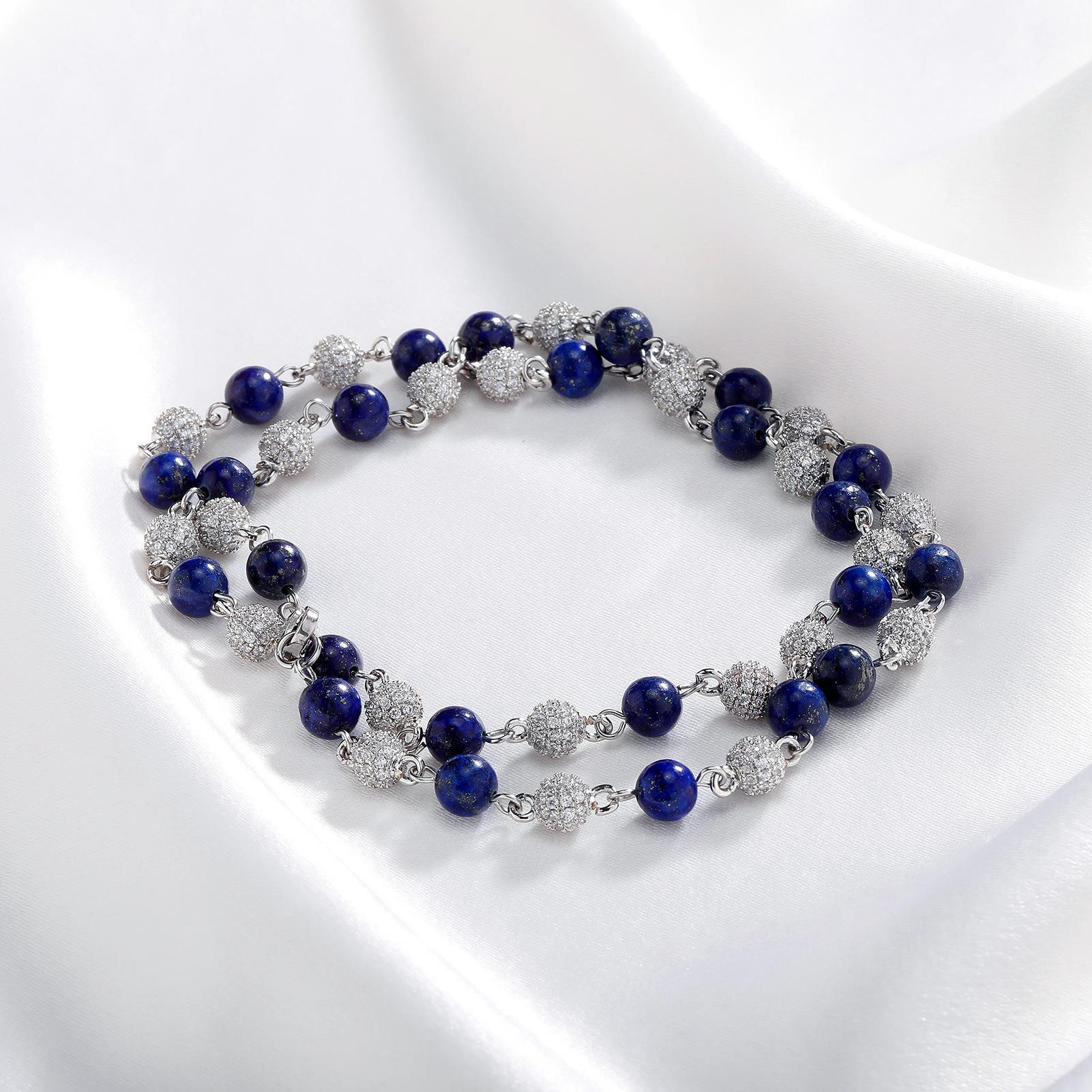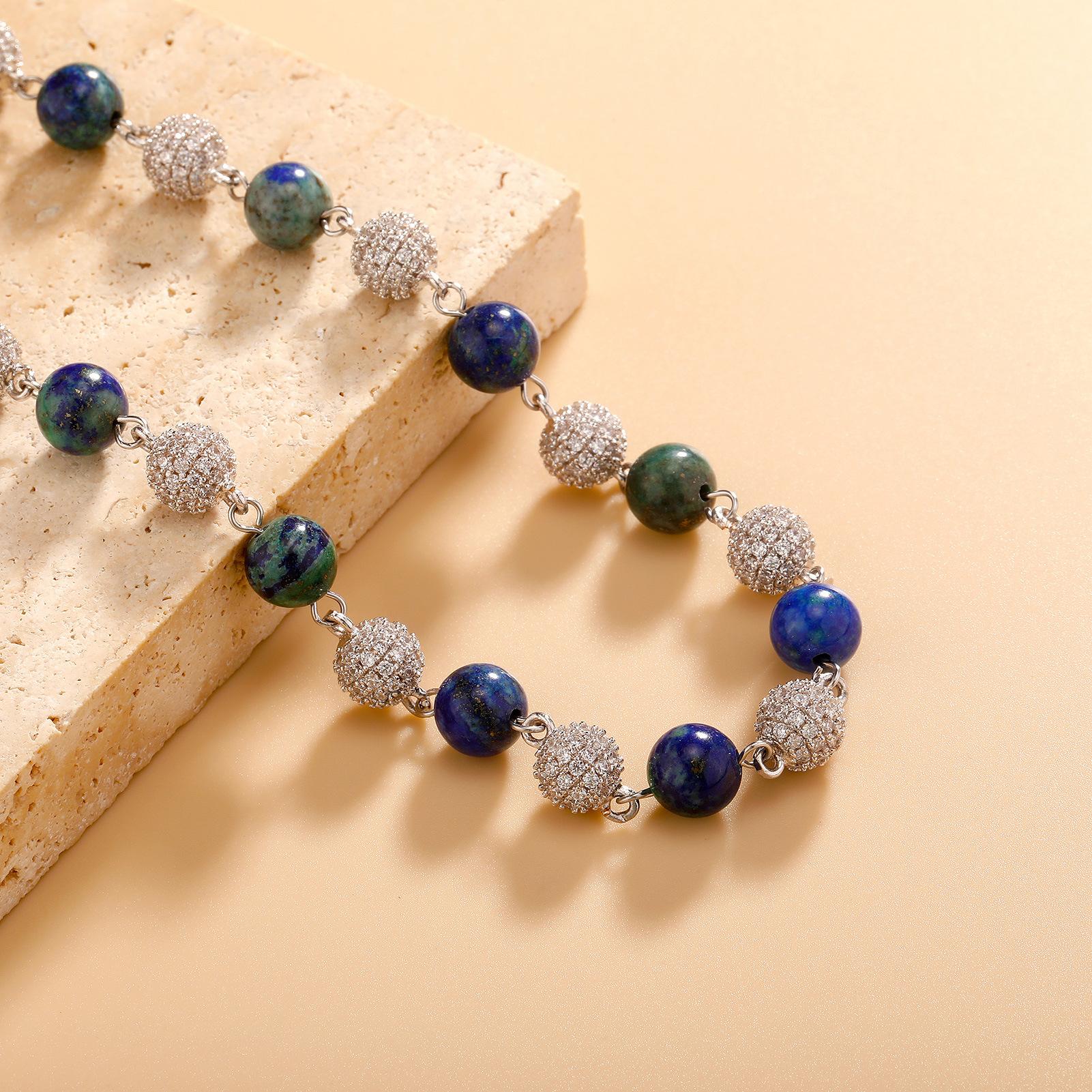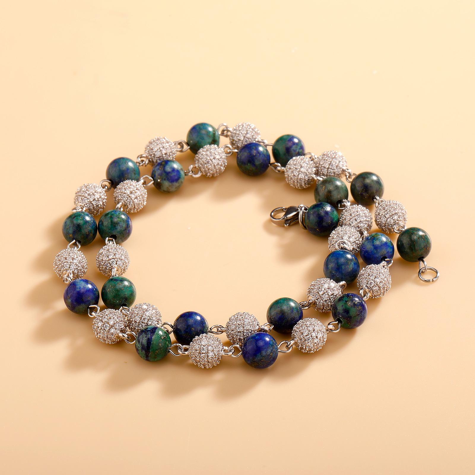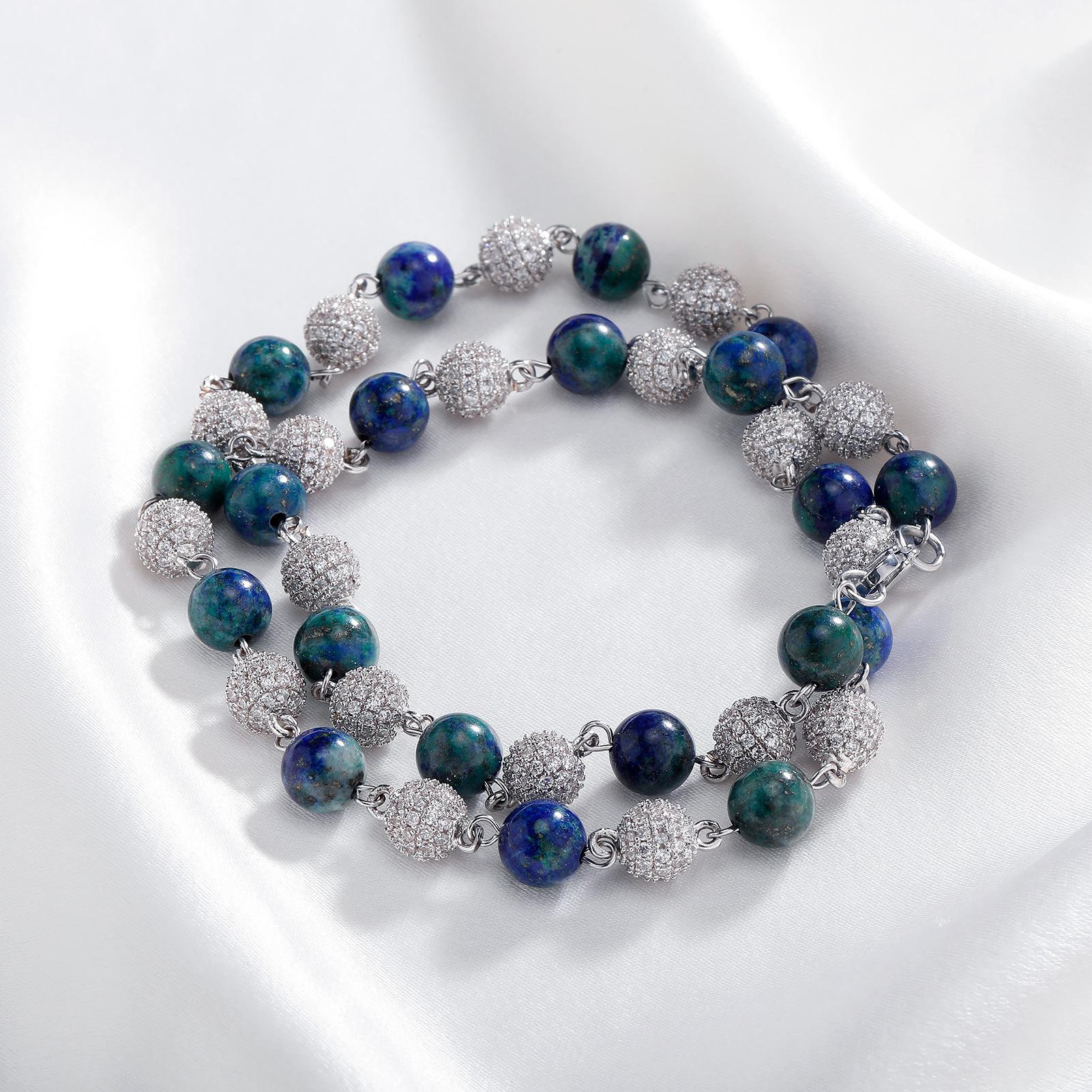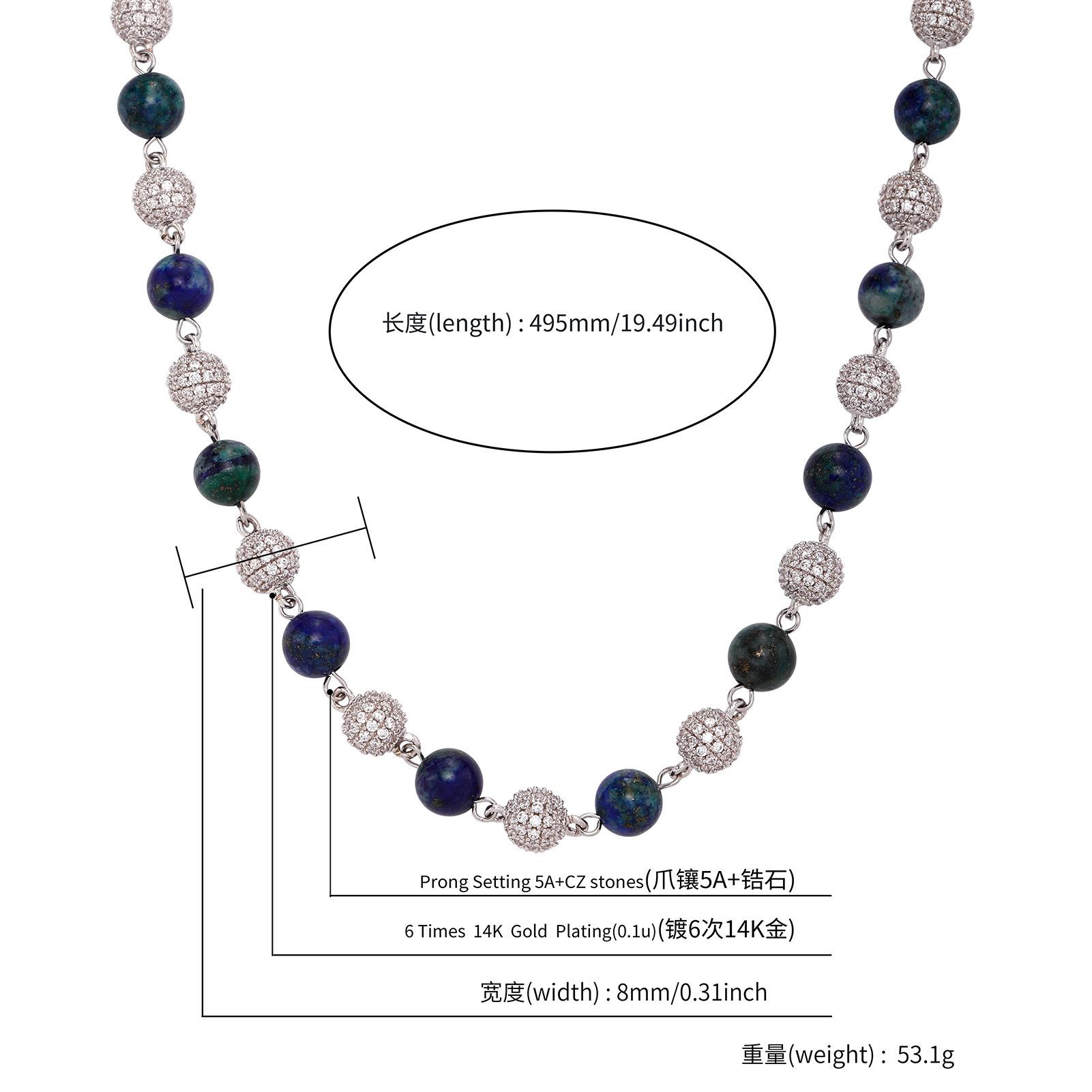 Collar Europeo y Americano Joyería Transfronteriza 6-8mm Juego Completo Flash Zircón Cadena Clavicular Hip Hop Para Hombre y Mujer Oro Verde Collar de Piedra Natural