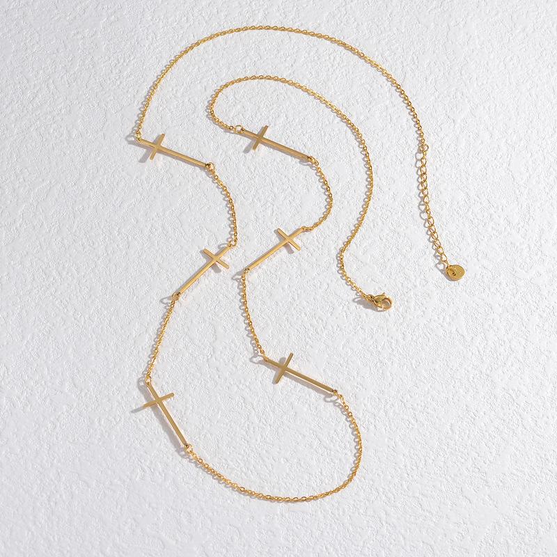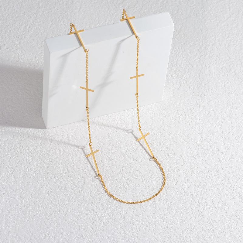 Comercio exterior nueva moda europea y americana collar cruz simple mujeres ins oro 18k acero inoxidable Joker cadena suéter al por mayor