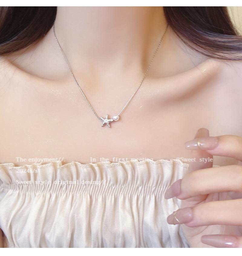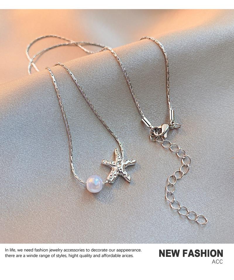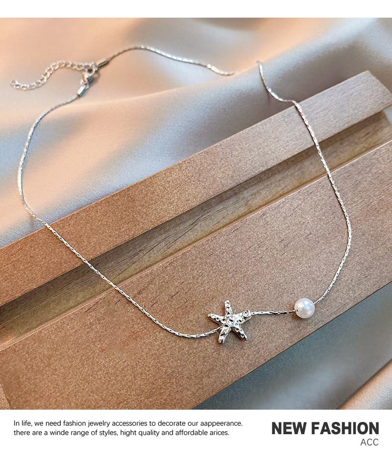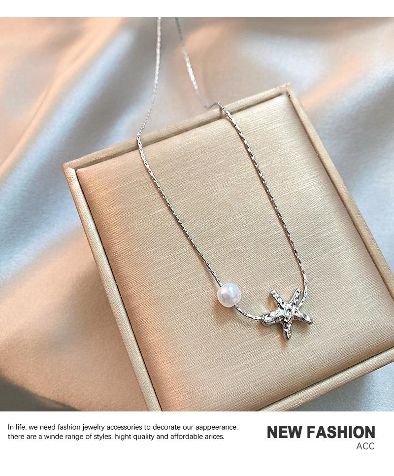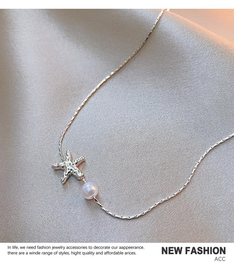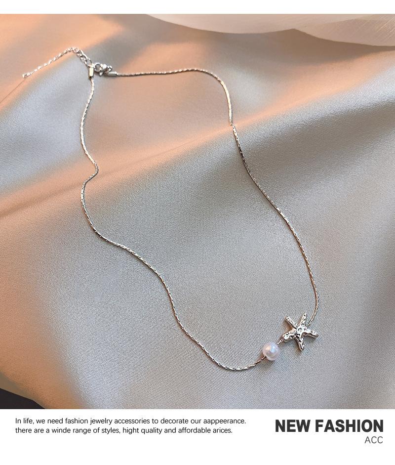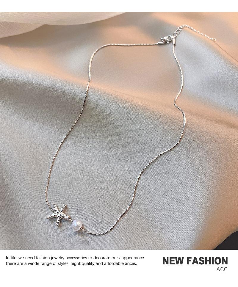 Elegante collar de perlas de estrella de mar metálicas de Niche para mujer, ligero, de lujo, combinable con todo, cadena de clavícula de moda, accesorios de collar sencillos y elegantes.