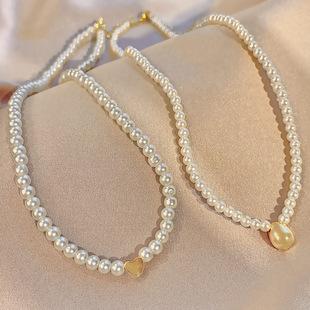 Collar francés retro de perlas de imitación, diseño de moda, cadena para la clavícula, pequeño, fresco, simple, círculo liso, collar de amor, joyería