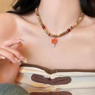 Nuevo collar de cuentas de concha de coco y perlas de flor de rosa retro chino para mujer, nicho, lujo ligero, alta gama, estilo antiguo, cadena para clavícula