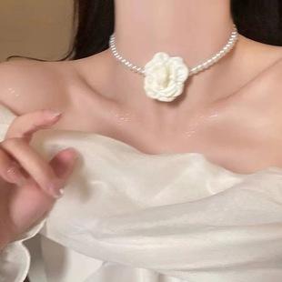 Elegante collar de camelia tridimensional francés femenino ins hecho a mano flor de tela puro sexy collar cadena clavícula lote