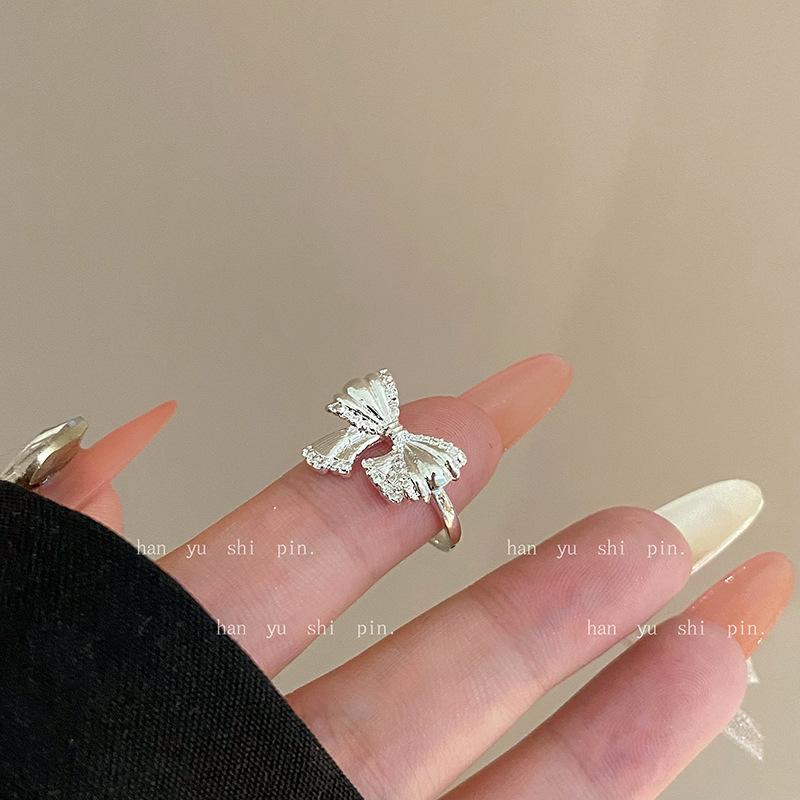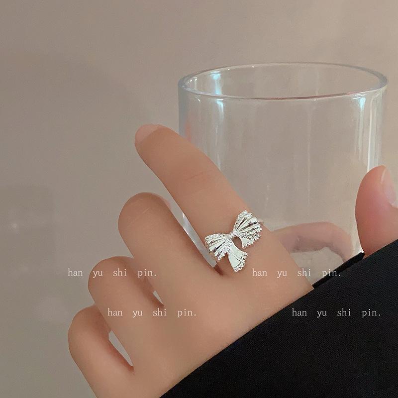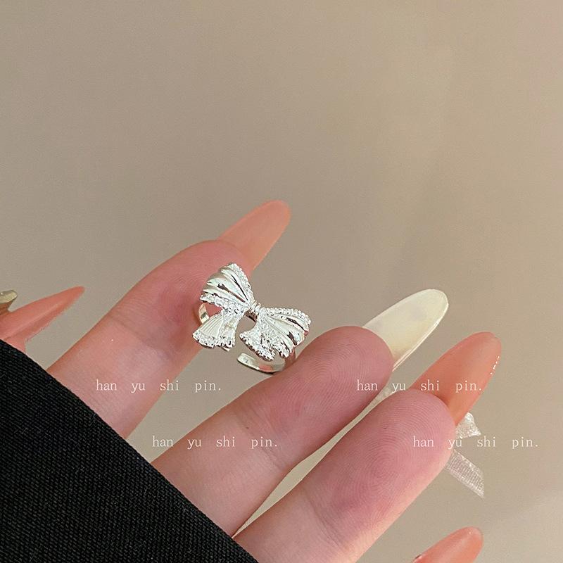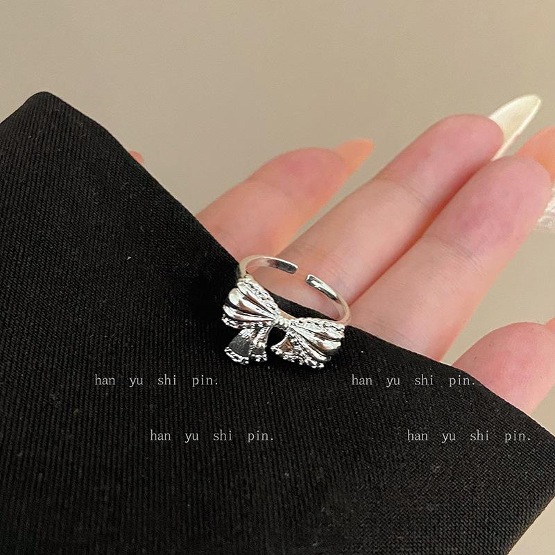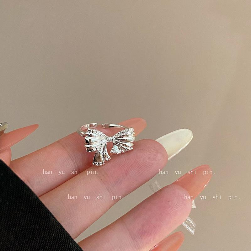 Anillo abierto con lazo de plata simple de estilo coreano, nuevo estilo, diseño de nicho de moda, anillo de dedo de princesa de escape dulce