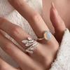 | Anillo de dedo índice retro apilable con nicho abierto, anillo de flor de rosa blanca, diseño de nicho femenino, anillo de alta gama |